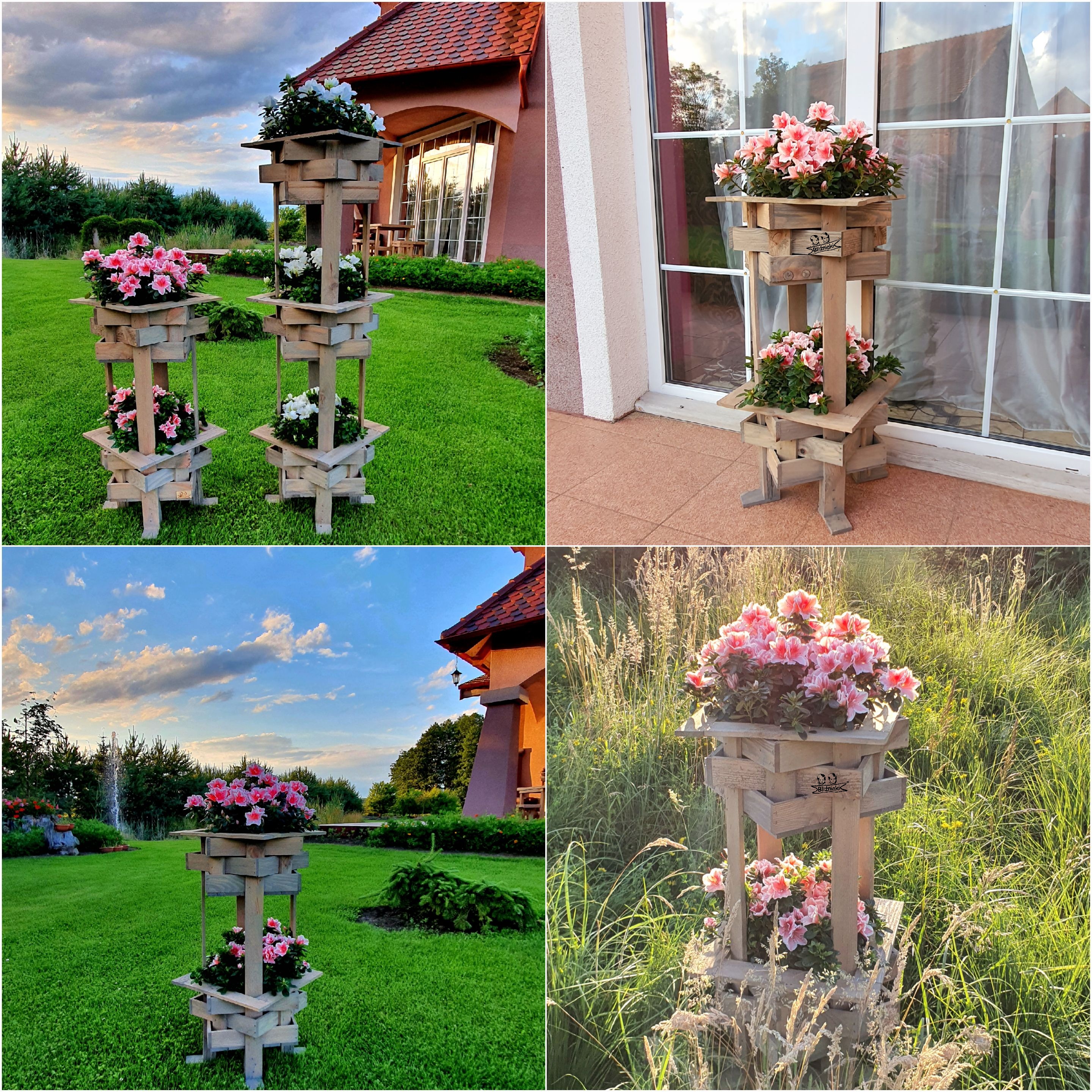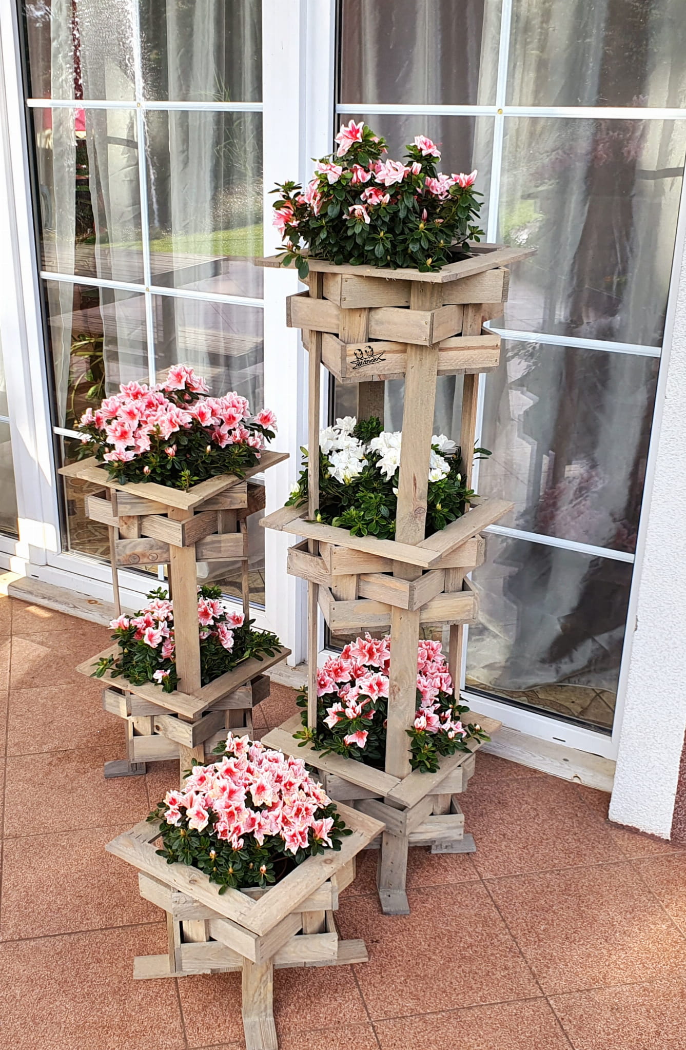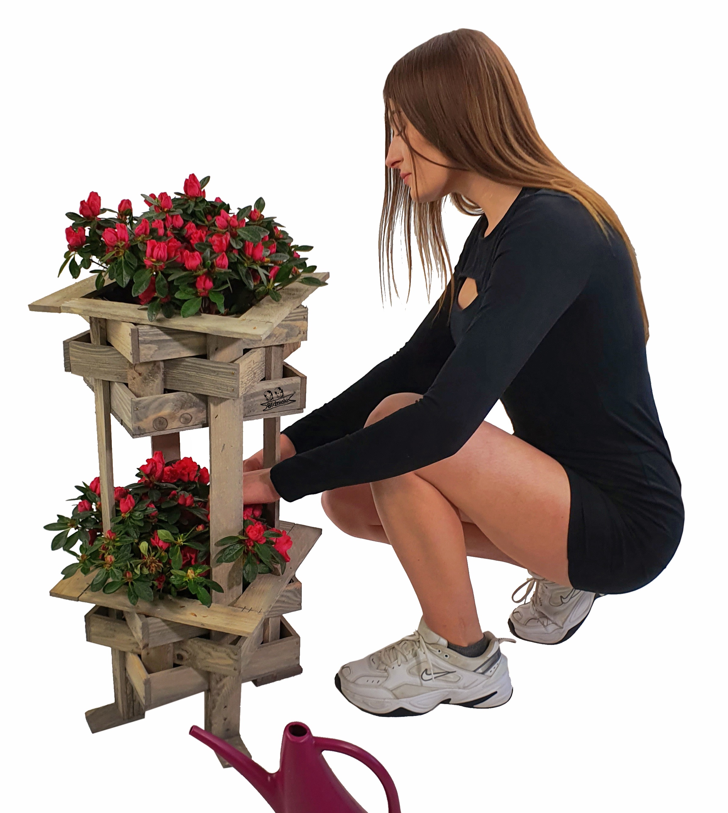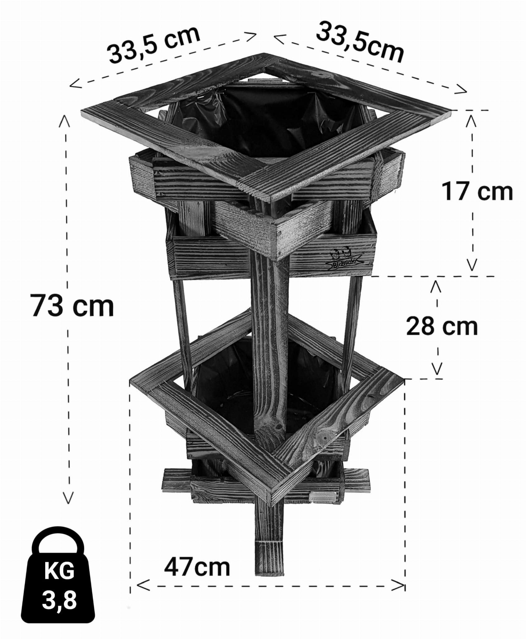 Kwietniki piętrowe DKW47 SN, kwietniki wykonane całkowicie z drewna sosnowego wysuszonego.