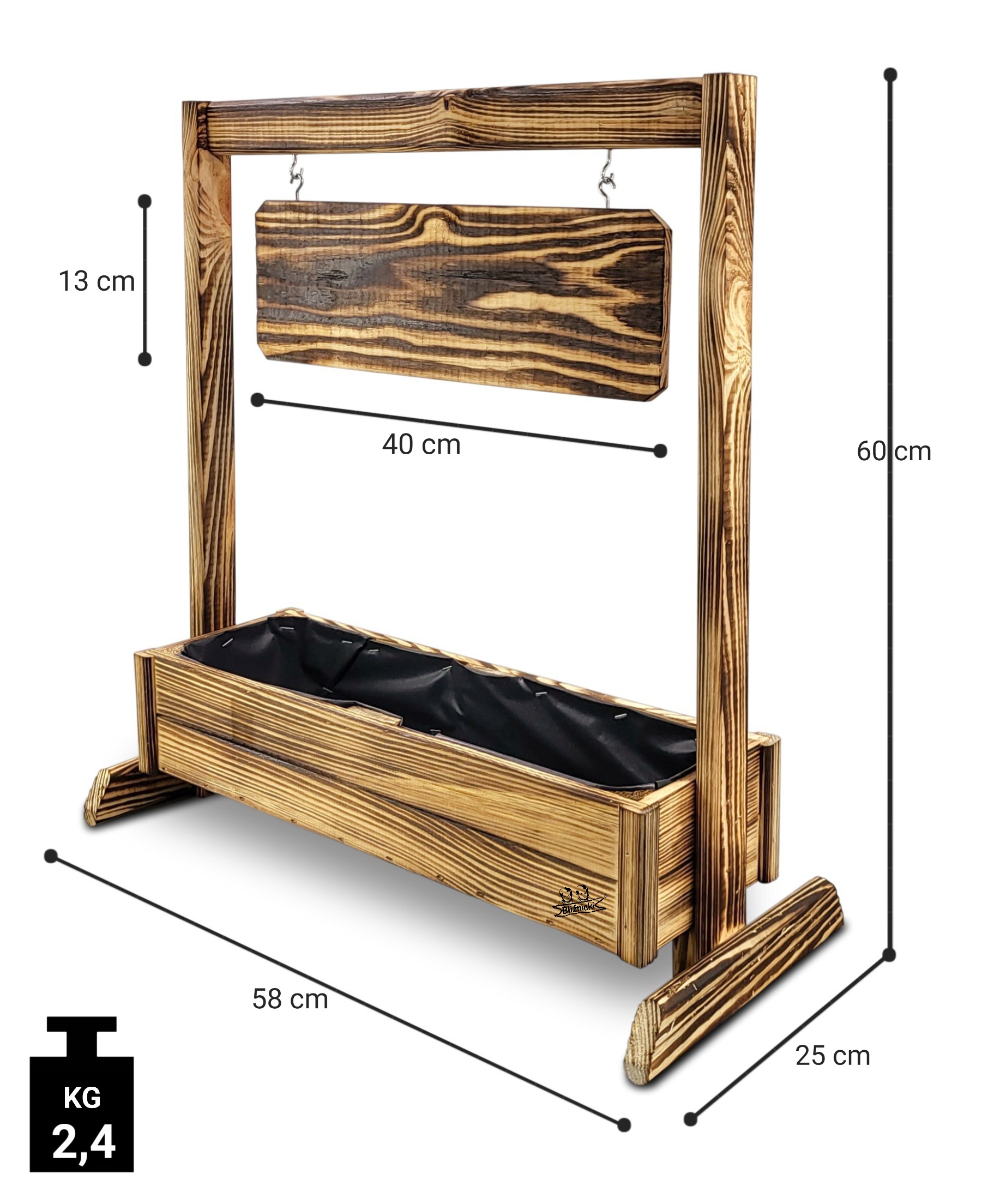 Kwietnik z tabliczką z napisami do wyboru drewniany impregnowany ogniem TEXAS2 OPAL
