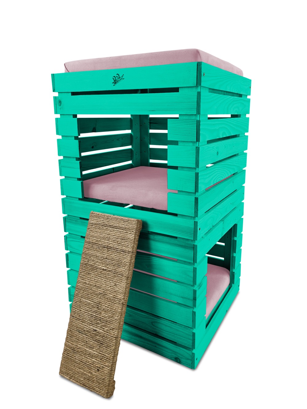 - Budka w kolorze ZIELENI MORSKIEJ, posłanie w kolorze LILIOWYM