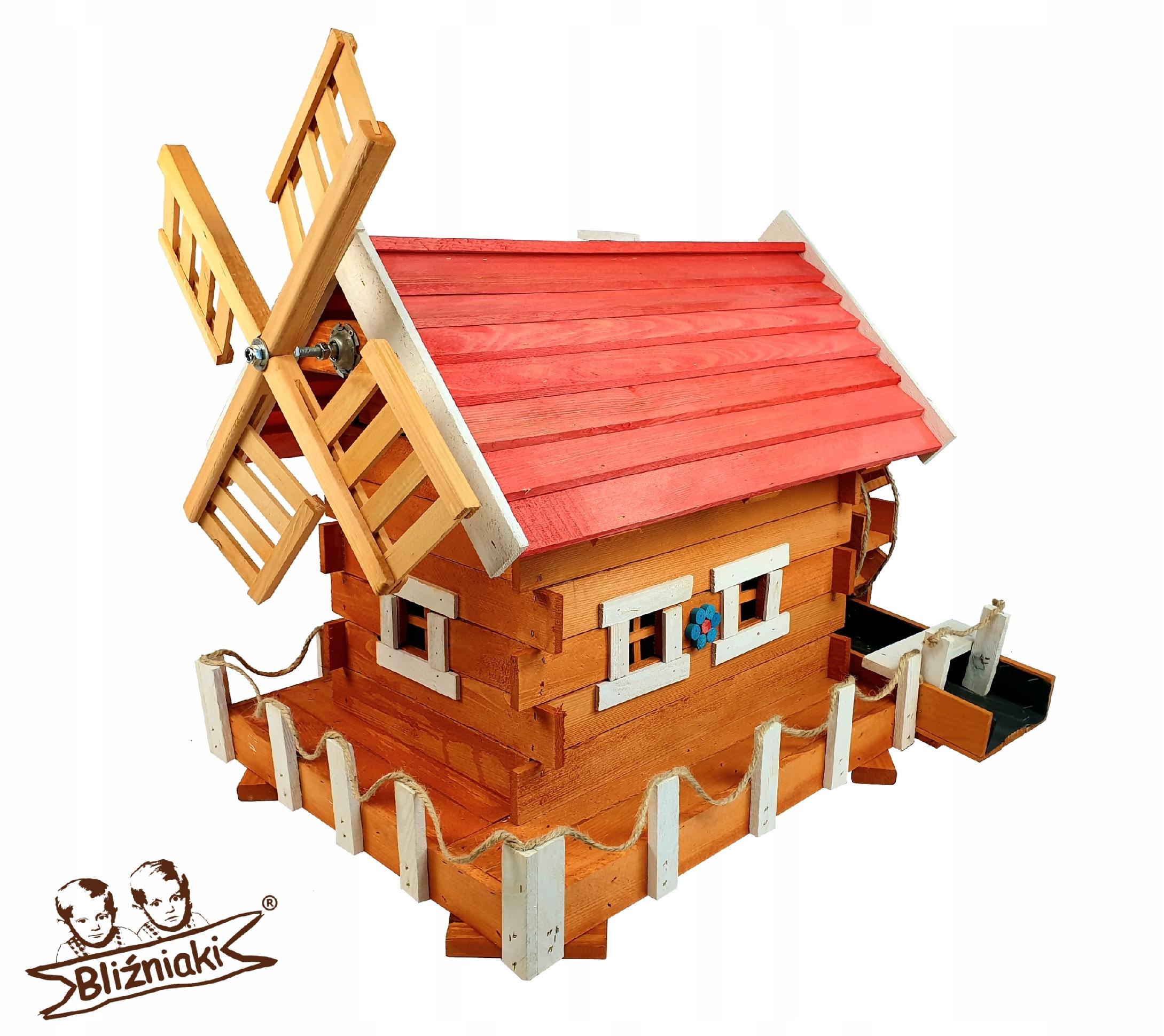 Młyn wodny drewniany z basenem i kołem młyńskim Intensywne kolory Wielka ozdoba do ogrodu skalnego Efektowny domek z obrotowym śmigłem MWKS3 B BI CB