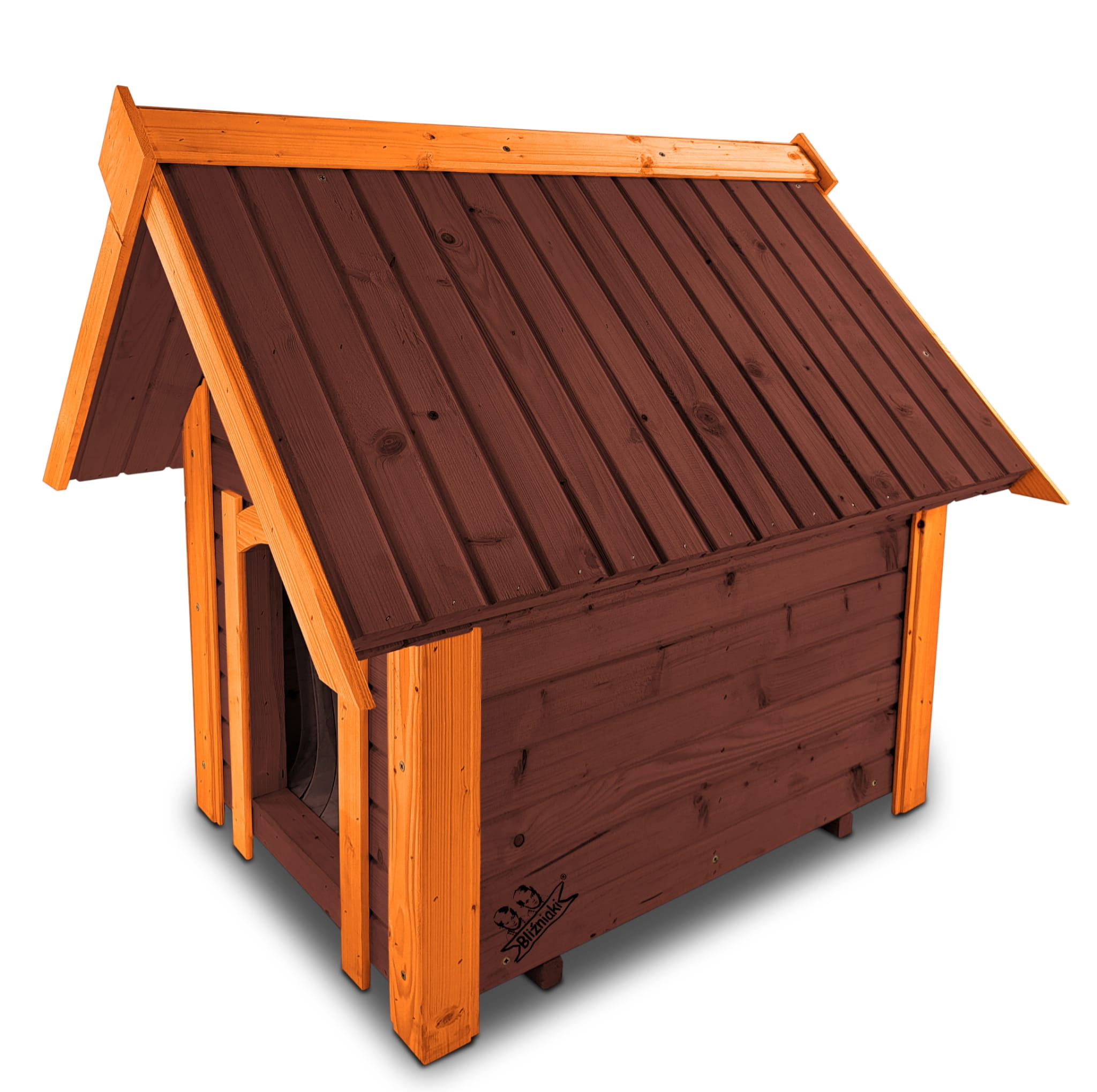 Poddane impregnacji drewno sprawia, że oferowana przez nas BUDA DLA PSA jest odporna na szkodliwe działanie wody oraz wilgoci, promieni UV, a także grzybów i pleśni a przy tym ma piękne dwa kolory drewna - olchowy oraz ciemny orzechowy.