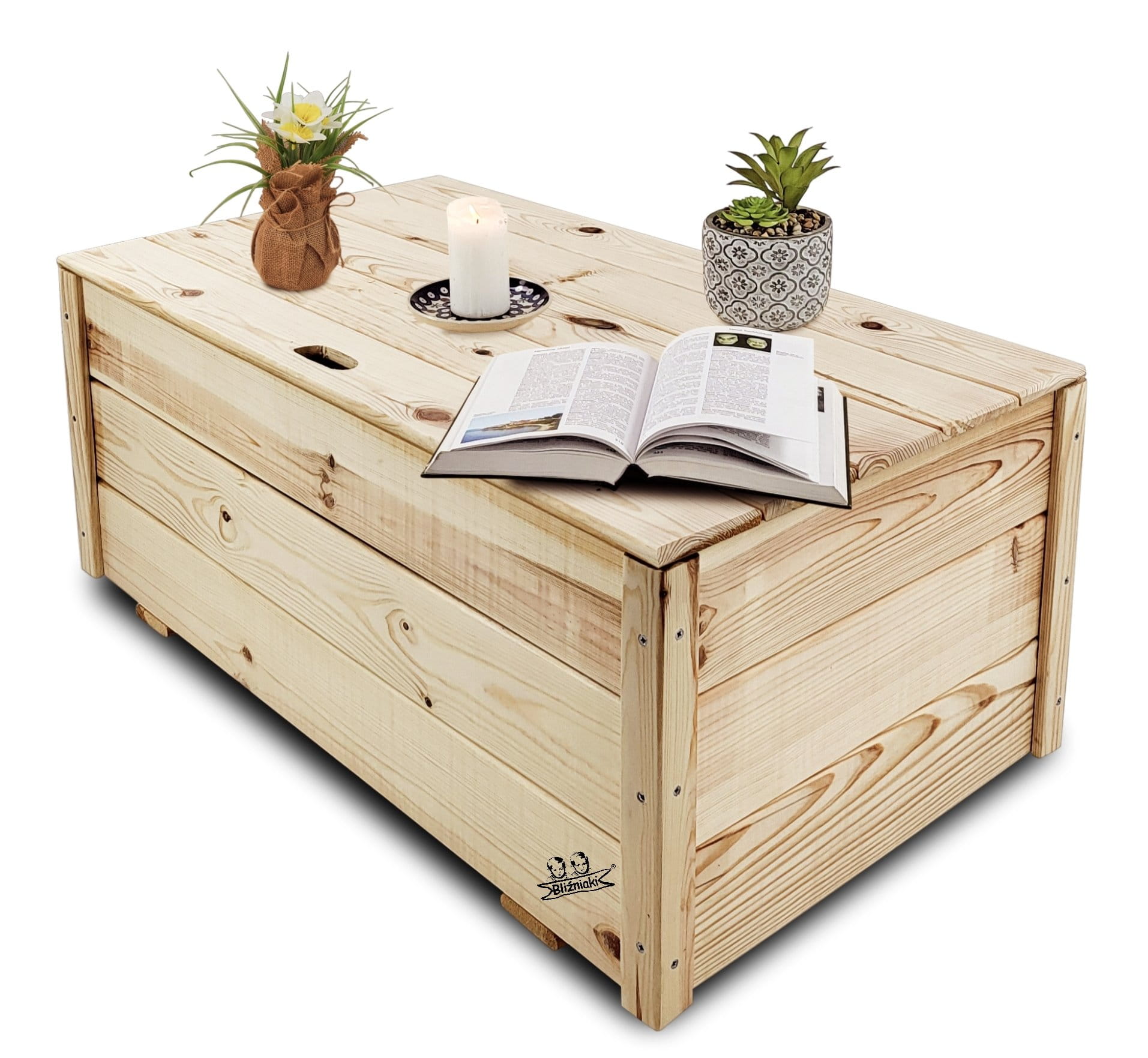Największa Skrzynia Sosnowa Drewniana Komoda ze schowkiem Pojemnik Zamykany Stolik kawowy Mebel Ława Naturalna Kufer Mebel HADE2 N