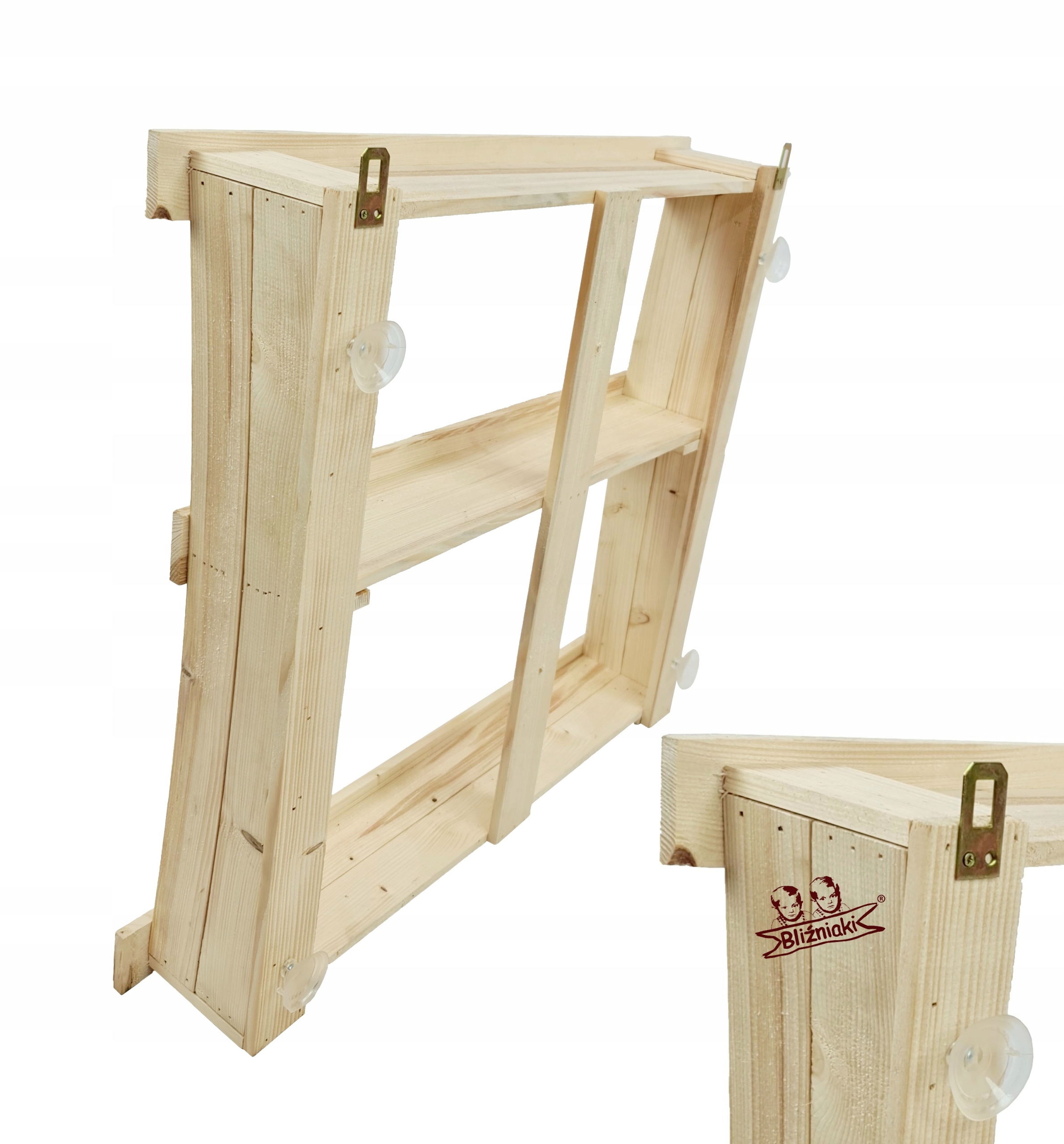 - Poziome półki są wzmocnione o dodatkowe listewki, dzięki czemu położenie na nich stabilizuje przedmioty i nie spowoduje tego, że coś upadnie.