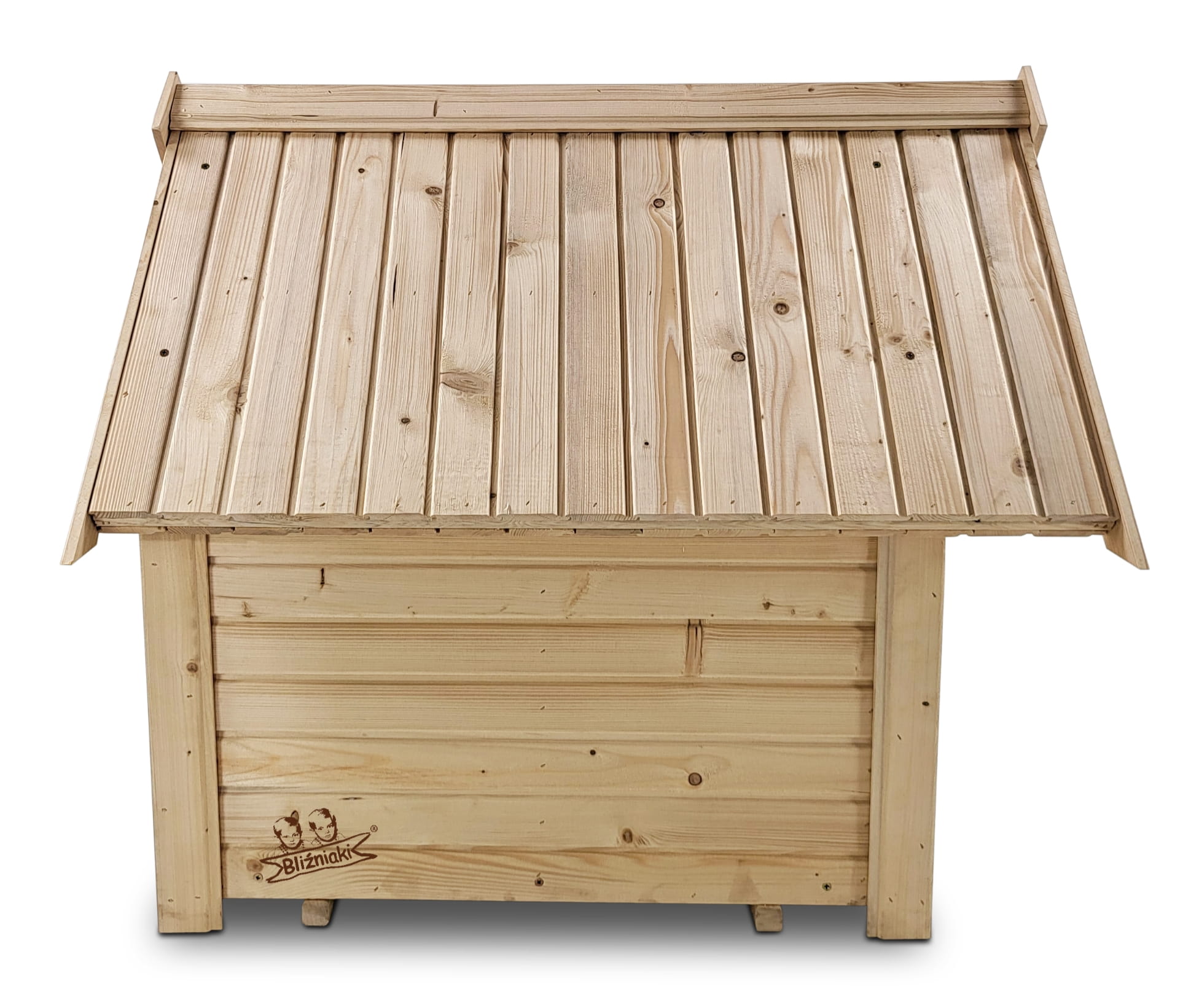 - wykonana z litej deski, brak jakichkolwiek płyt pilśniowych lub sklejek, zarówno z zewnątrz jak i od wewnątrz buda jest wykonana z litego drewna