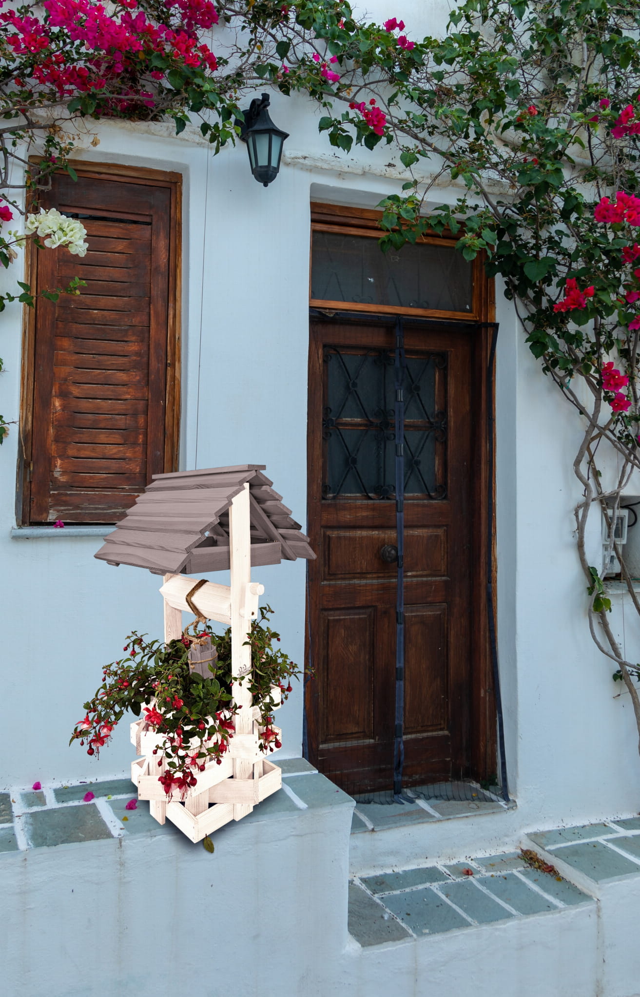 Nasza stylowa studnia wraz z donicą stanowi idealną bazę do stworzenia wyjątkowych kompozycji kwiatowych.