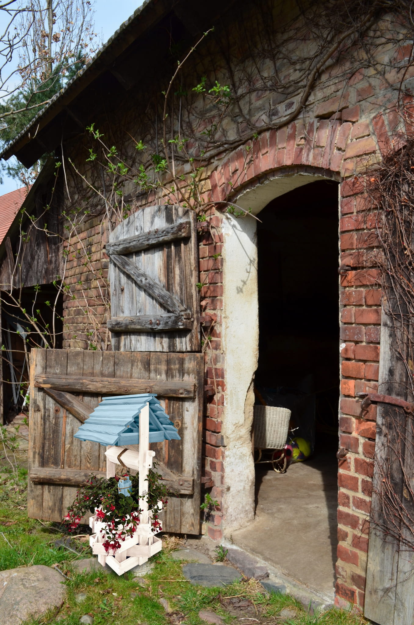 Nasza stylowa studnia wraz z donicą stanowi idealną bazę do stworzenia wyjątkowych kompozycji kwiatowych.