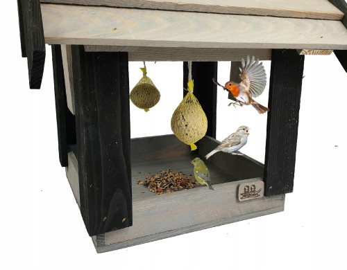 Ozdobny Karmnik dla Ptaków DREWNIANA Budka Domek (K200 SN CZ)
