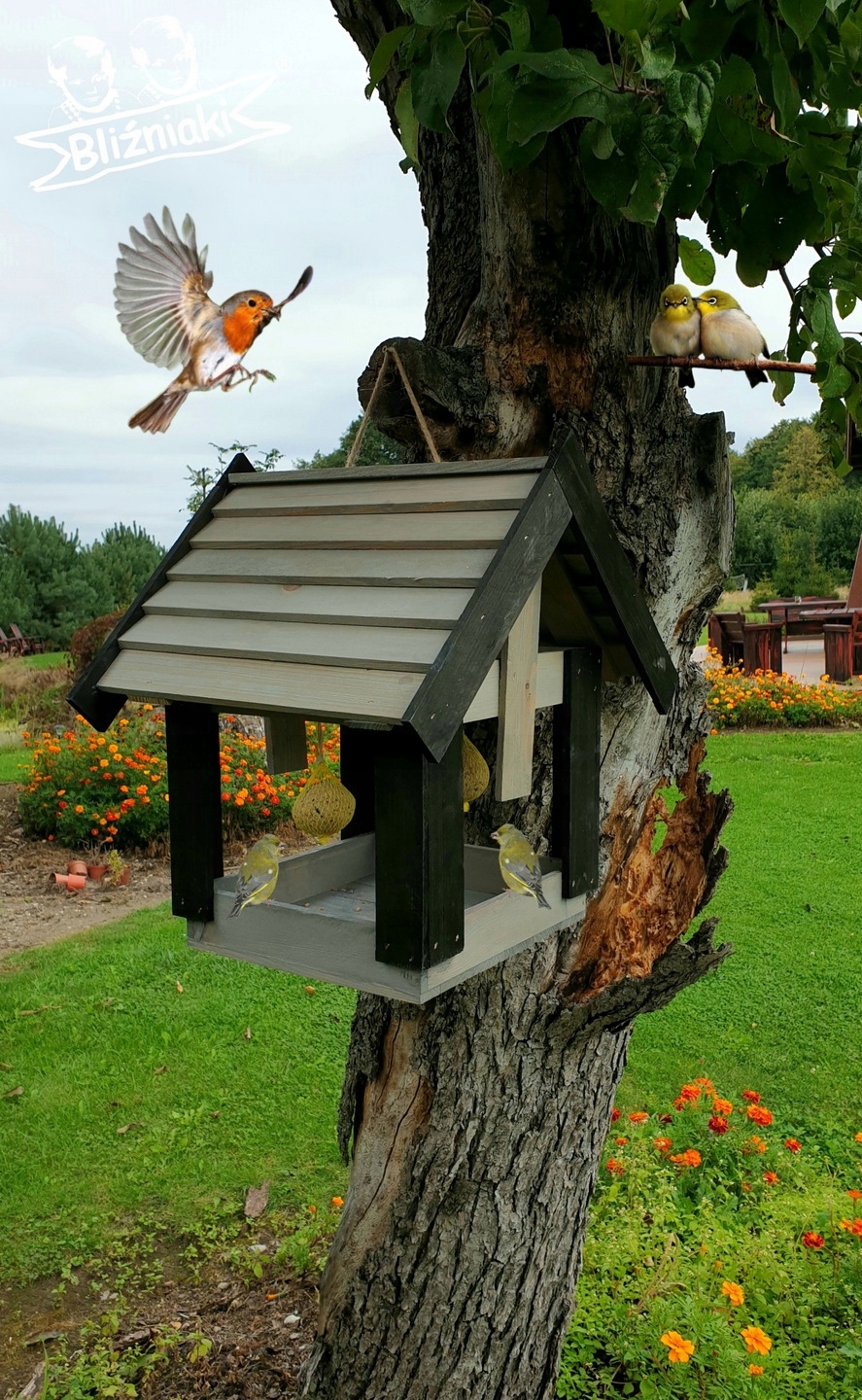 Przedmiotem sprzedaży jest ozdobny drewniany Karmnik dla ptaków model K200 SN CZ.