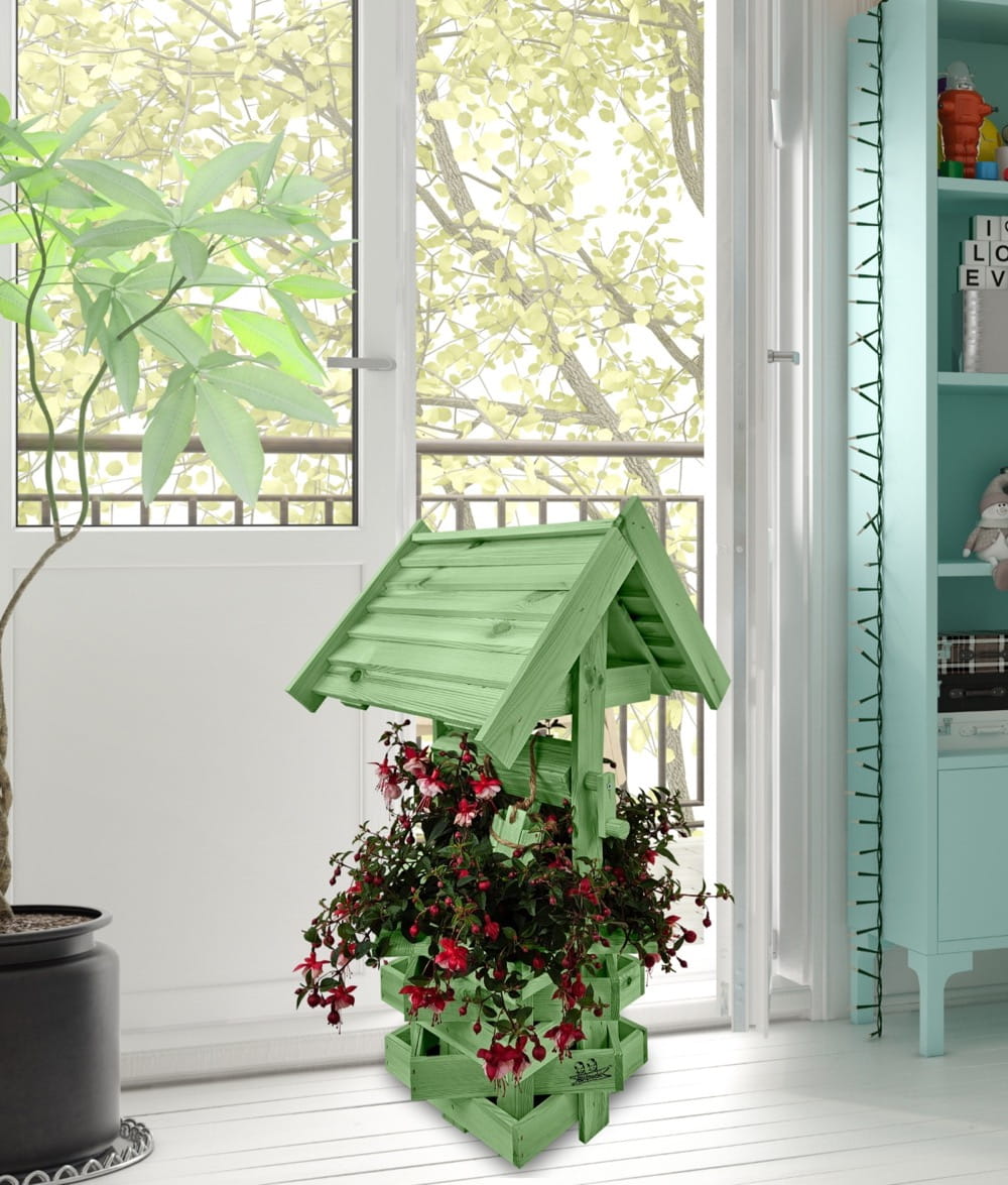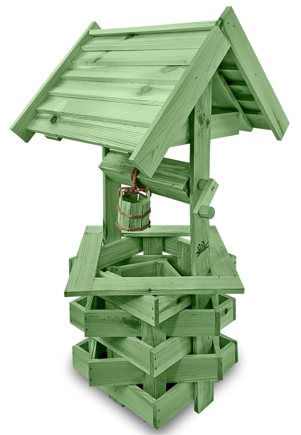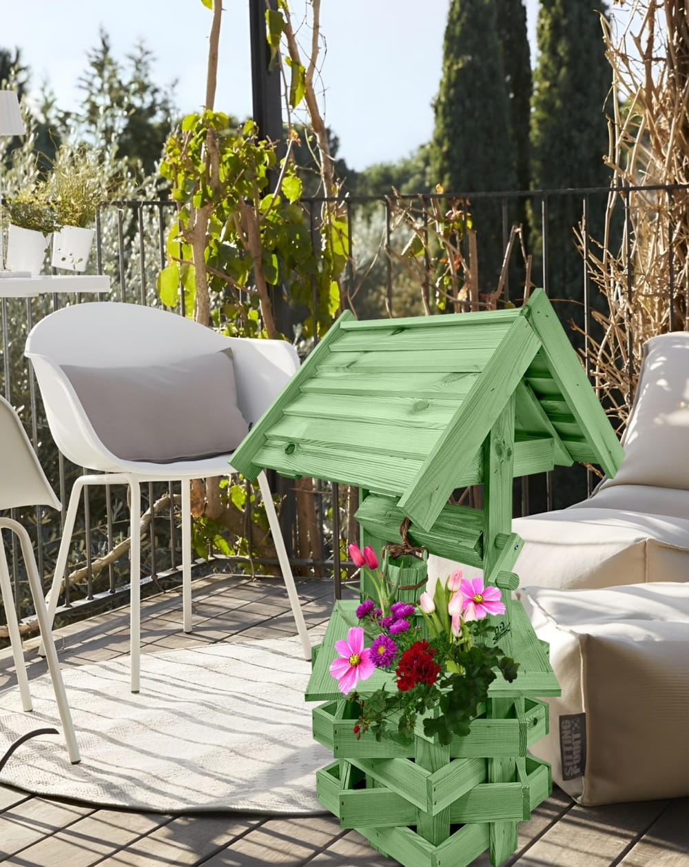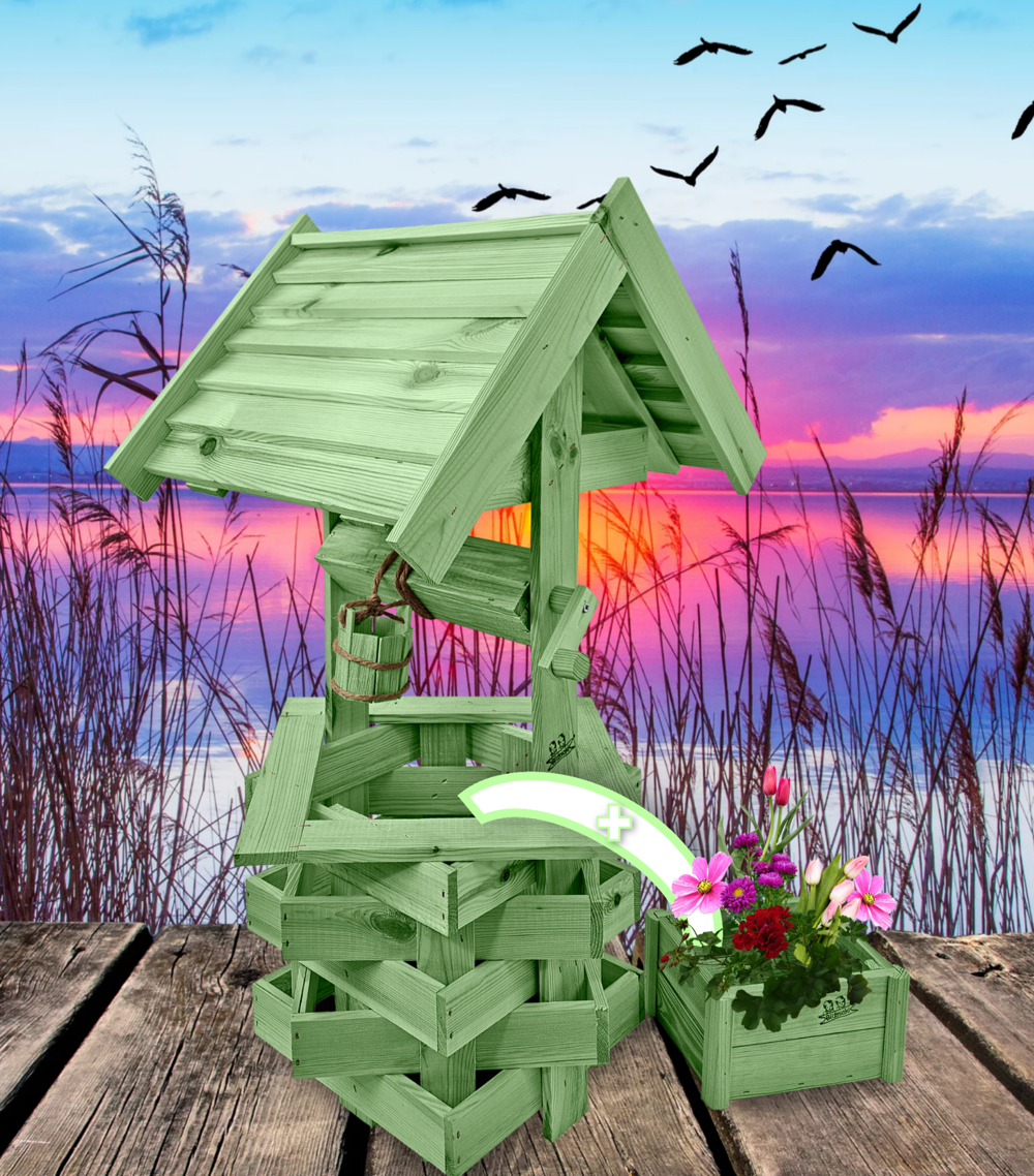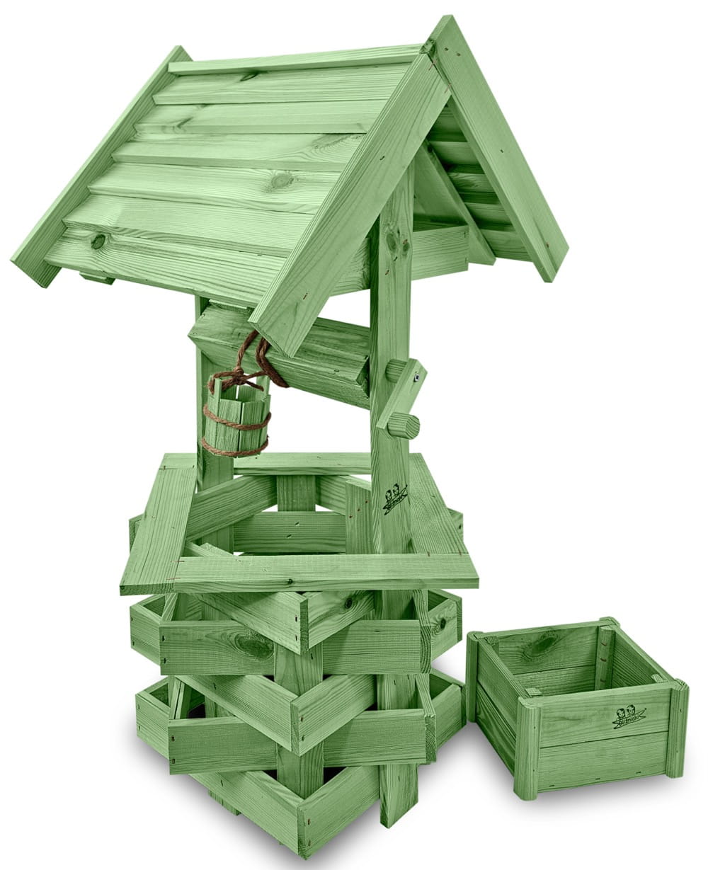 Nasza dekoracyjna studnia w kolorze jasnozielonym wykonana z suszonego drewna sosnowego to nie tylko piękny element dekoracyjny, ale również wyraz ekologicznego podejścia do projektowania ogrodów.