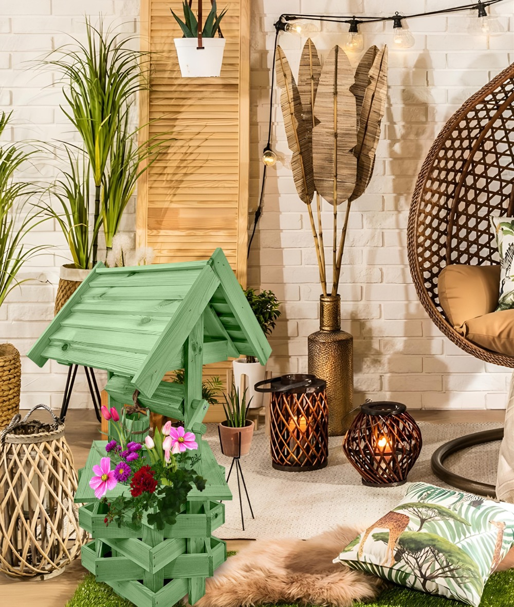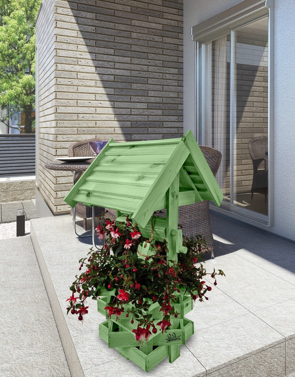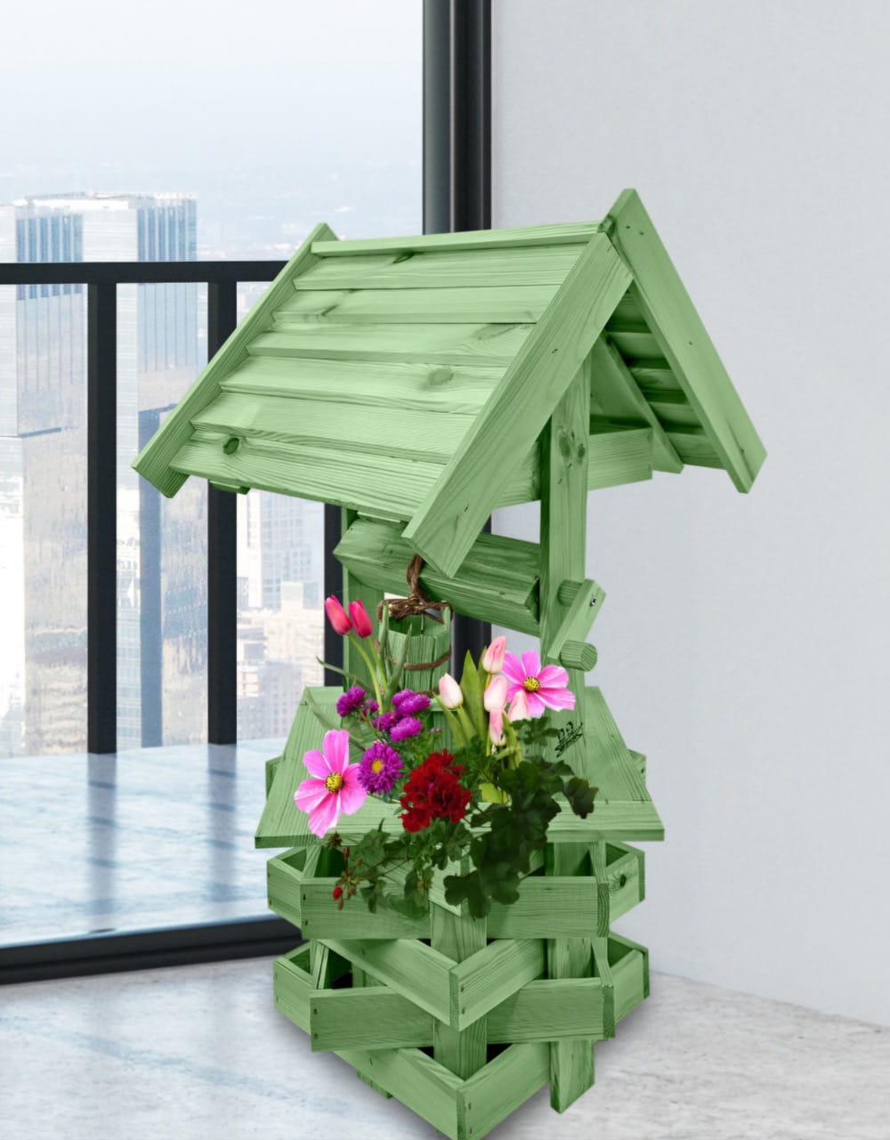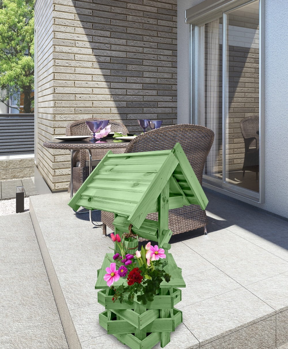 Nasza dekoracyjna studnia w kolorze jasnozielonym wykonana z suszonego drewna sosnowego to nie tylko piękny element dekoracyjny, ale również wyraz ekologicznego podejścia do projektowania ogrodów.