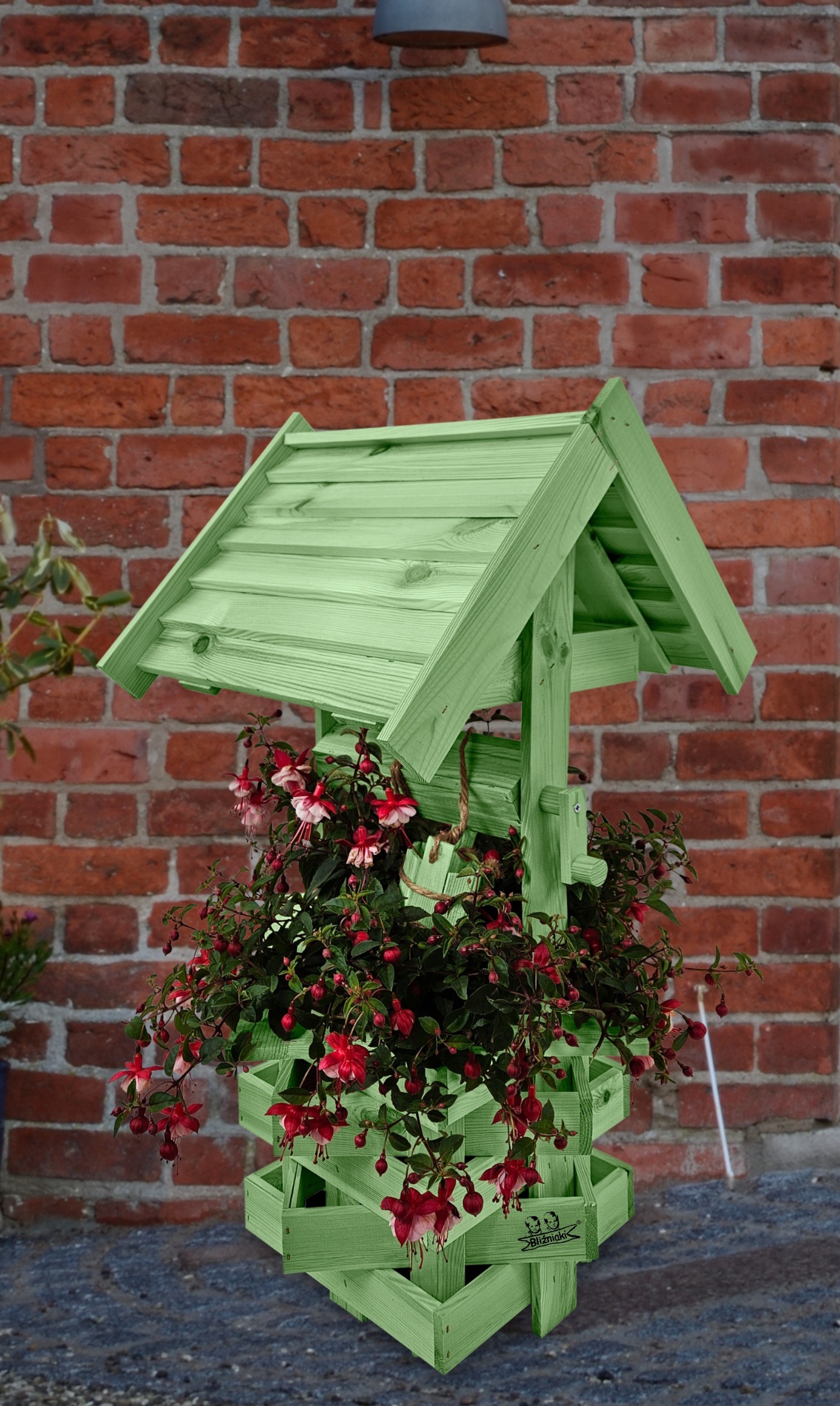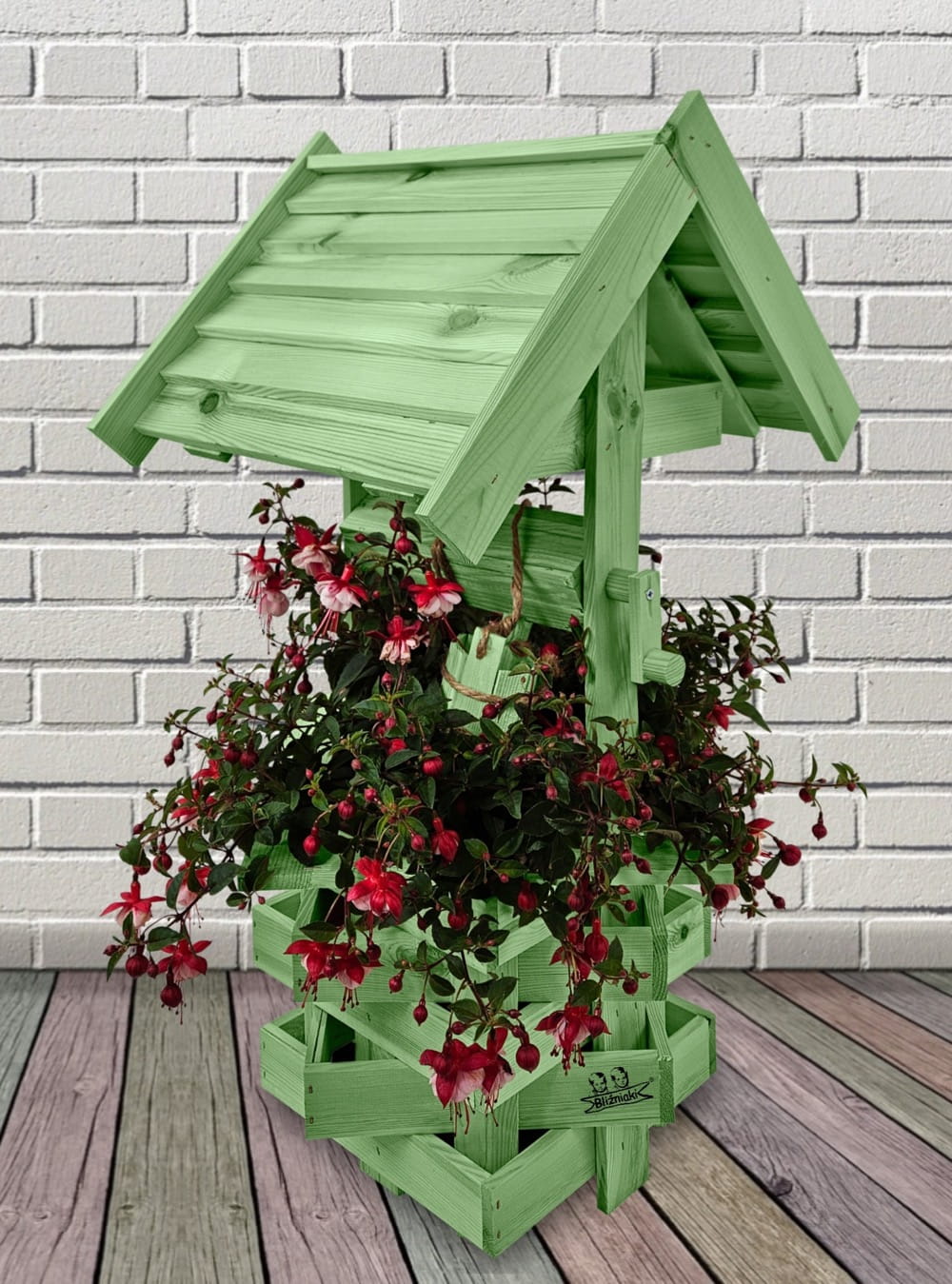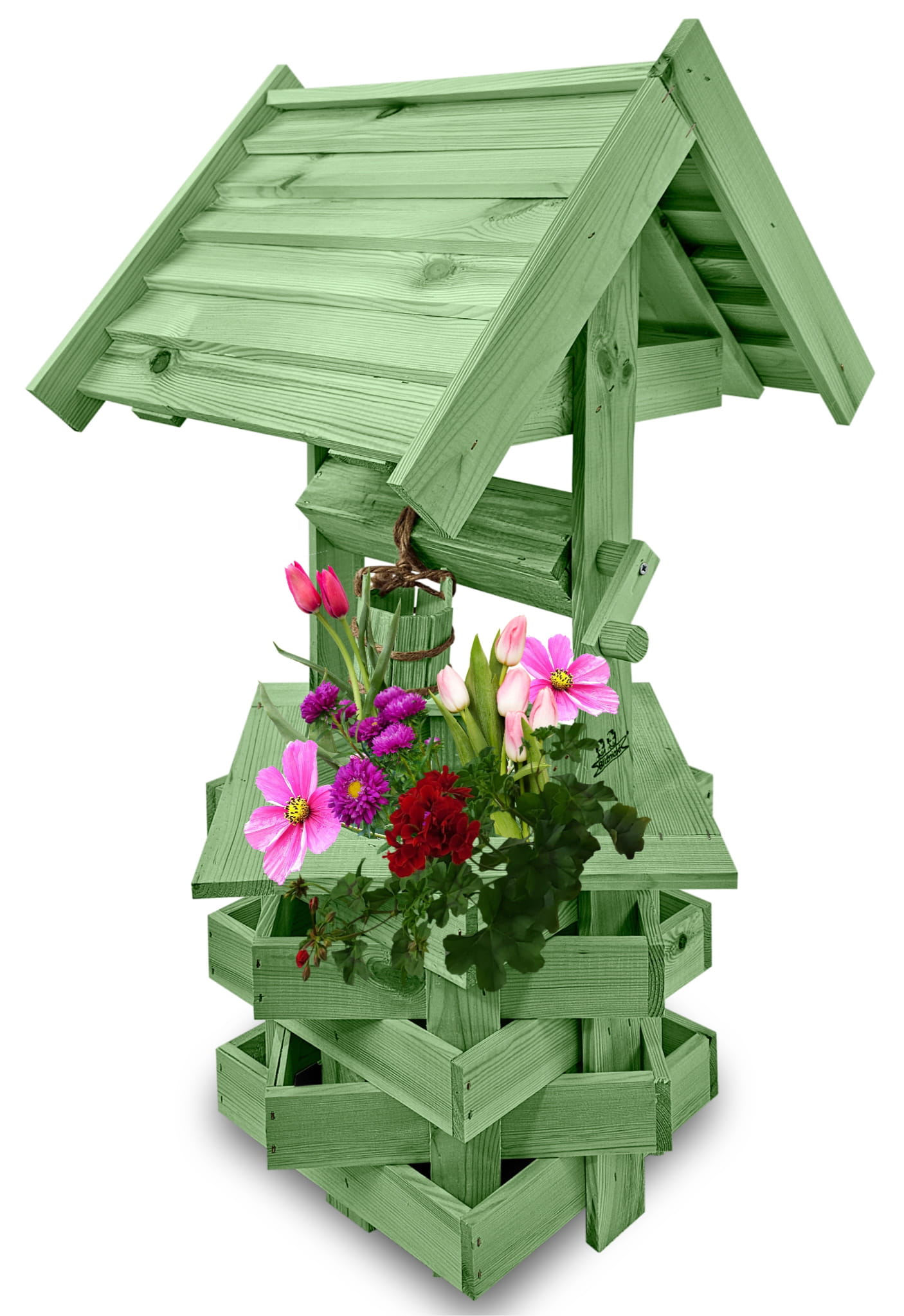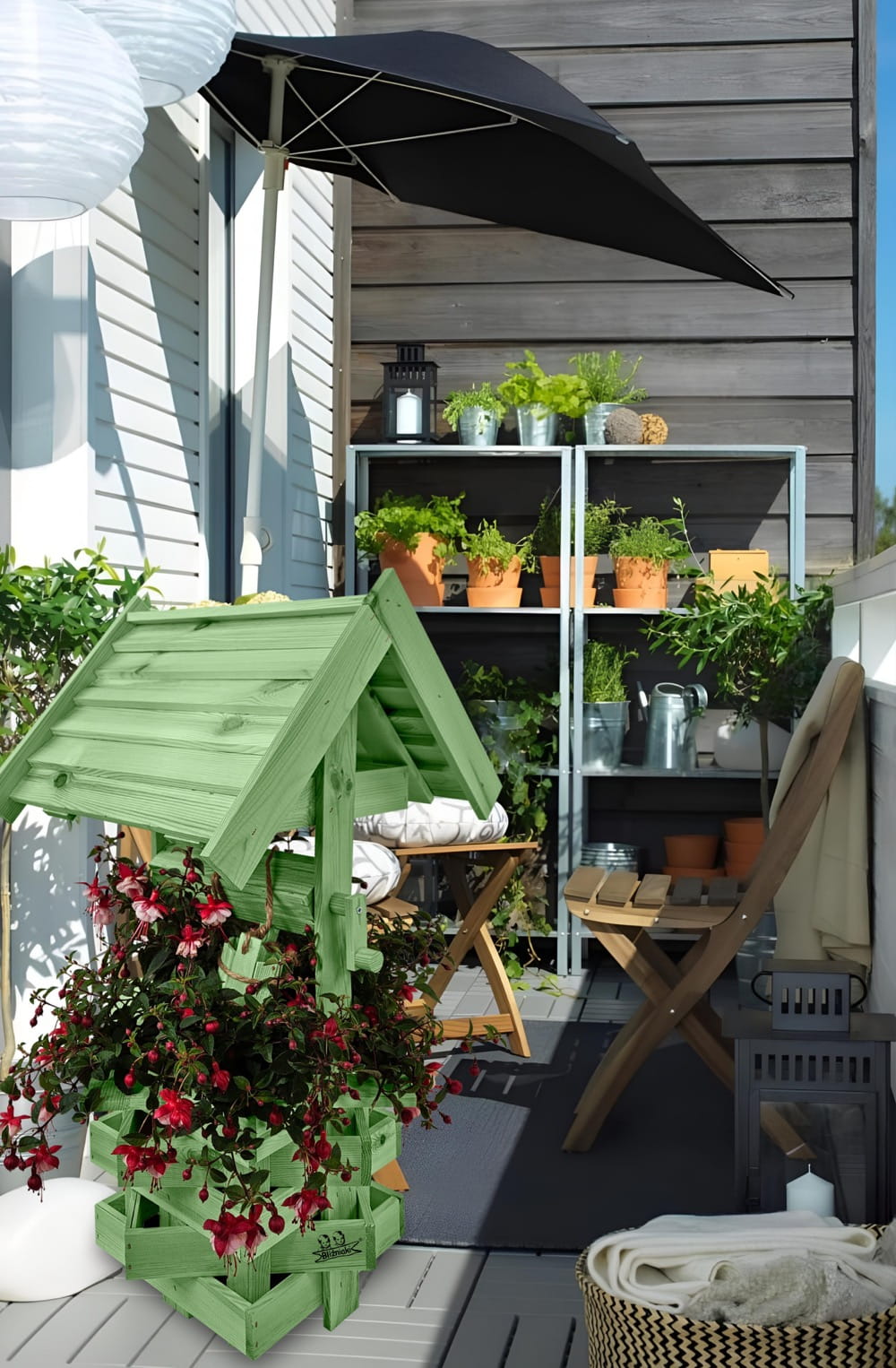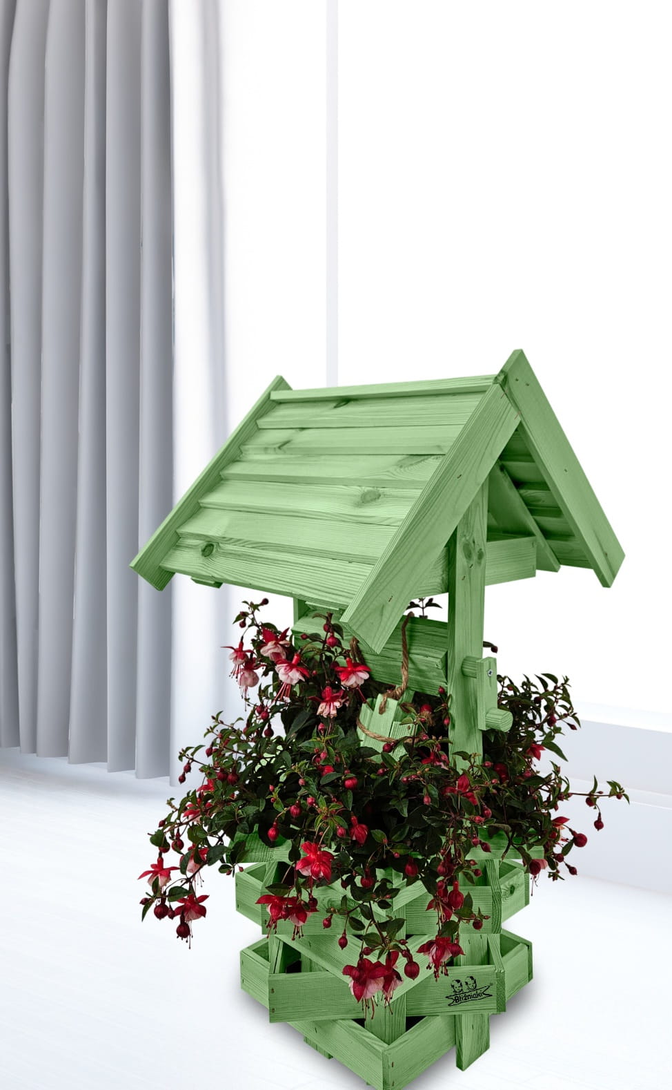 Nasza dekoracyjna studnia w kolorze jasnozielonym wykonana z suszonego drewna sosnowego to nie tylko piękny element dekoracyjny, ale również wyraz ekologicznego podejścia do projektowania ogrodów.