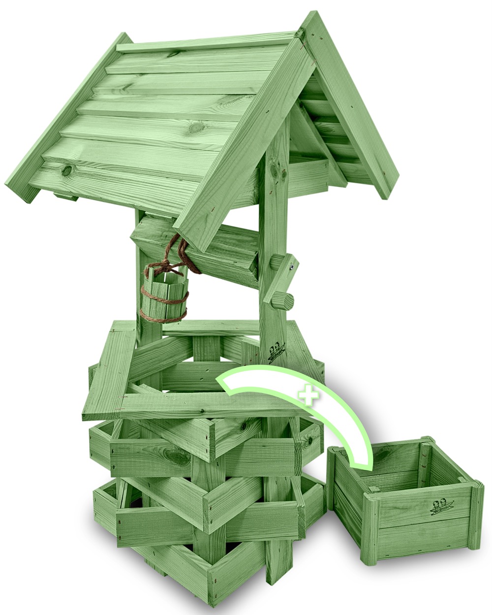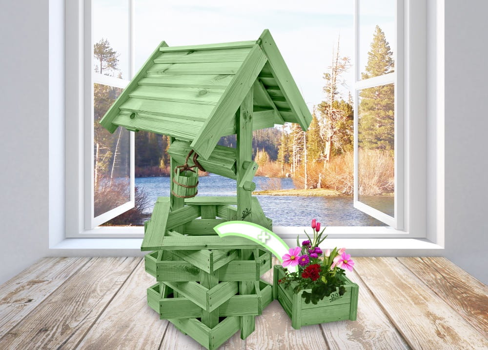- Studnia została wzbogacona o drewnianą donicę, w której można dodatkowo stworzyć miniogródek