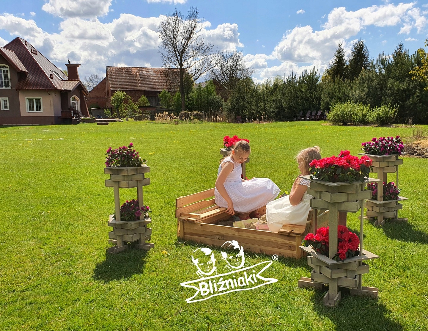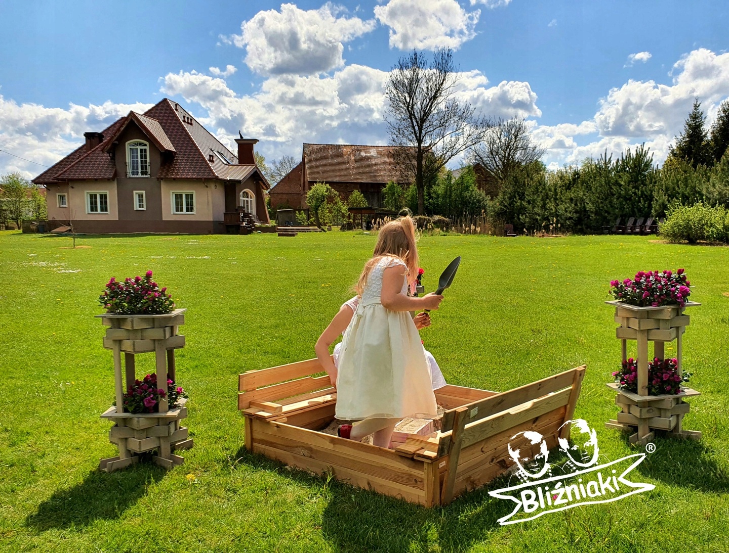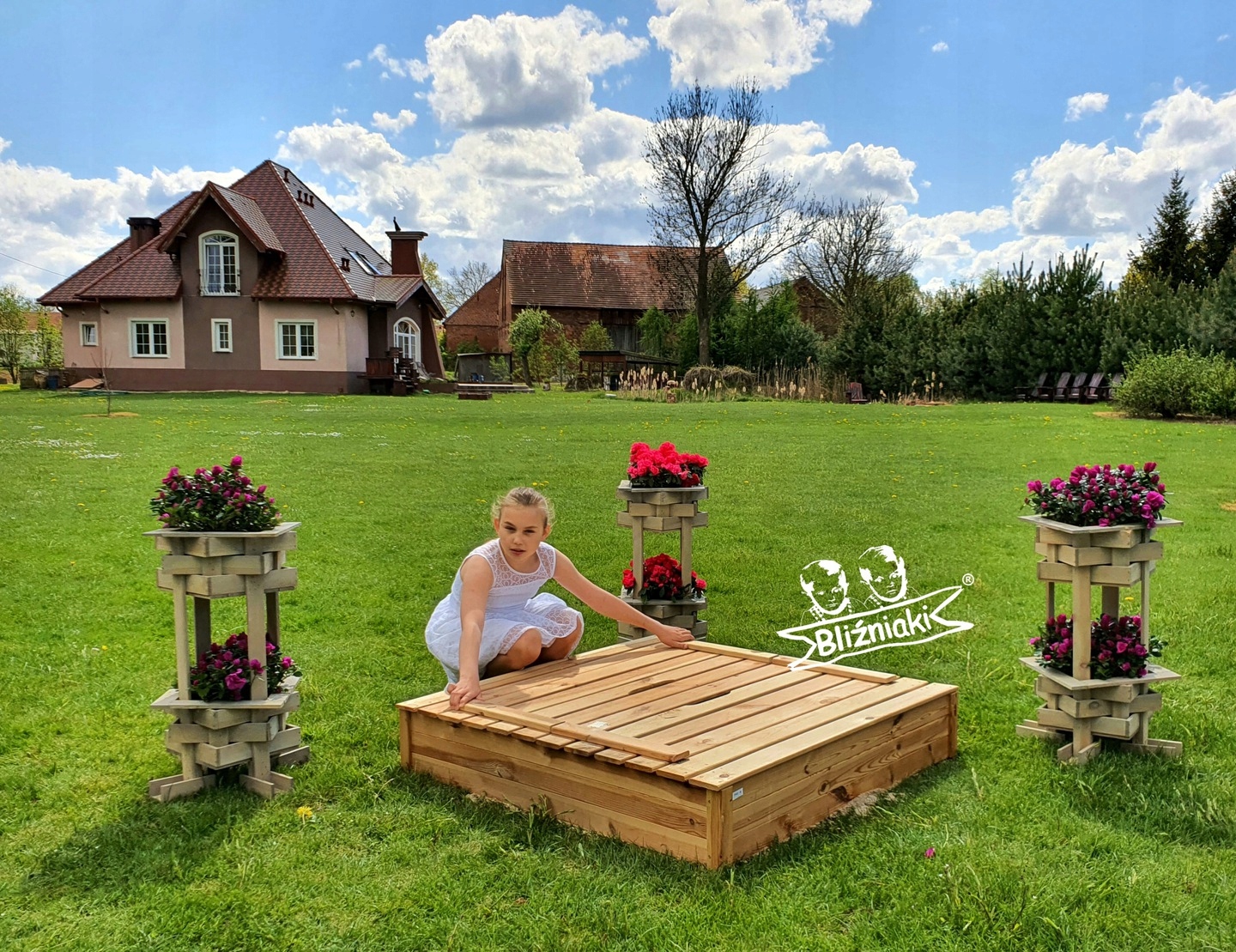 - Piaskownica została wykonana w całości z drewna sosnowego