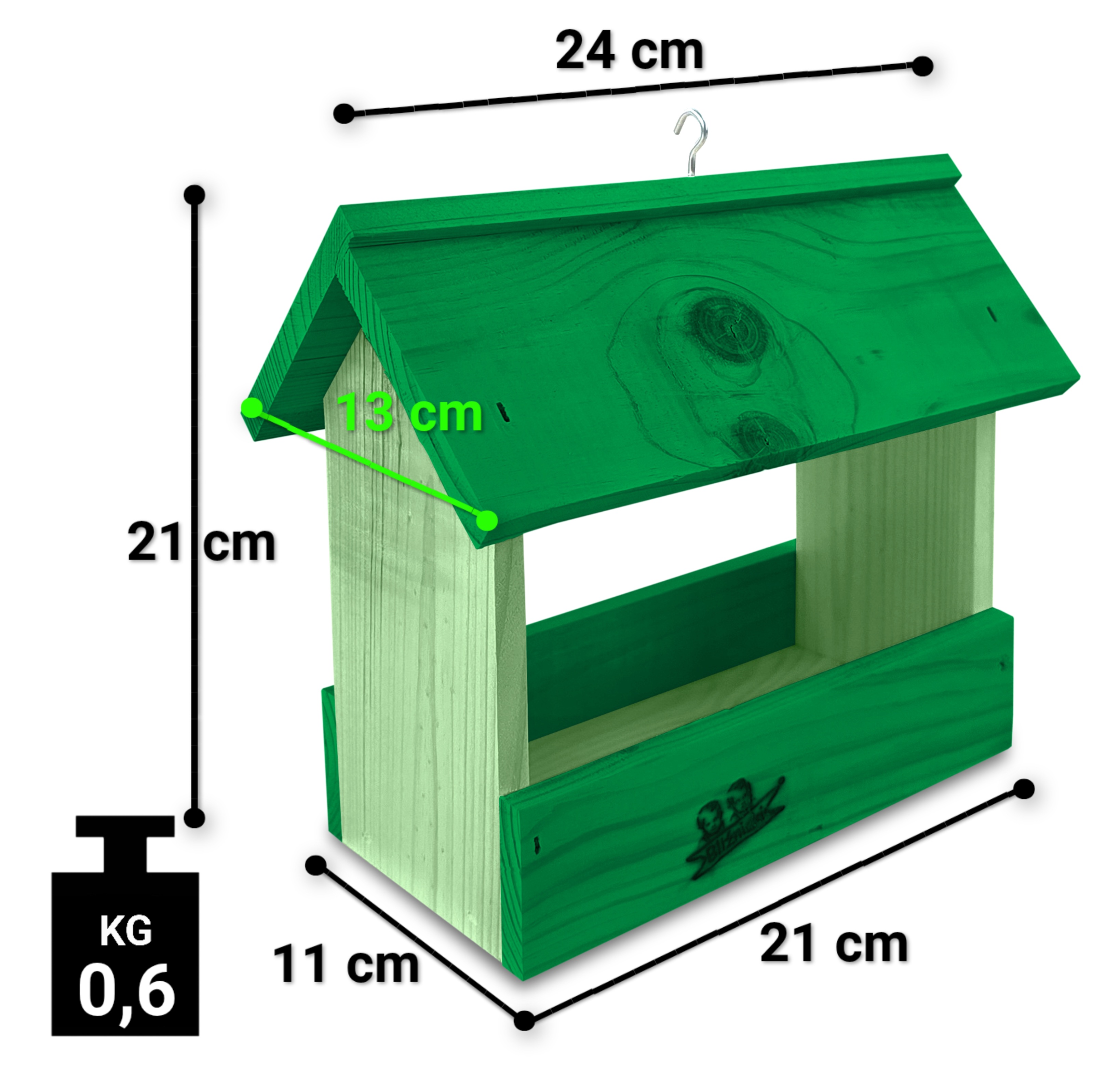 - Karmnik wykonany jest w całości z drewna iglastego, KOLOR JASNA ZIELEŃ / CIEMNA ZIELEŃ