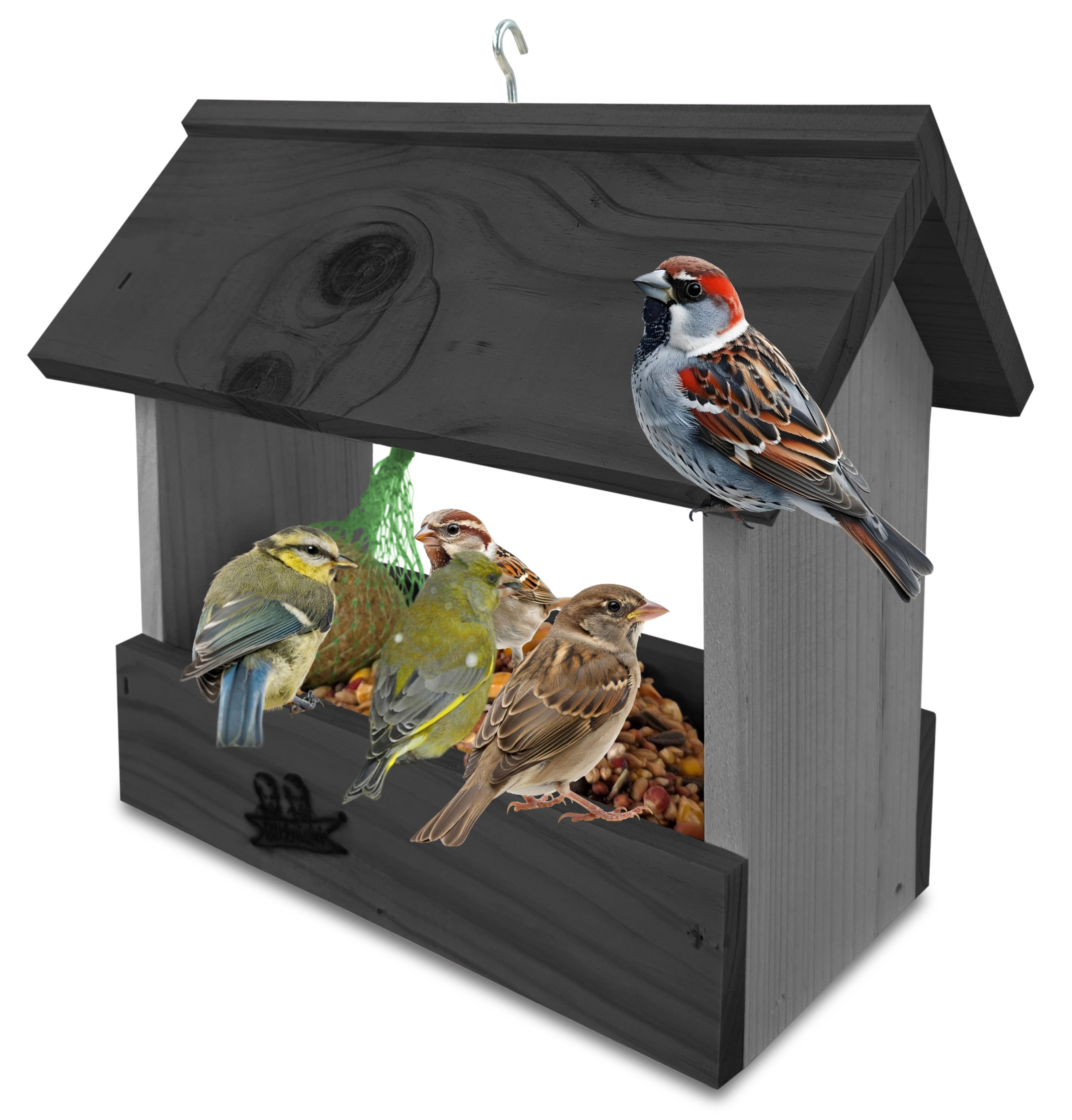 - Karmnik wykonany jest w całości z drewna iglastego, W DWÓCH KOLORACH - SZARY I CZARNY