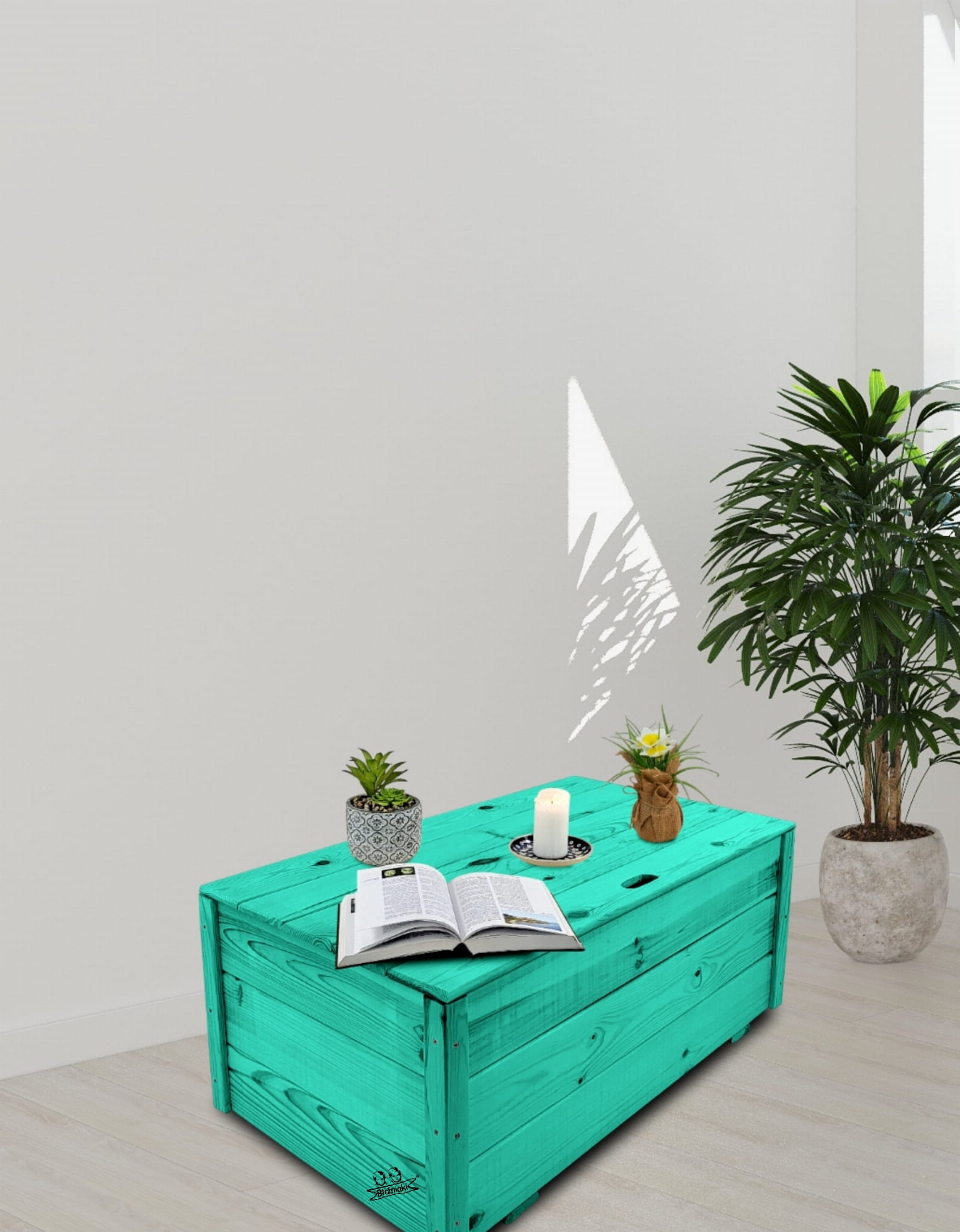 Przestronna Skrzynia Komoda ze schowkiem Stolik kawowy Kufer zamykany Stojący Mebel Drewniany Masywny Solidny Kolor Zieleń Morska 93 cm x 54 cm HADE2 MR
