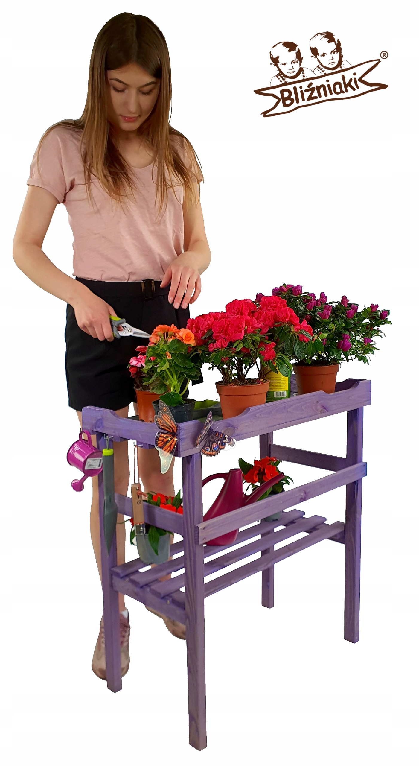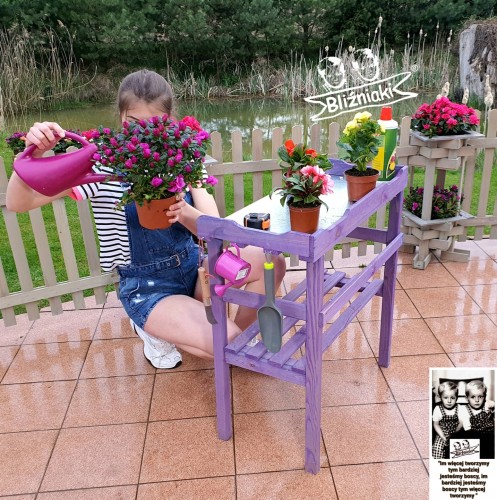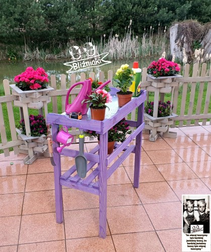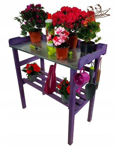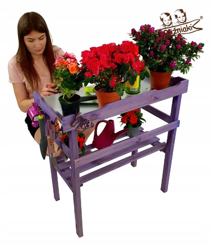 Stolik jest również bardzo praktyczny podczas sadzenia i przesadzania roślin, ale również może służyć jako ozdobna półka do prezentacji kwiatów w szklarni, na tarasie lub w ogrodzie.