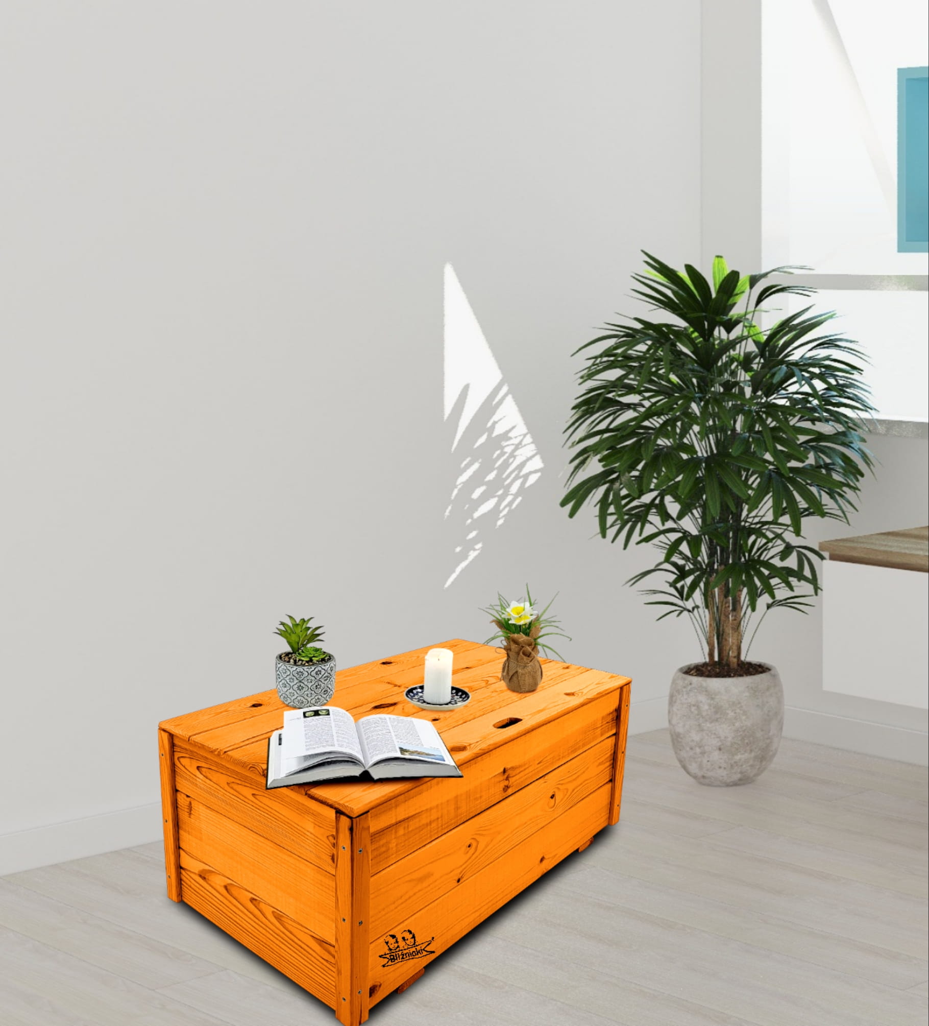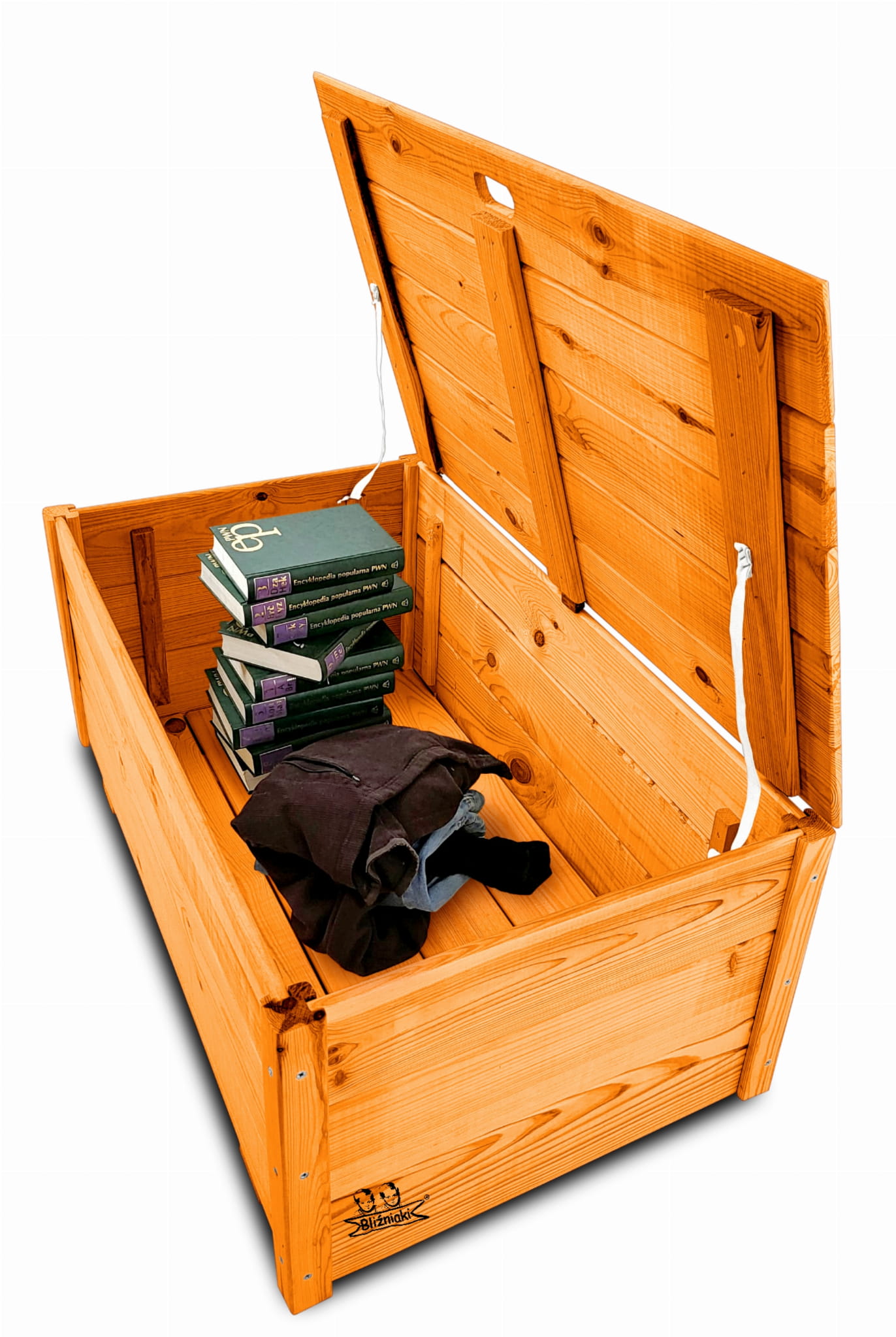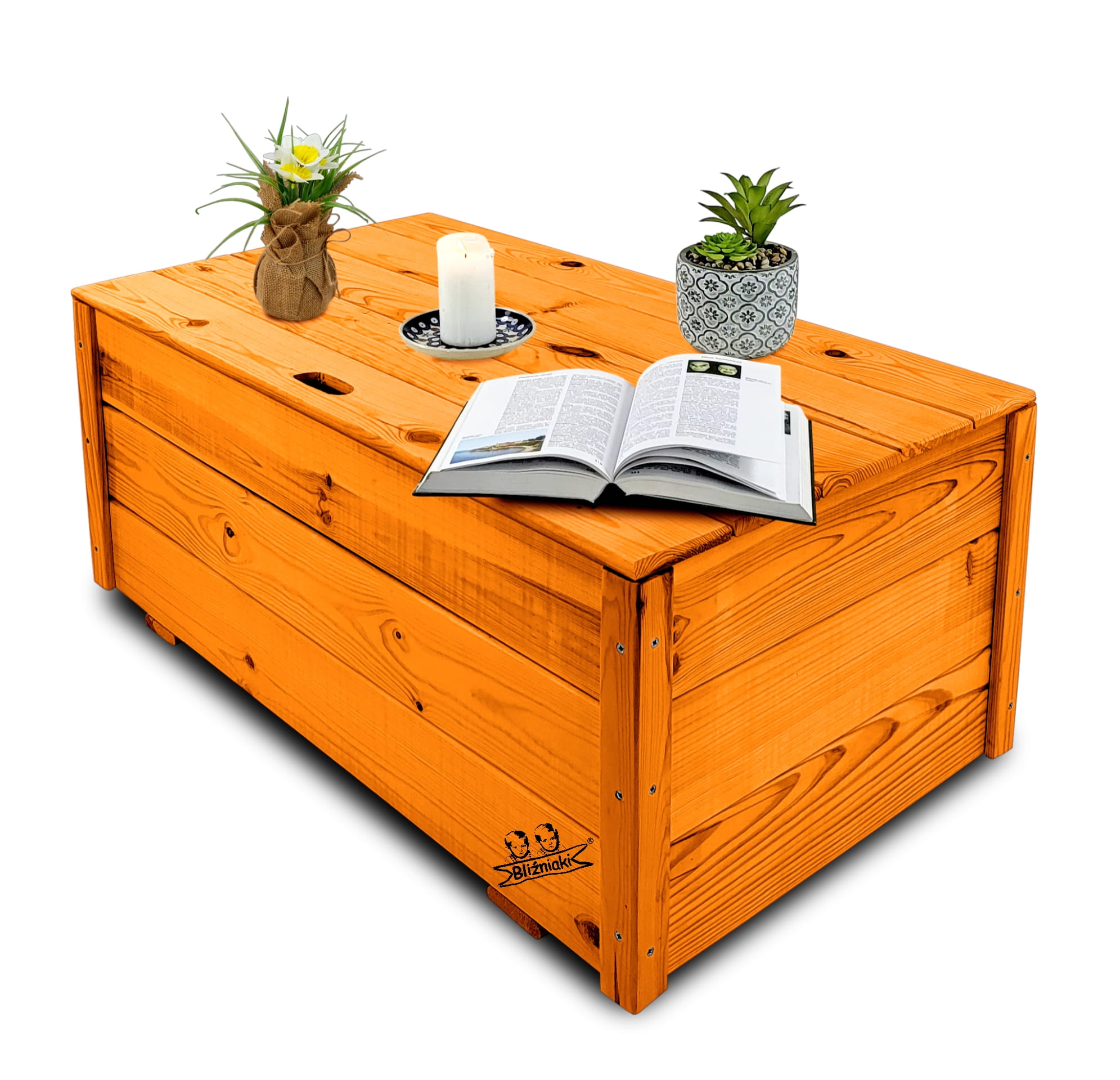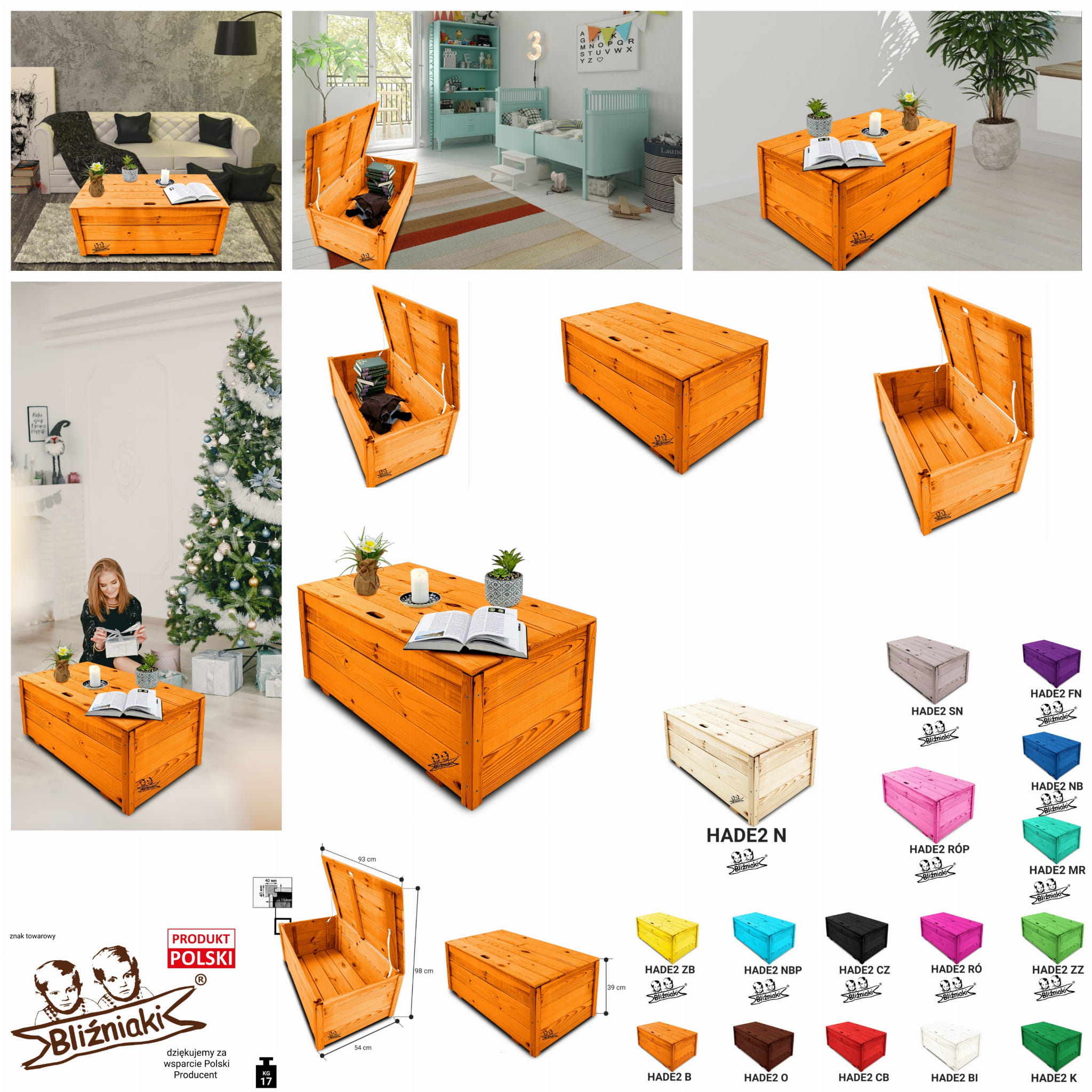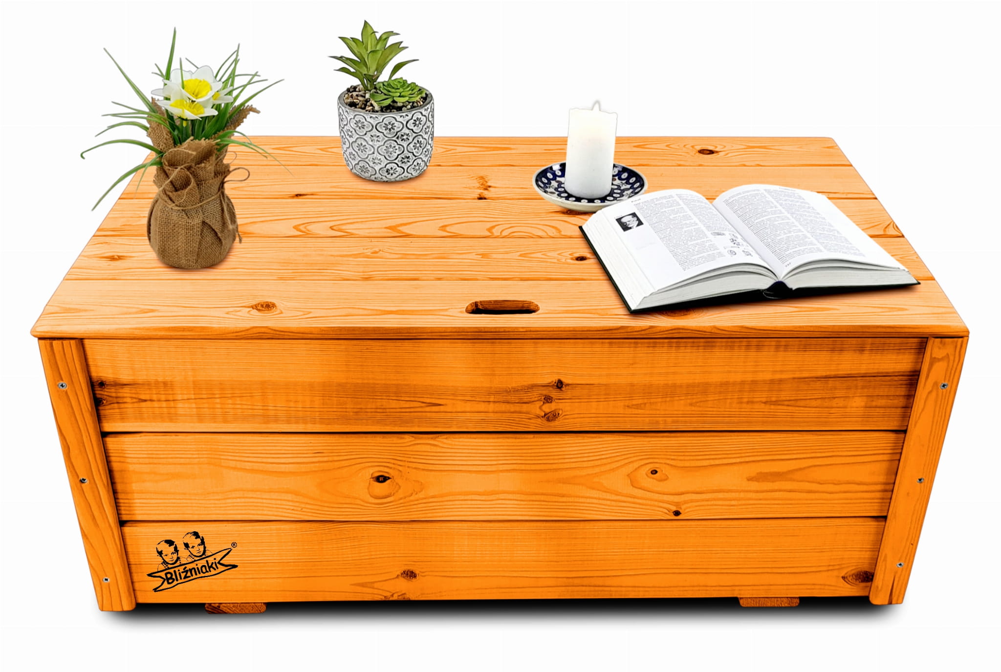 Skrzynia Drewniana Funkcjonalna Komoda ze schowkiem Stolik kawowy Mebel Kufer Zaimpregnowany Sosnowy HADE2 B