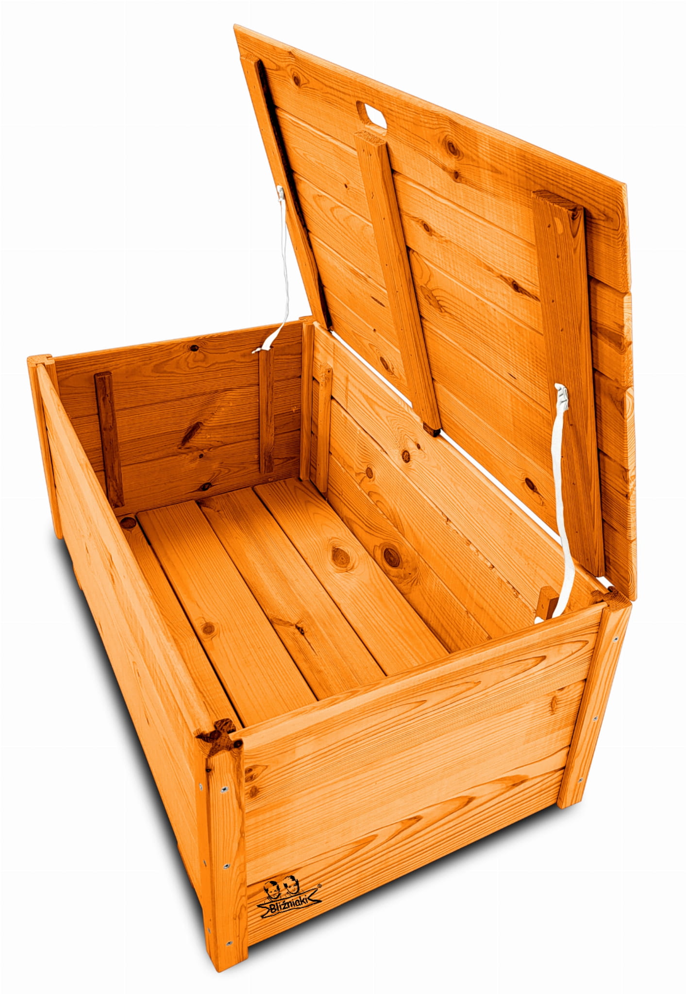 Produkt wykonany został z suszonego drewna sosnowego. Zabezpieczony metodą impregnowania. Środek na bazie wody użyty do impregnacji jest w pełni ekologiczny i bezpieczny dla ludzi i zwierząt. Zabezpieczone w taki sposób drewno sprawia, że skrzynia jest odporna na szkodliwe działanie wody oraz wilgoci, promieni UV, a także grzybów i pleśni, może być więc przechowywana przez cały rok na zewnątrz. Produkt w jednolitym kolorze OLCHOWYM.