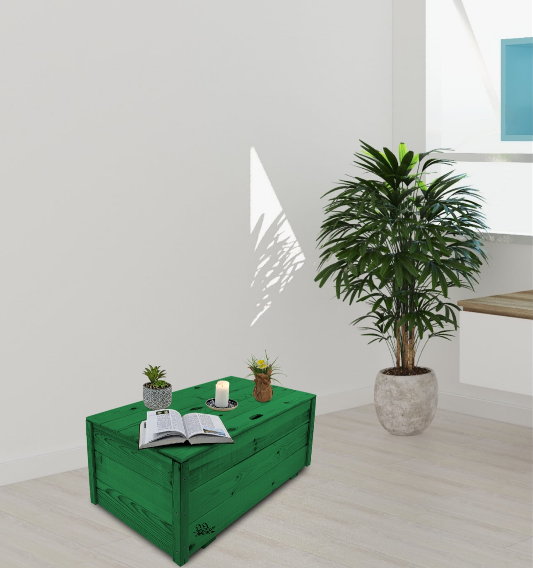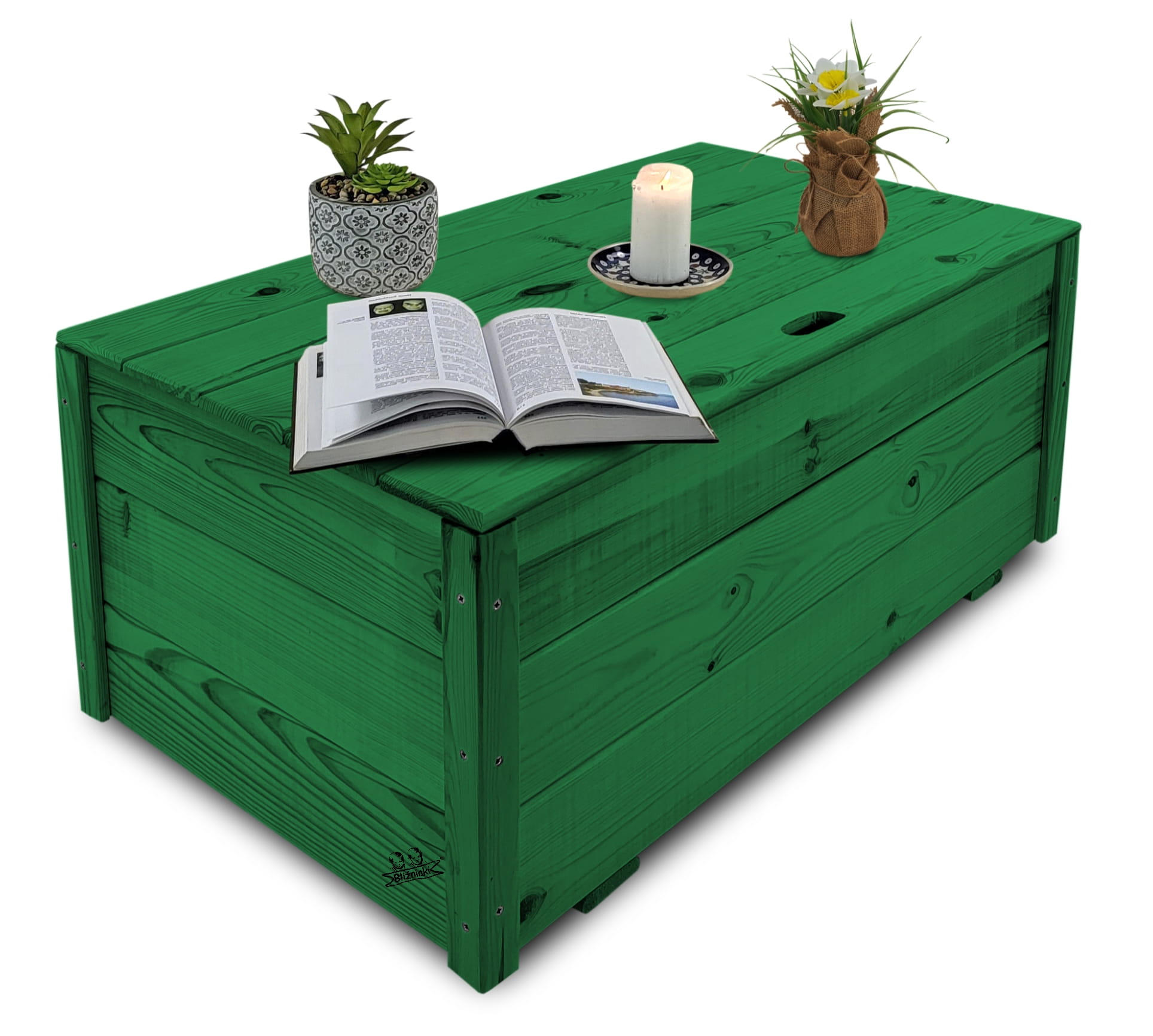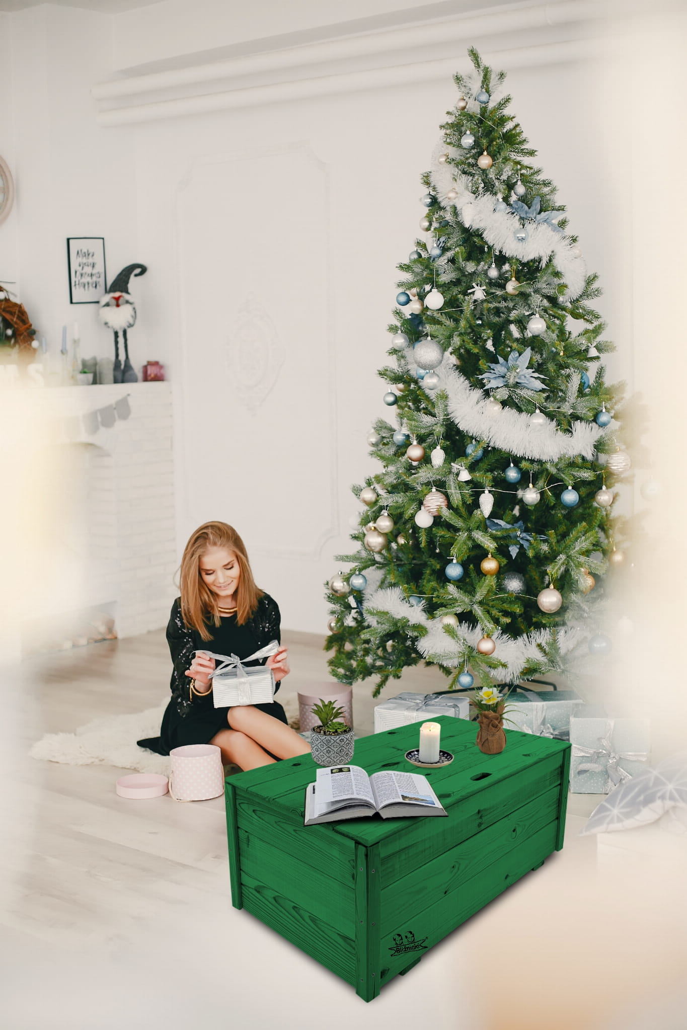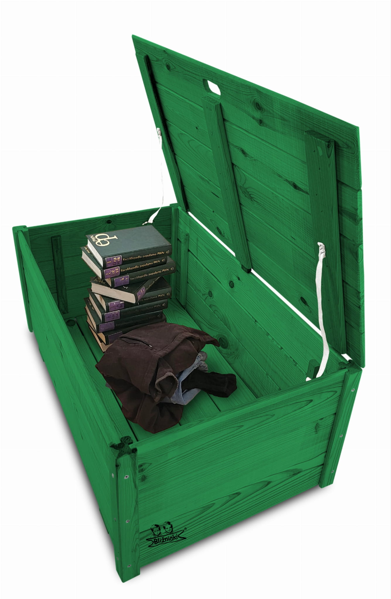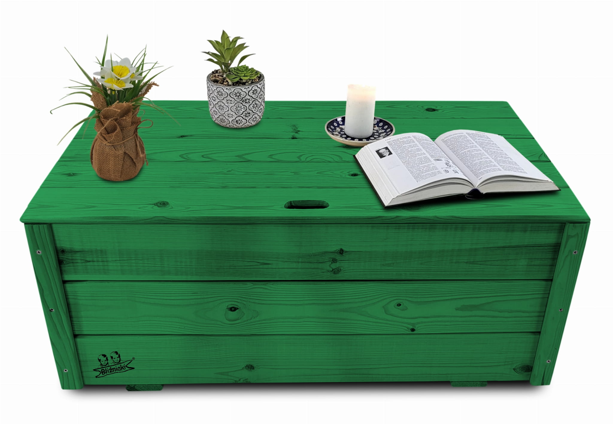 Skrzynia Z Drewna Bez Kółek Komoda ze schowkiem Kufer Stolik kawowy Stojący Organizer Mebel Szafka Pojemnik Drewniany Zielony HADE2 K