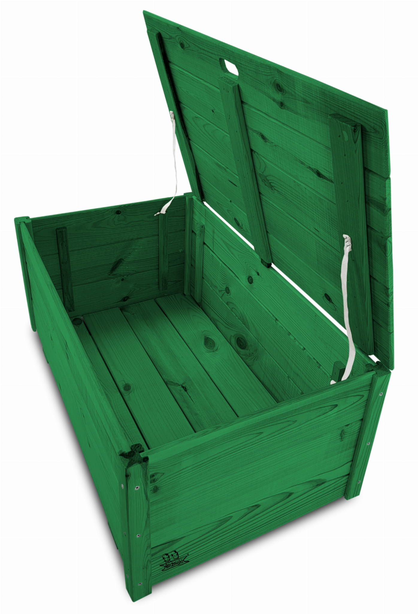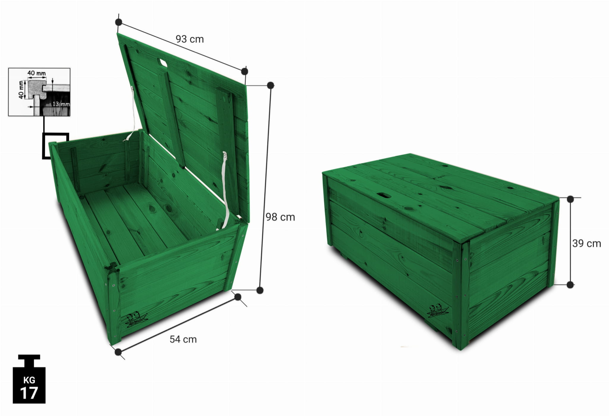 Poddane impregnacji drewno sprawia, że skrzynia HADE2 K jest odporna na szkodliwe działanie wody oraz wilgoci, promieni UV, a także grzybami i pleśnią, może być więc przechowywana przez cały rok na zewnątrz, na tarasie, w ogrodzie, czy na balkonach .