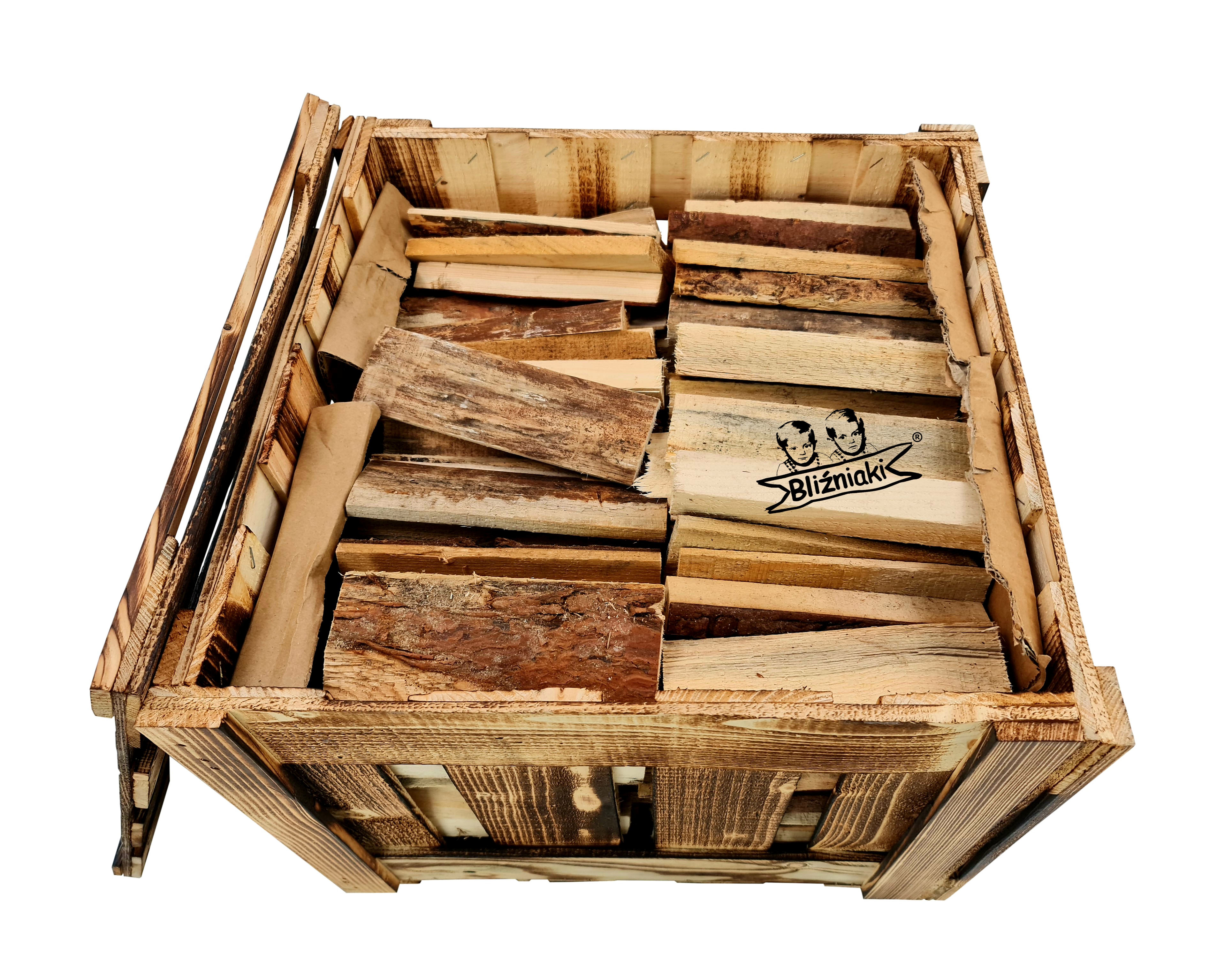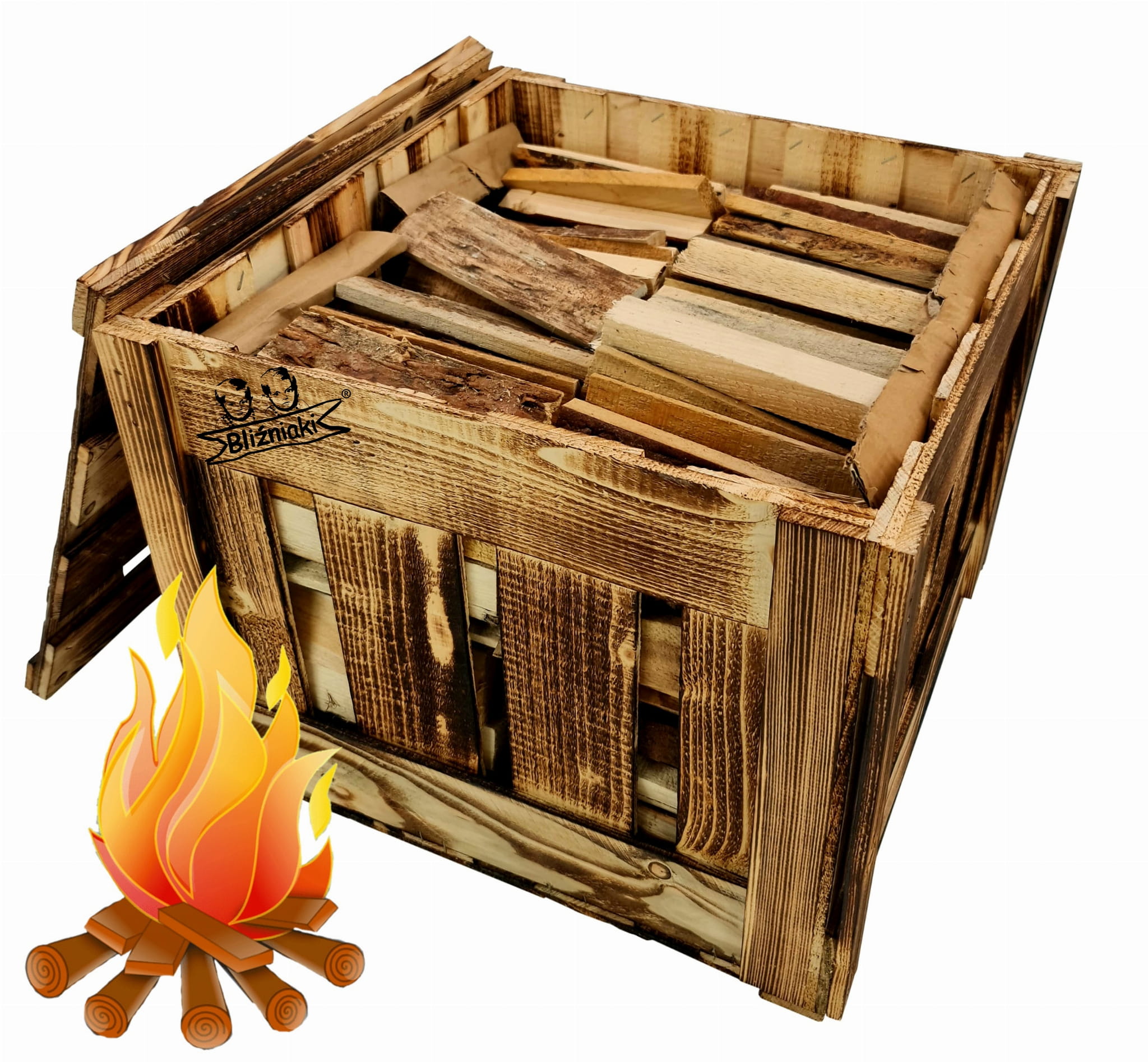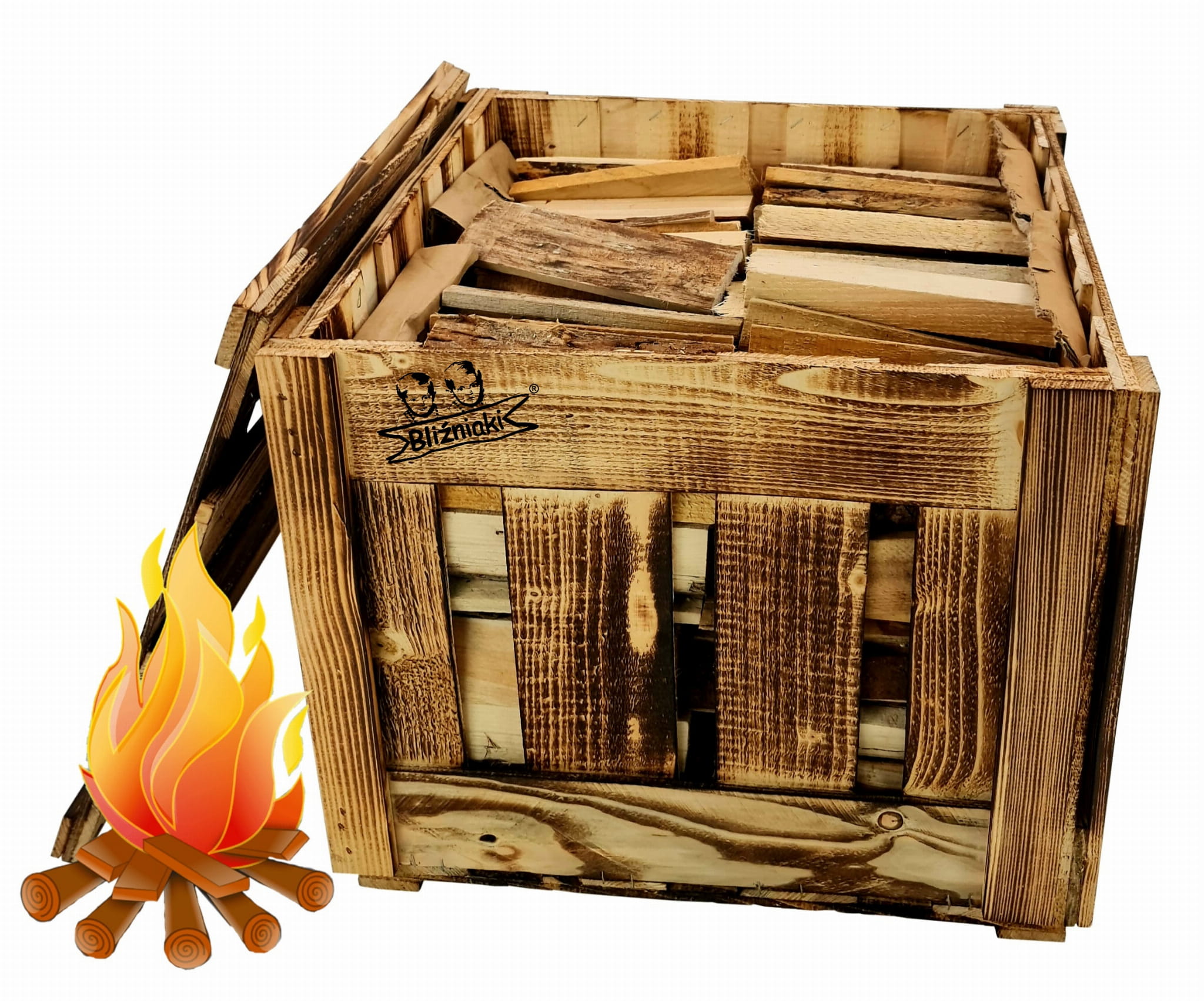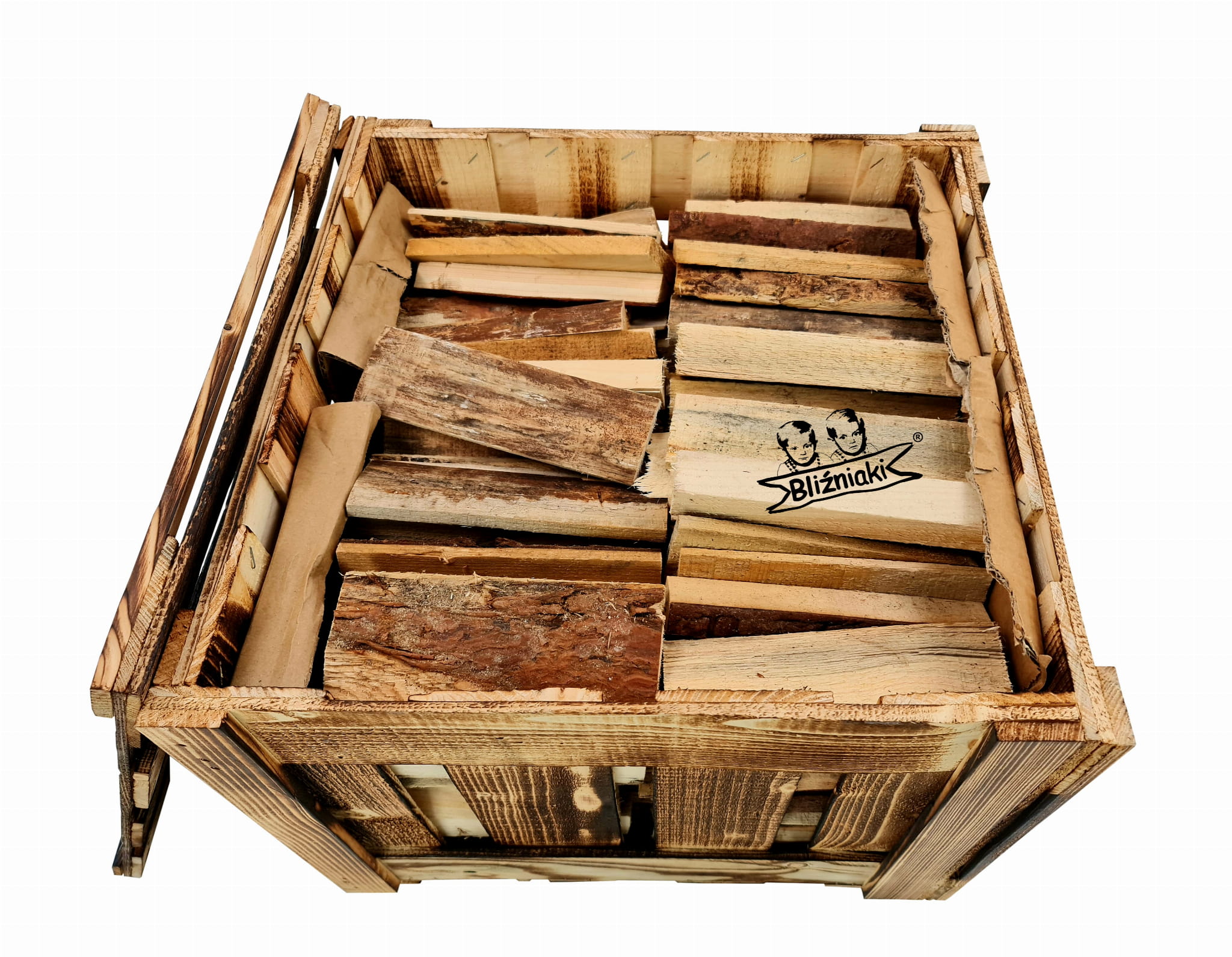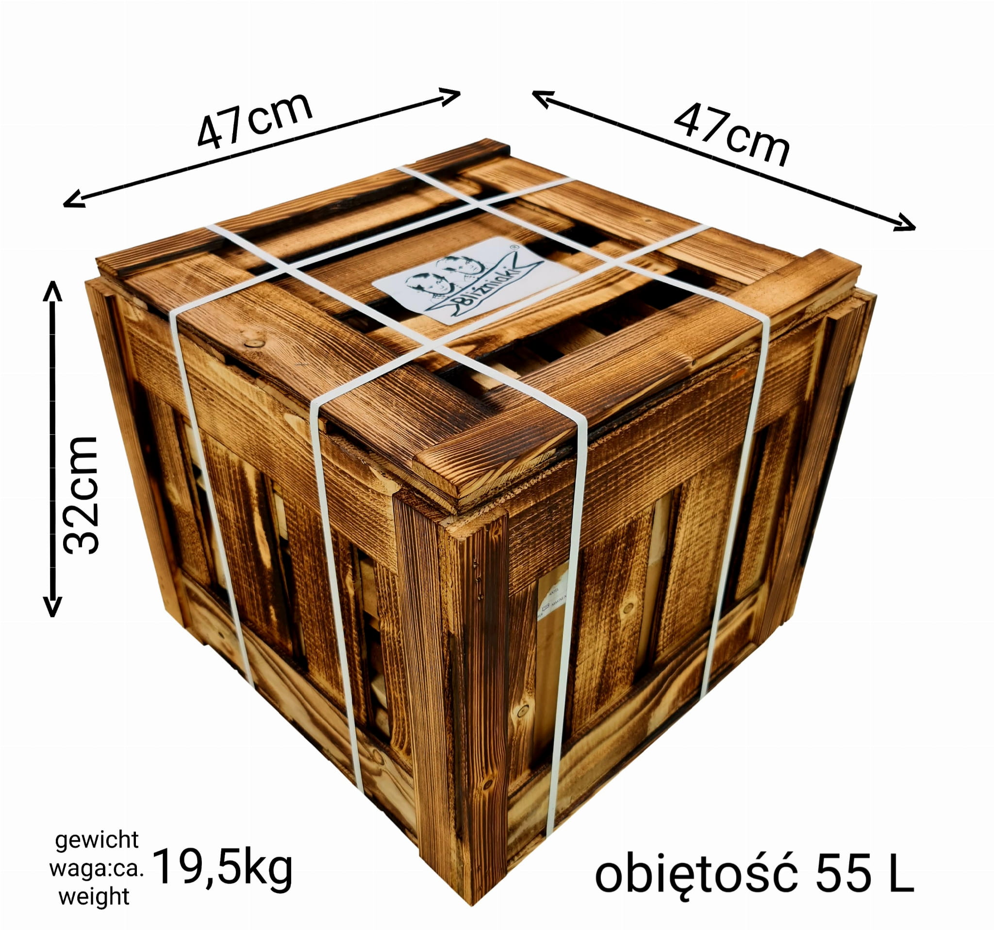 Skrzynia drewniana ozdobna opalana z drewnem drobnym rozpałkowym 19,5 kg drewno opałowe do piecyków kominków ogrodowych rozpałka sucha eko podpałka do grilla drzewo na ognisko ROZ3 19,5KG