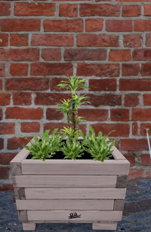 Donica wykonana została w całości z impregnowanego ekologicznie drewna. Dzięki temu uzyskała trwałość i odporność na szkodliwe działanie wody oraz wilgoci, promieni UV, grzybów i pleśni.