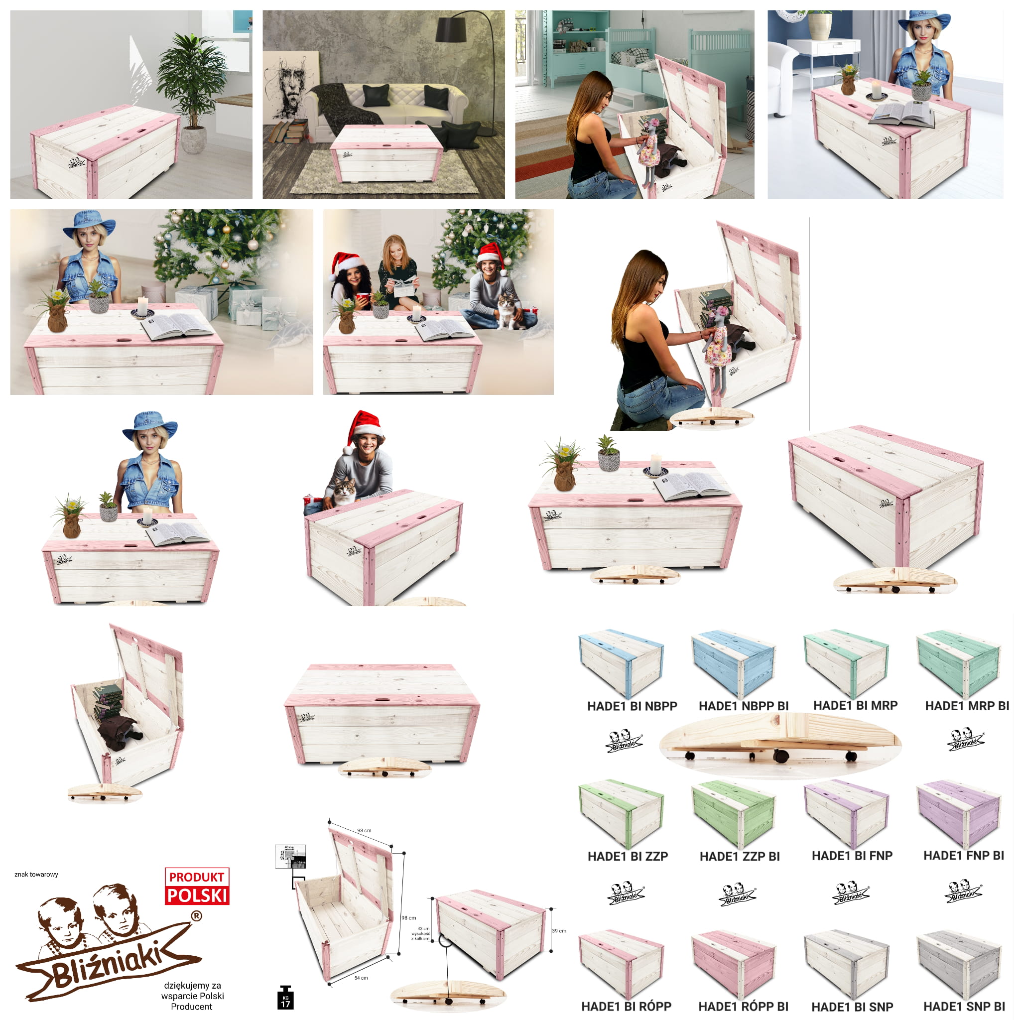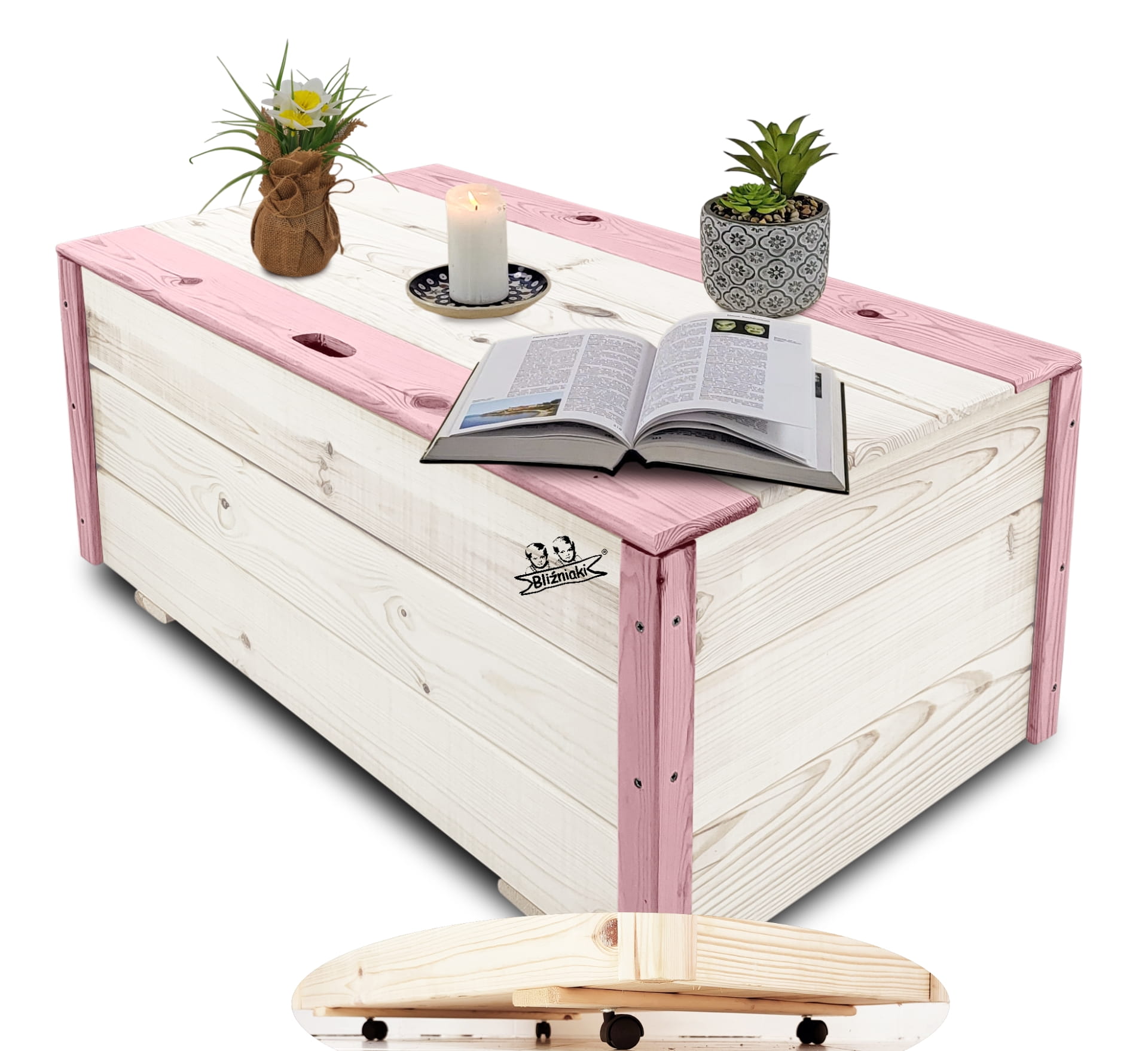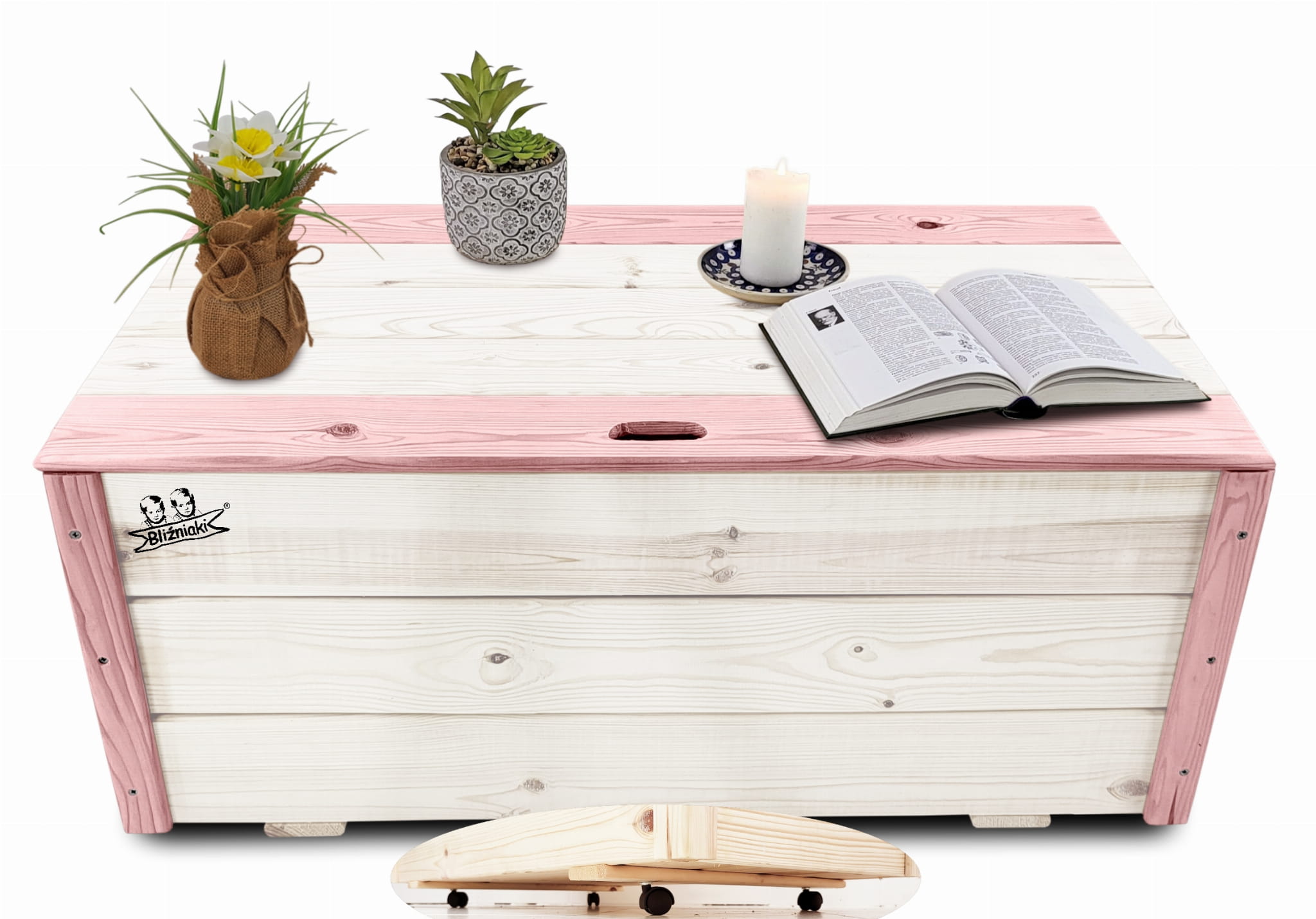 Skrzynia sosnowa drewniana Komoda ze schowkiem Stolik kawowy Mebel Zamykany pojemnik na kółkach Solidna szafka na kółkach Przestronny kufer z otwieranym baltem Stolik Mobilny do salonu sypialni HADE1 BI RÓPP