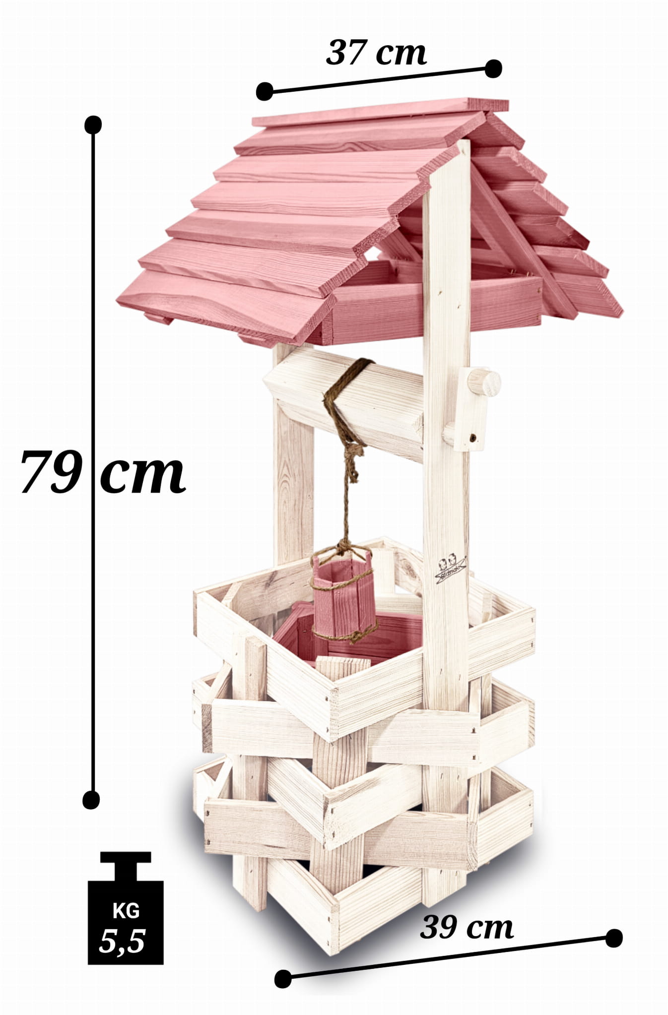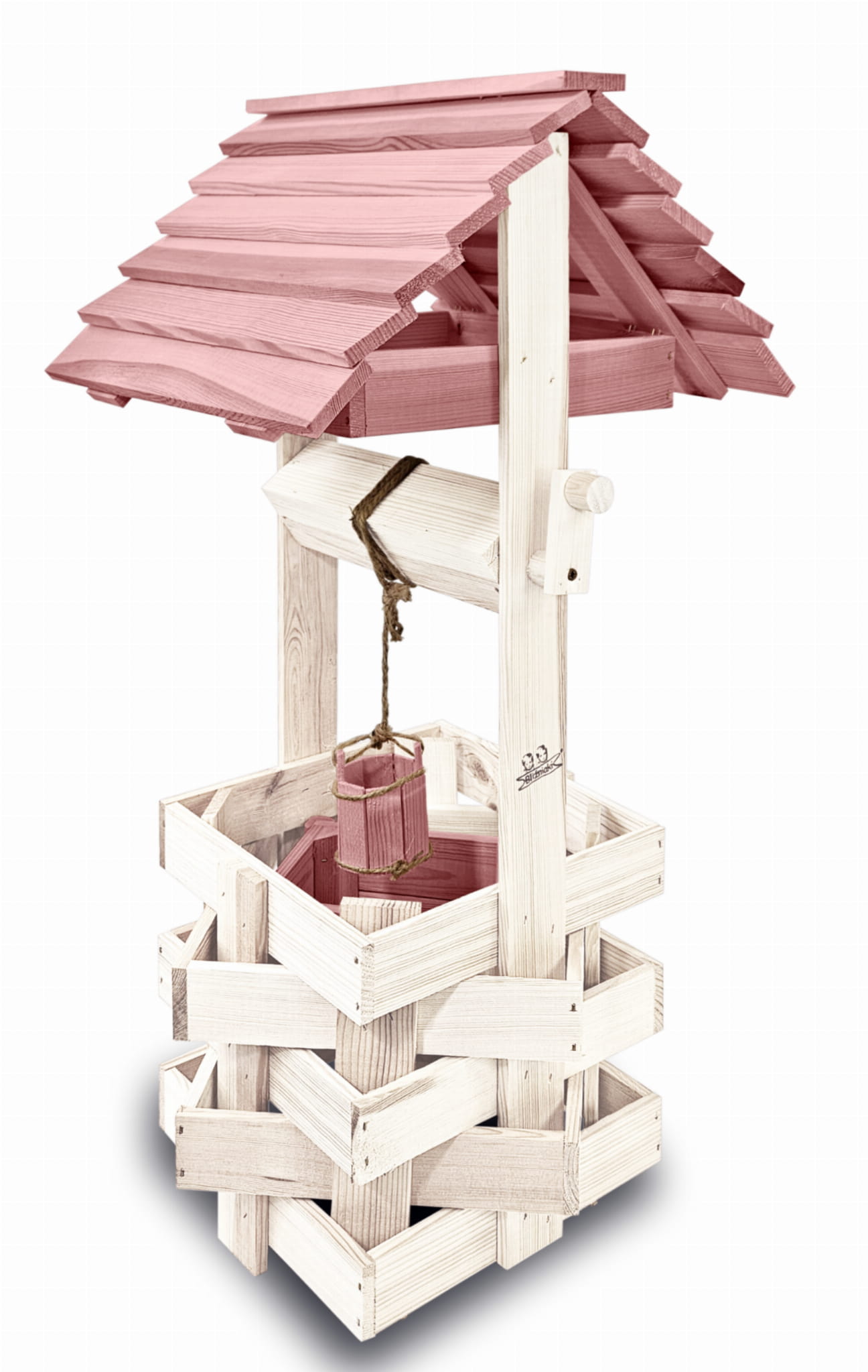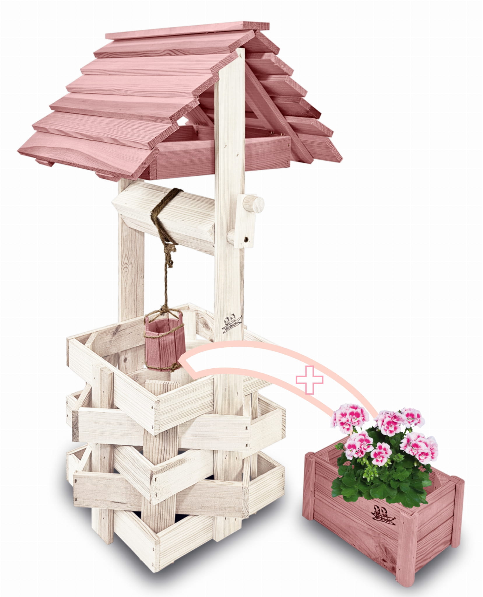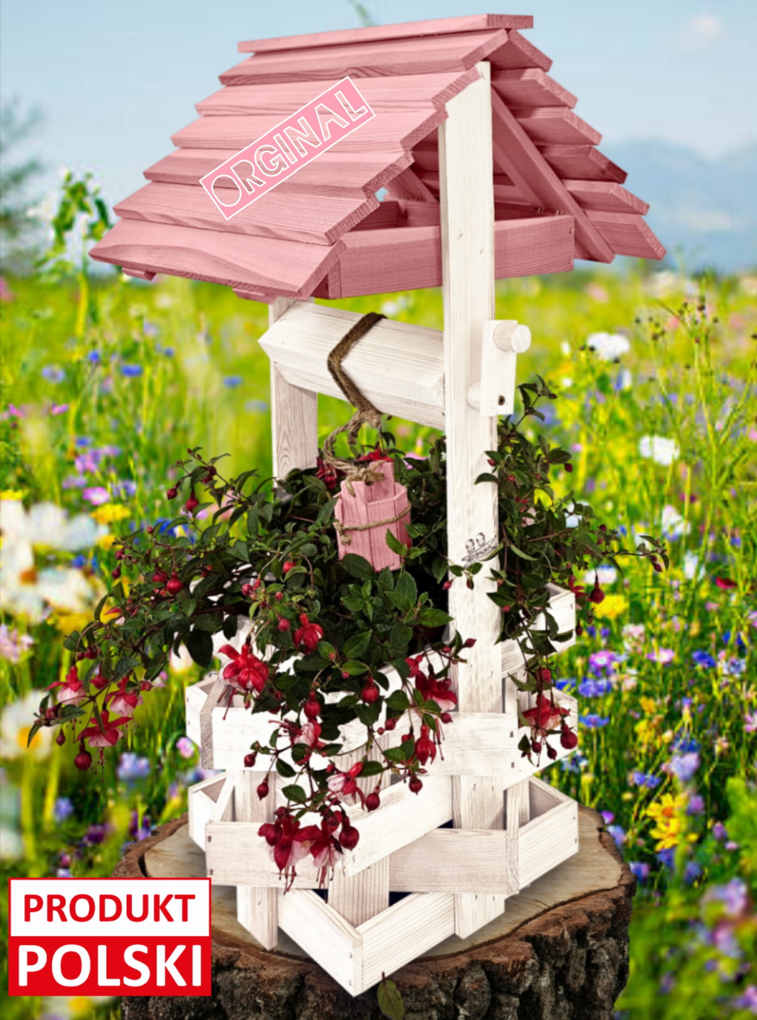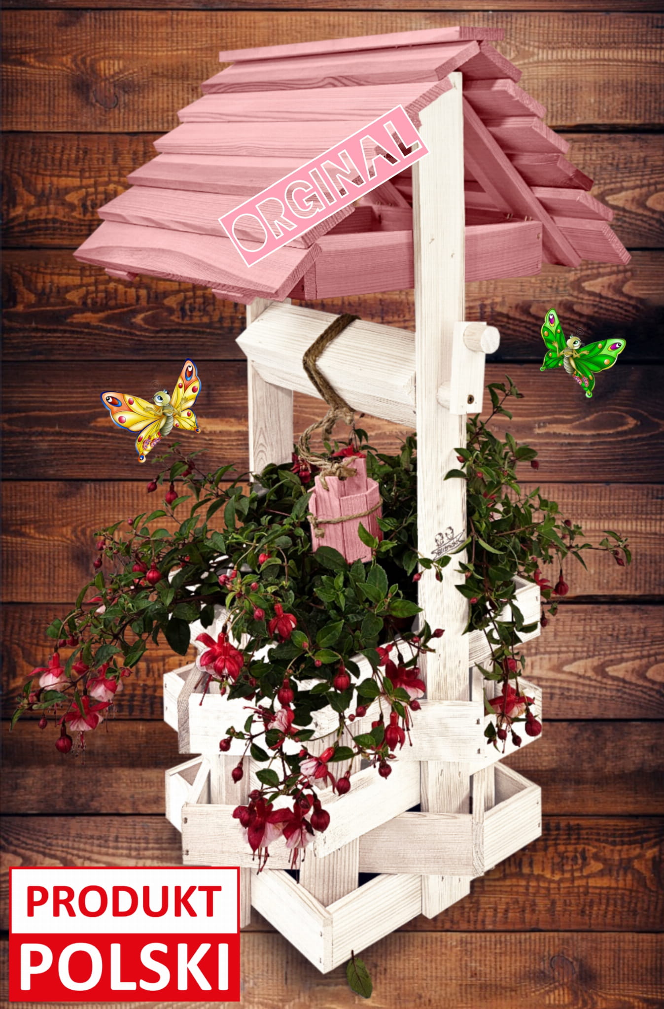 Studnia Drewniana Ozdobna ogrodowa Kolor Pastelowy Róż Donica na kwiaty do Domu i Ogrodu Studnie Balkonowe Tarasowe Studzienka na peralgonie Kwietnik doniczki Prezent Studzienki ozdobne Ozdoba Wnętrz i Ogrodu SC1 BI RÓPP