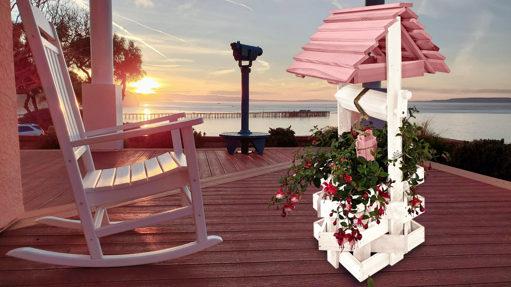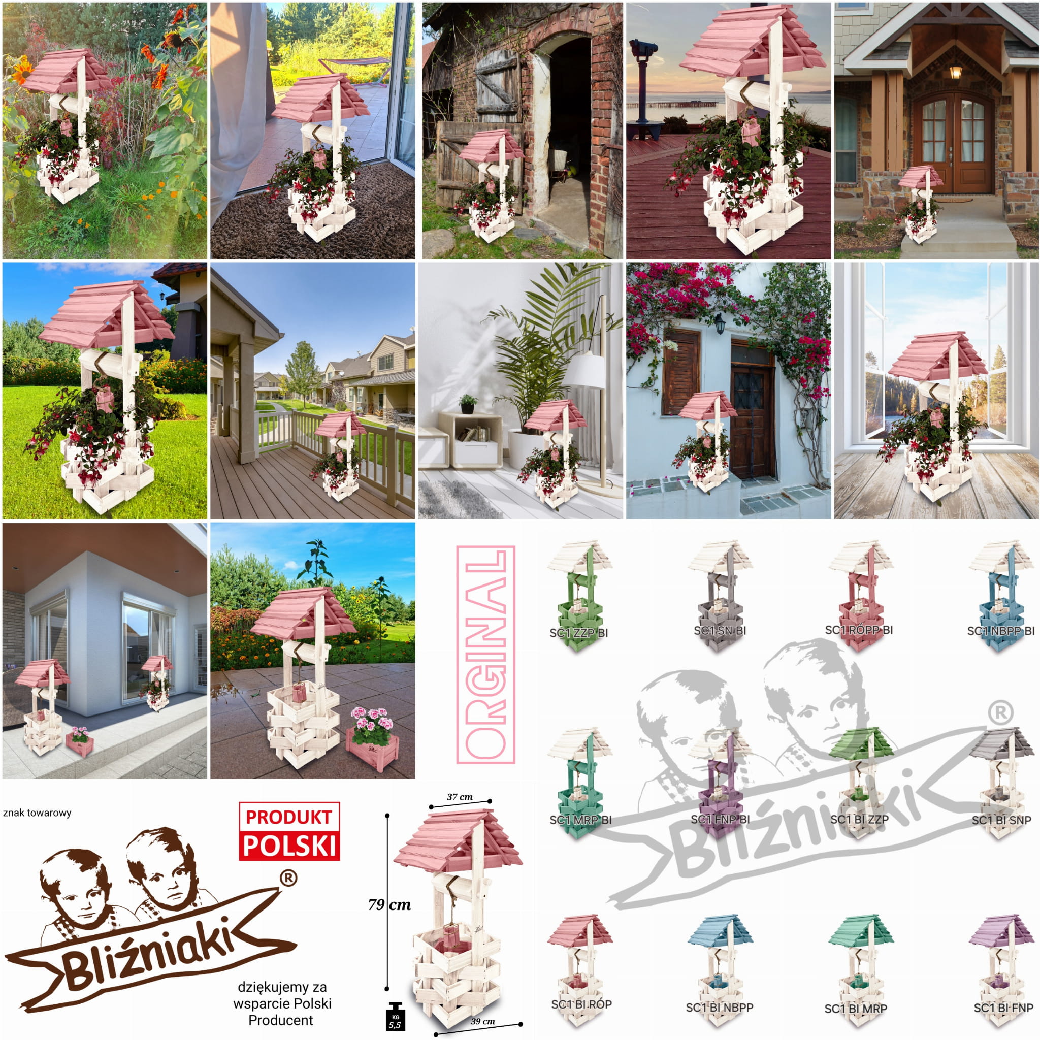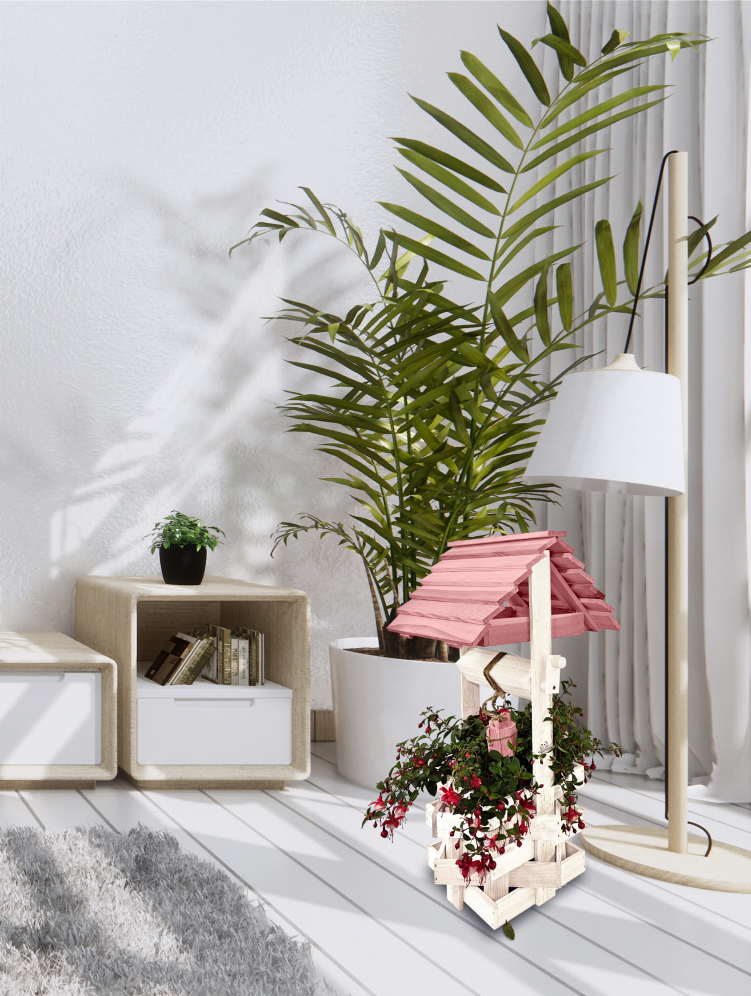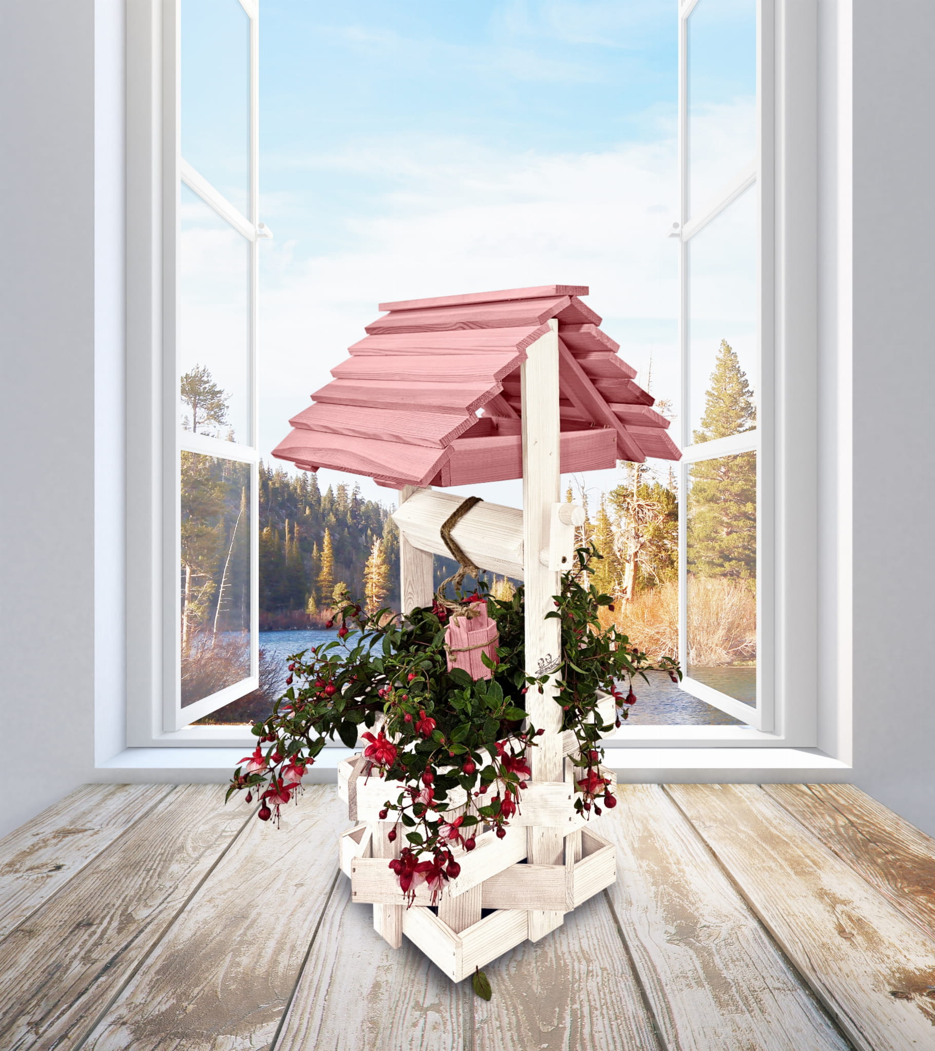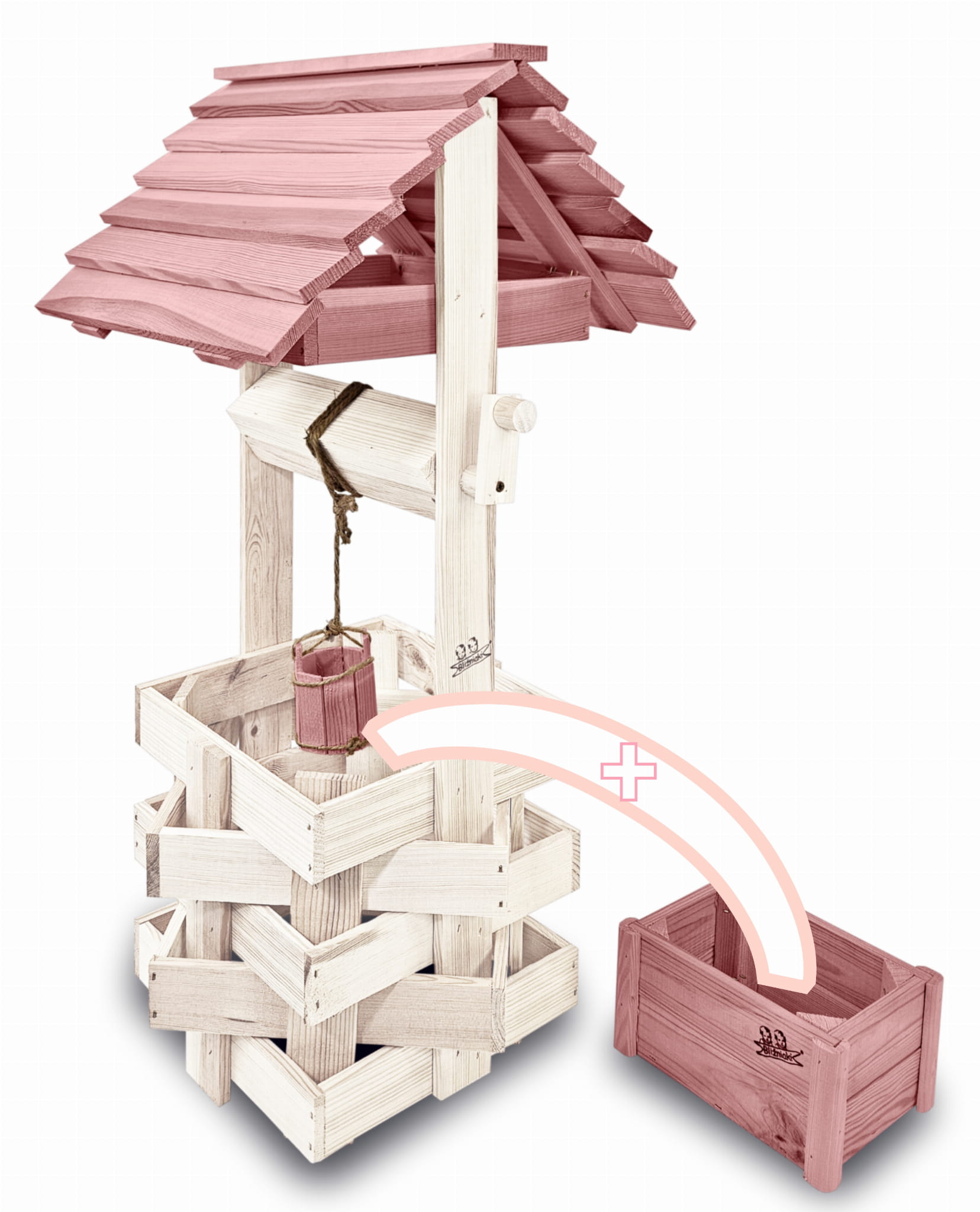 Studnia Drewniana Ozdobna ogrodowa Kolor Pastelowy Róż Donica na kwiaty do Domu i Ogrodu Studnie Balkonowe Tarasowe Studzienka na peralgonie Kwietnik doniczki Prezent Studzienki ozdobne Ozdoba Wnętrz i Ogrodu SC1 BI RÓPP