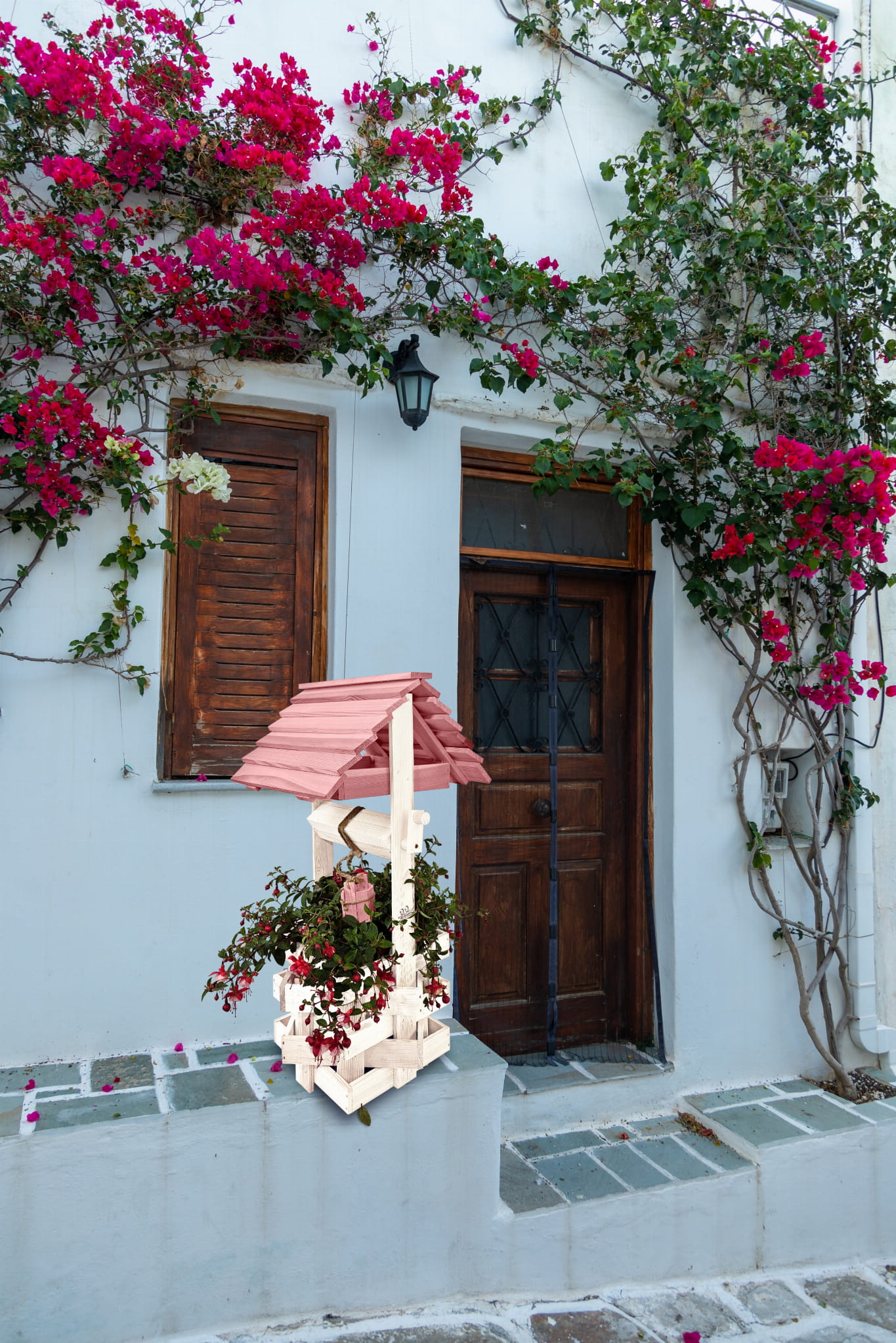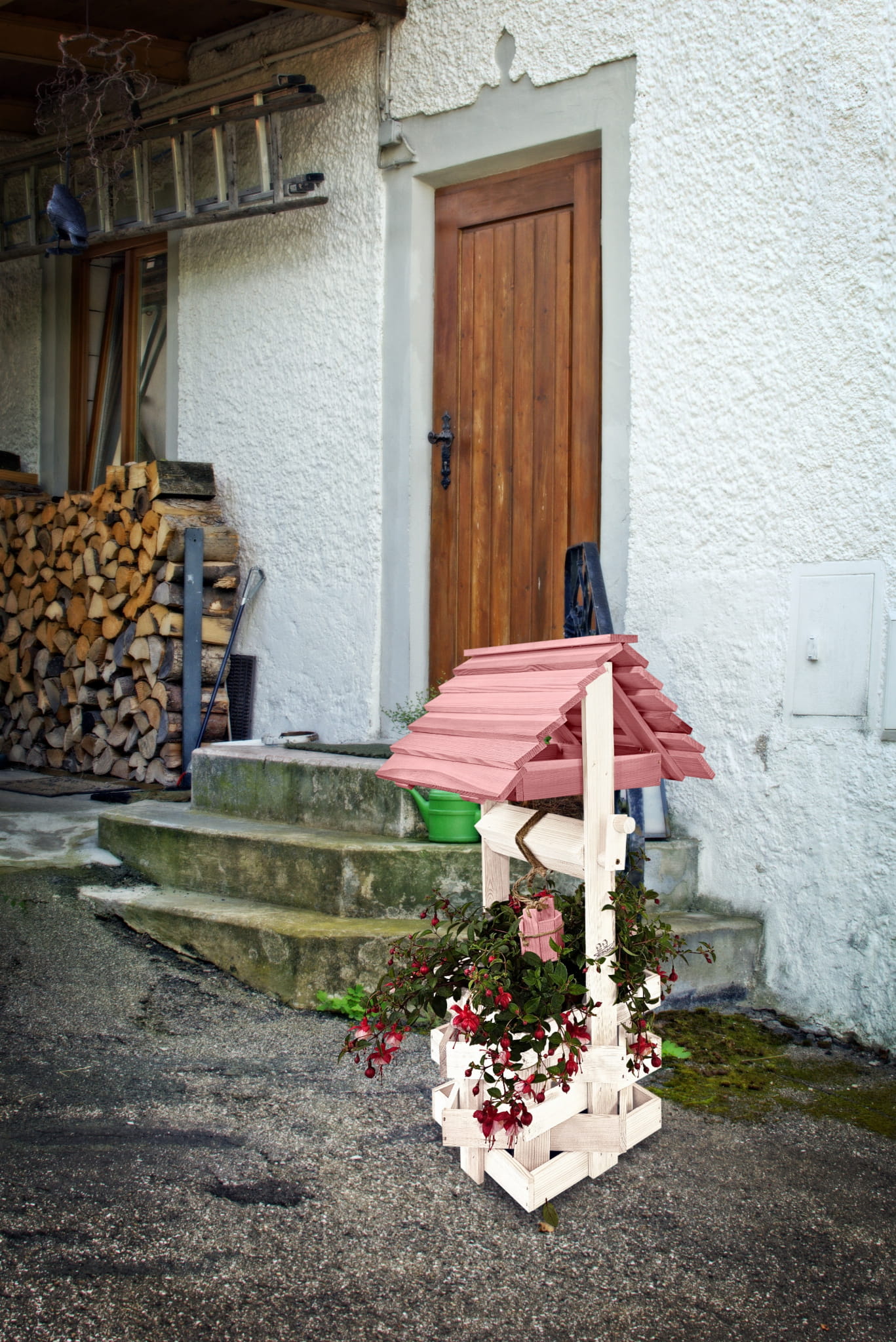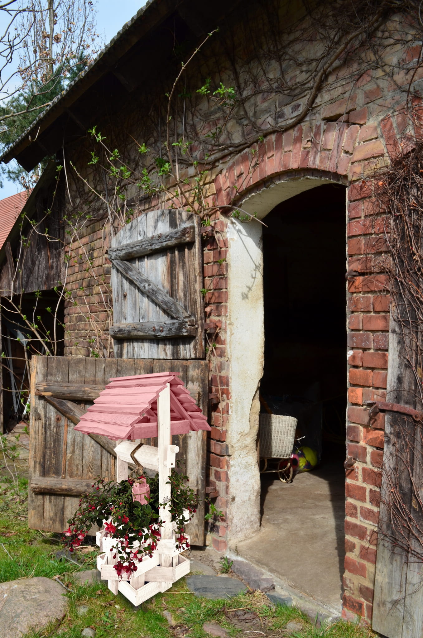 Nasza stylowa studnia wraz z donicą stanowi idealną bazę do stworzenia wyjątkowych kompozycji kwiatowych.