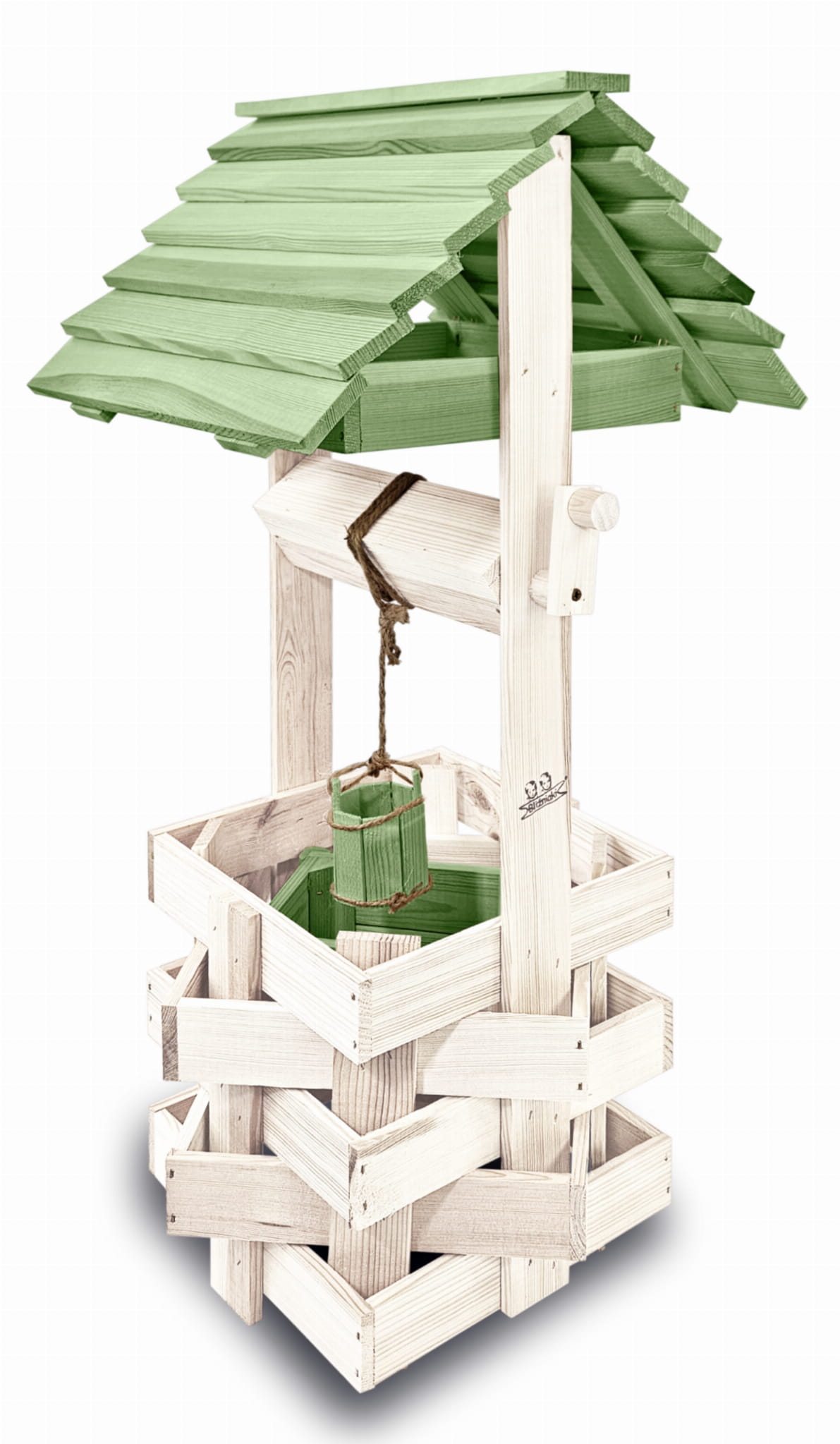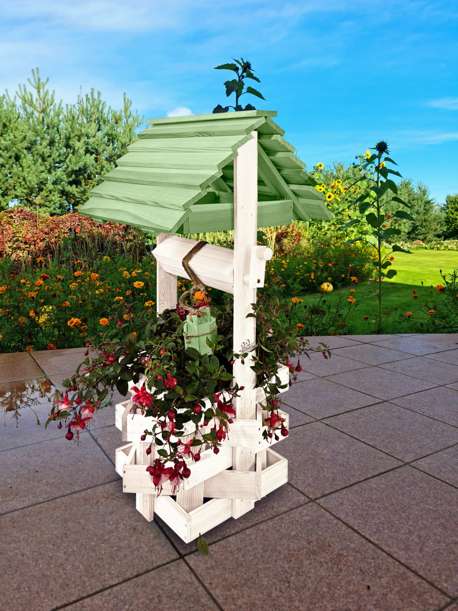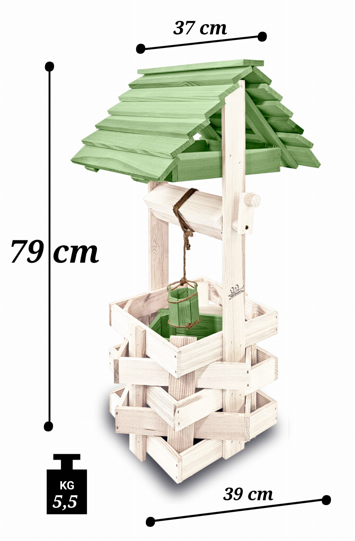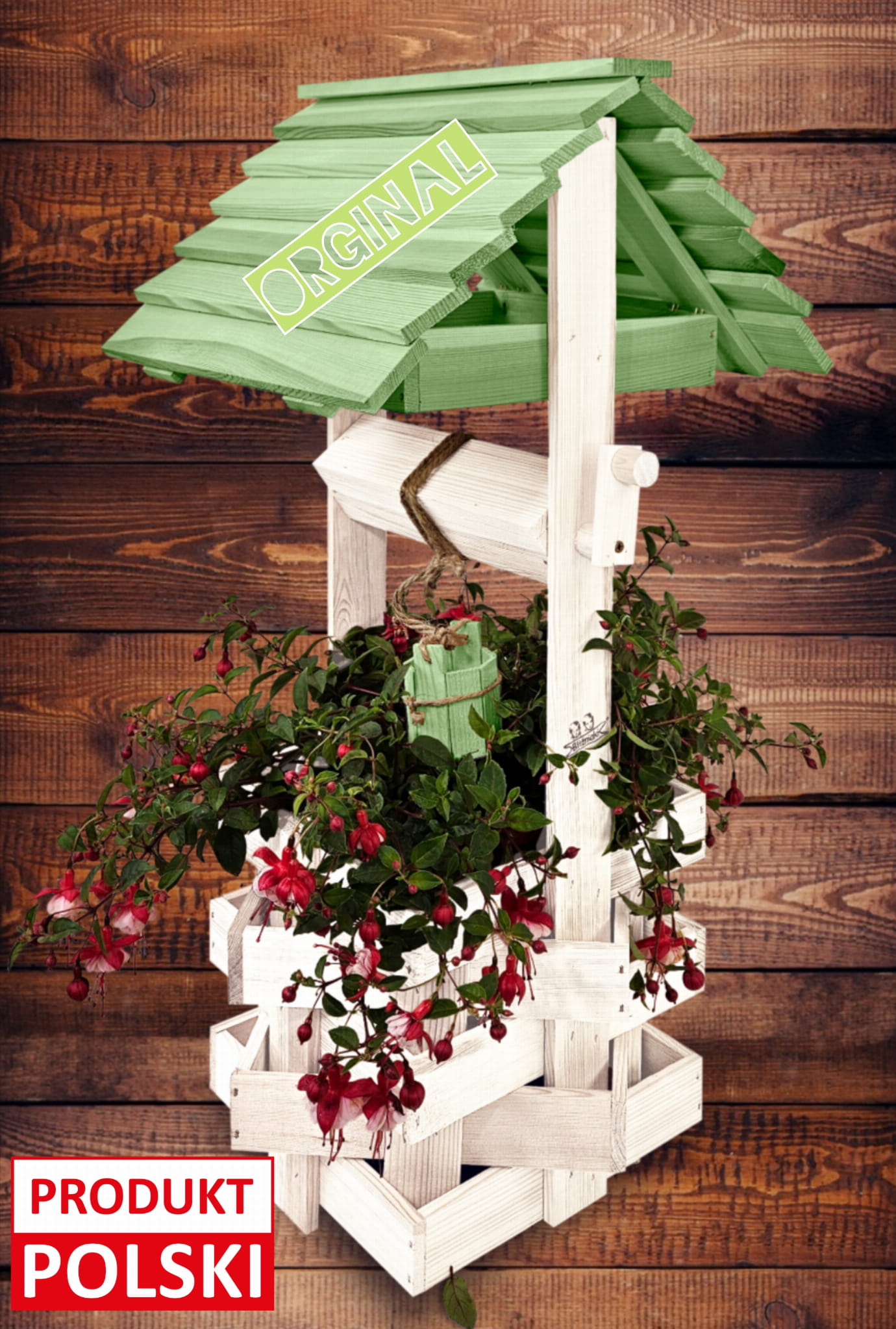 Studnia Drewniana Ozdobna ogrodowa Kolor Pastelowy Zielony Donica na kwiaty do Domu i Ogrodu Studnie Balkonowe Tarasowe Studzienka na peralgonie Kwietnik doniczki Prezent Studzienki ozdobne Ozdoba Wnętrz i Ogrodu SC1 BI ZZP