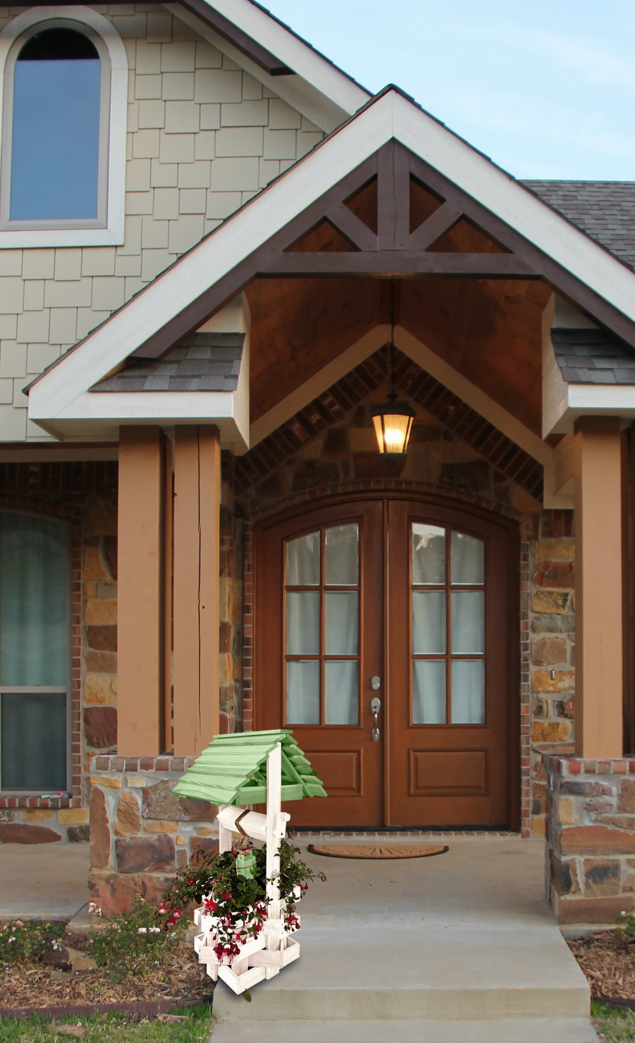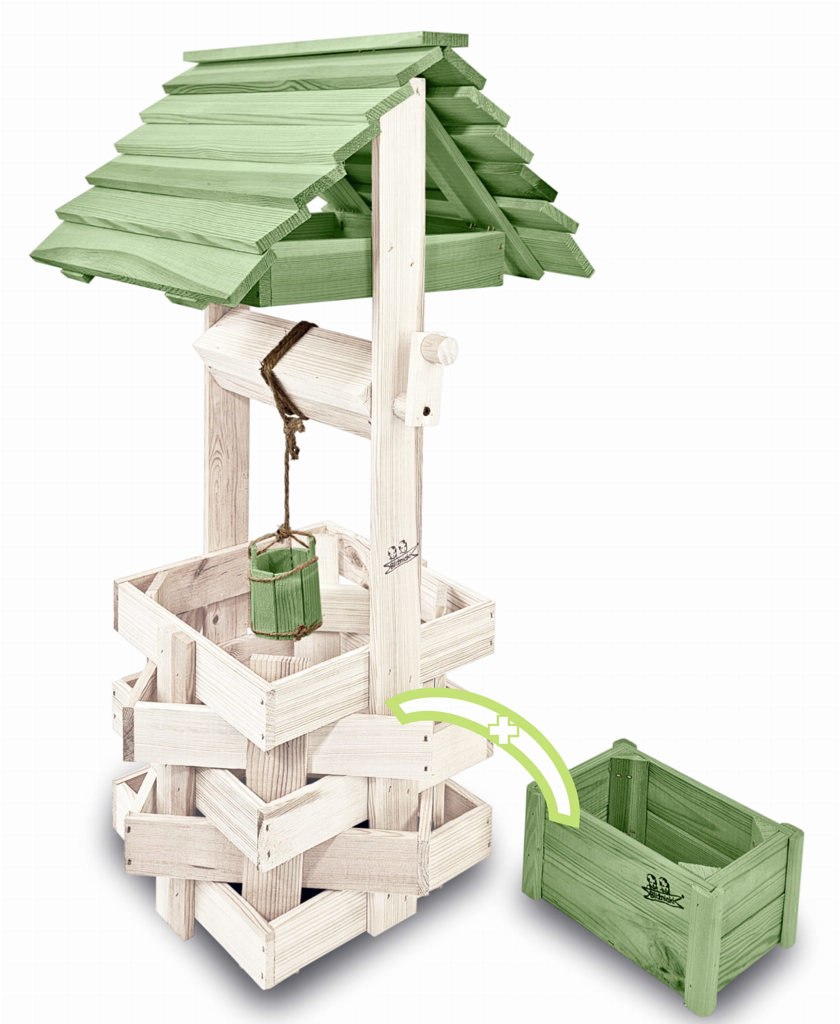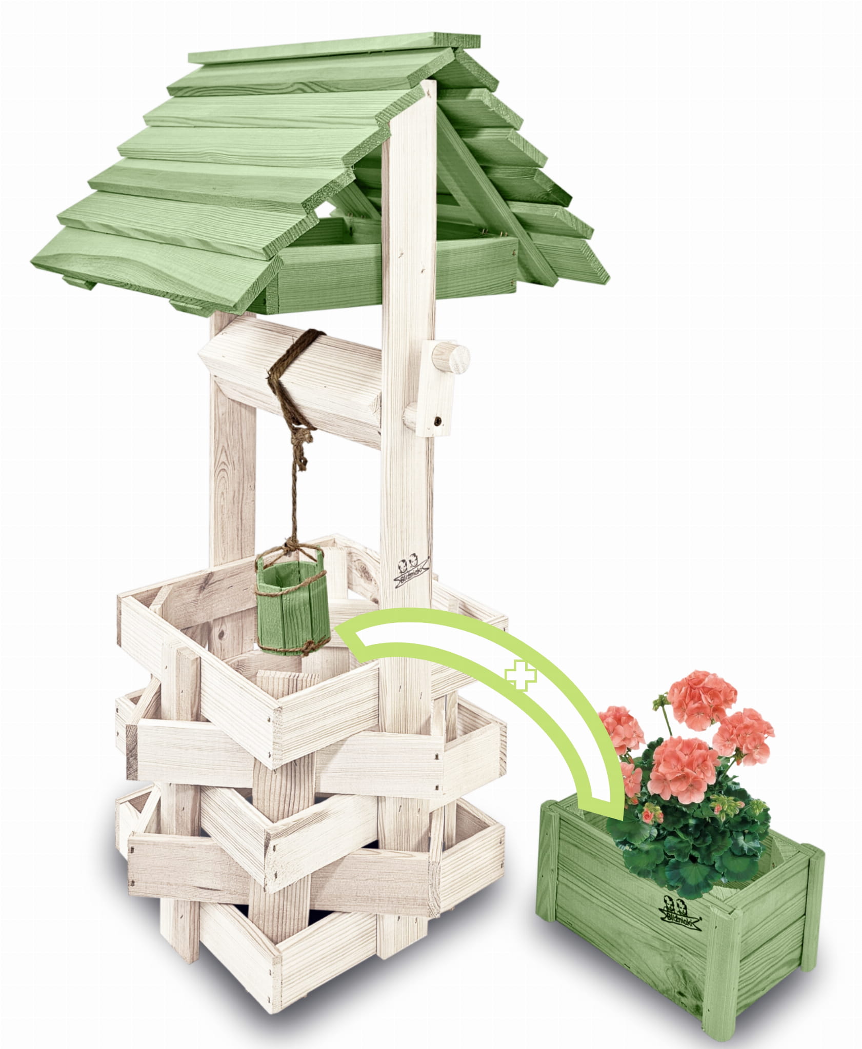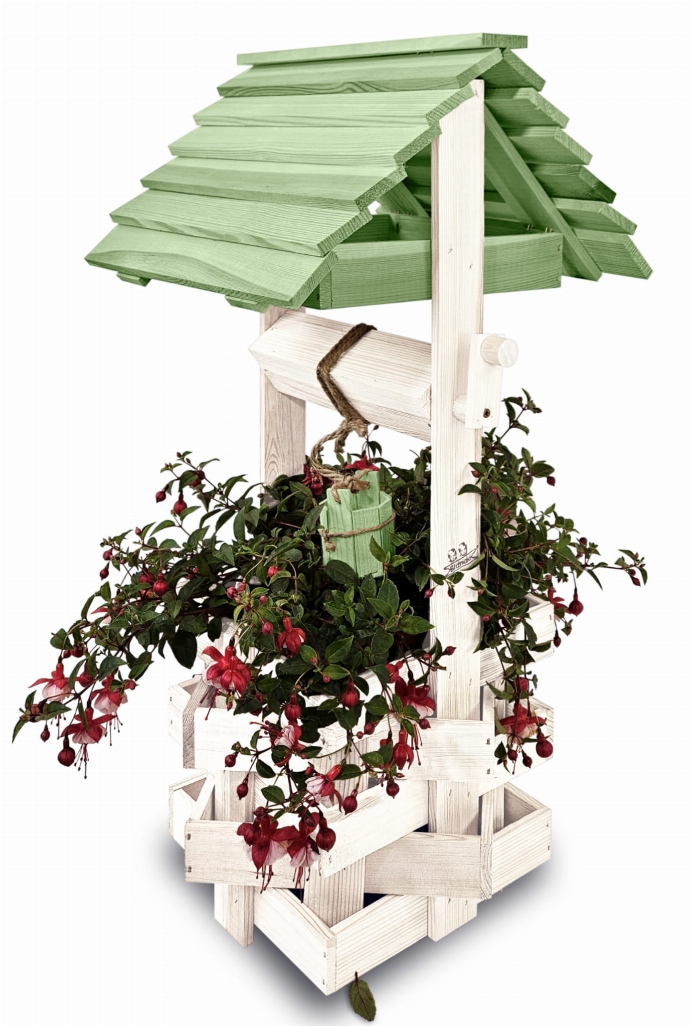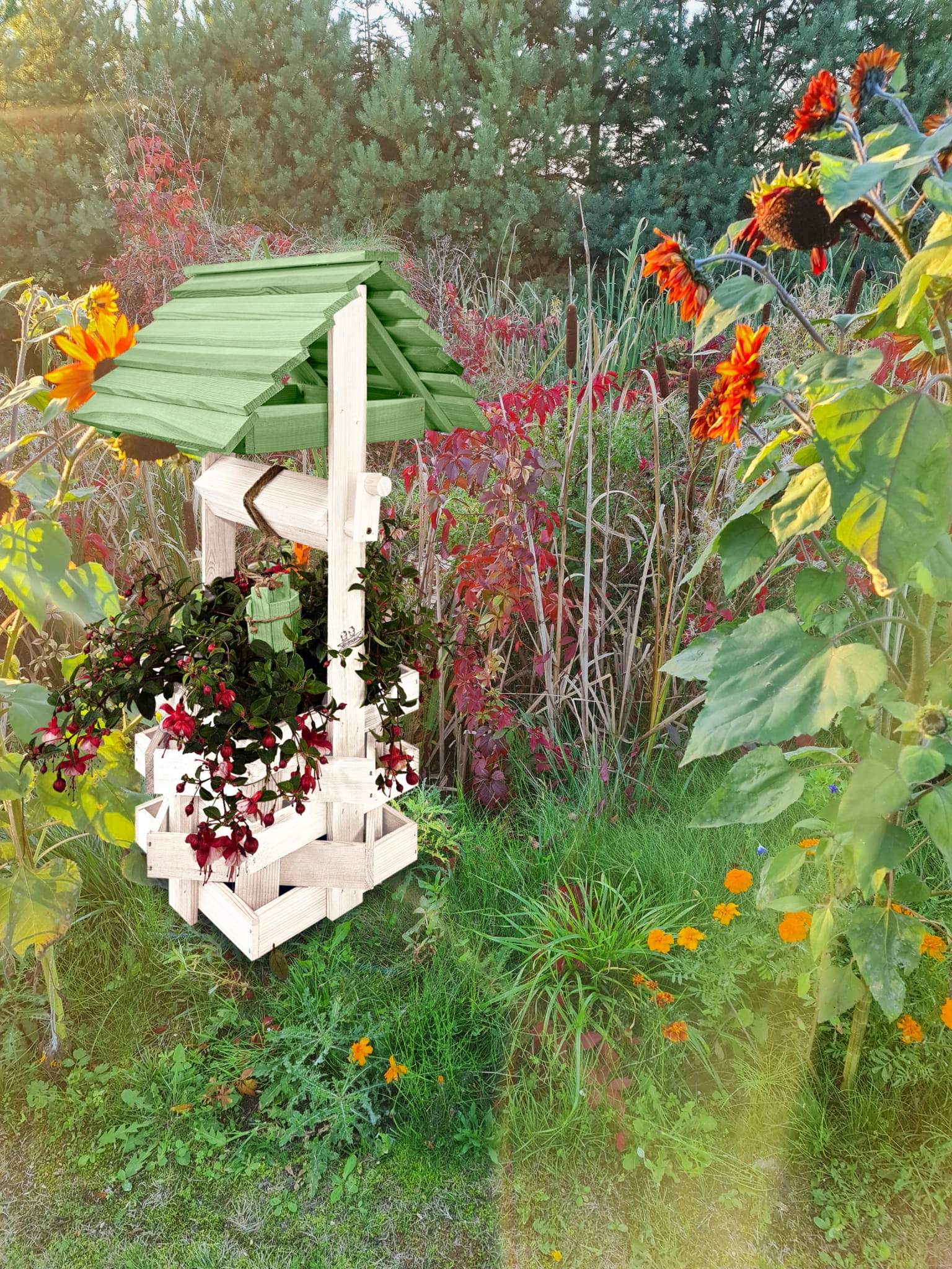 Studnia Drewniana Ozdobna ogrodowa Kolor Pastelowy Zielony Donica na kwiaty do Domu i Ogrodu Studnie Balkonowe Tarasowe Studzienka na peralgonie Kwietnik doniczki Prezent Studzienki ozdobne Ozdoba Wnętrz i Ogrodu SC1 BI ZZP