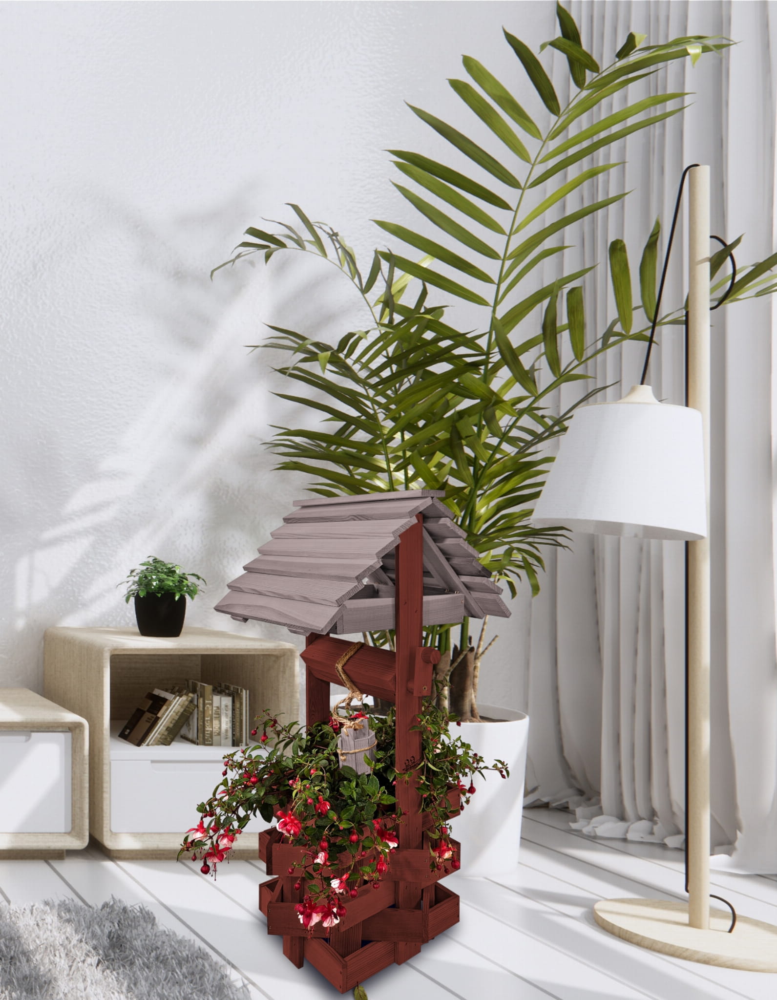 Studzienka drewniana na kwiaty Doniczka na balkon Rękodzieło Studzienka na peralgonie Donica Drewniana Ozdobna ogrodowa Kolor Orzech Siwy Ozdoba Wnętrz Figura Ogrodowa Studzienki ozdobne Kwietnik doniczki Prezent SC1 O SN