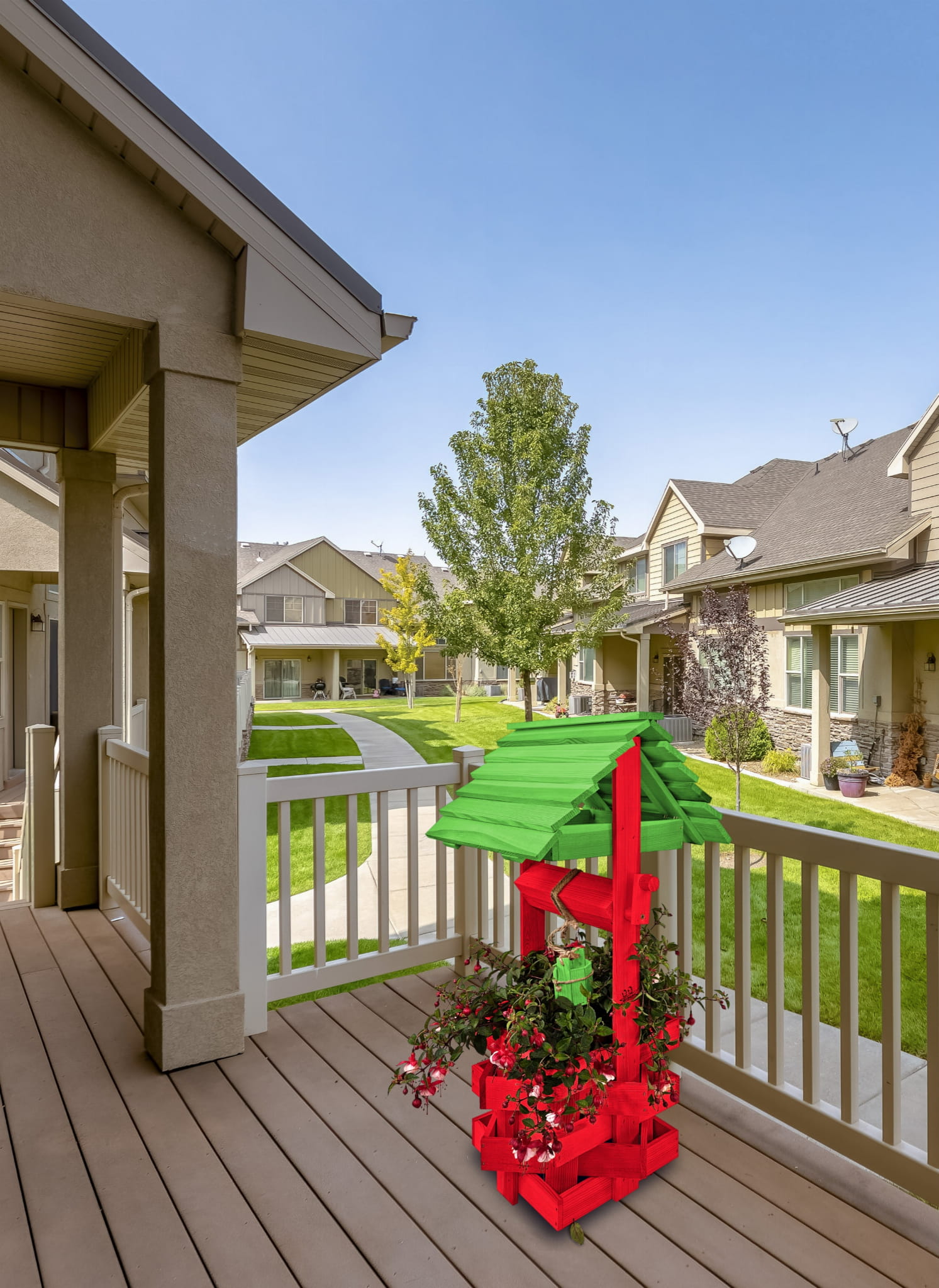 - Studnia została wzbogacona o drewnianą donicę, w której można dodatkowo storzyć miniogródek