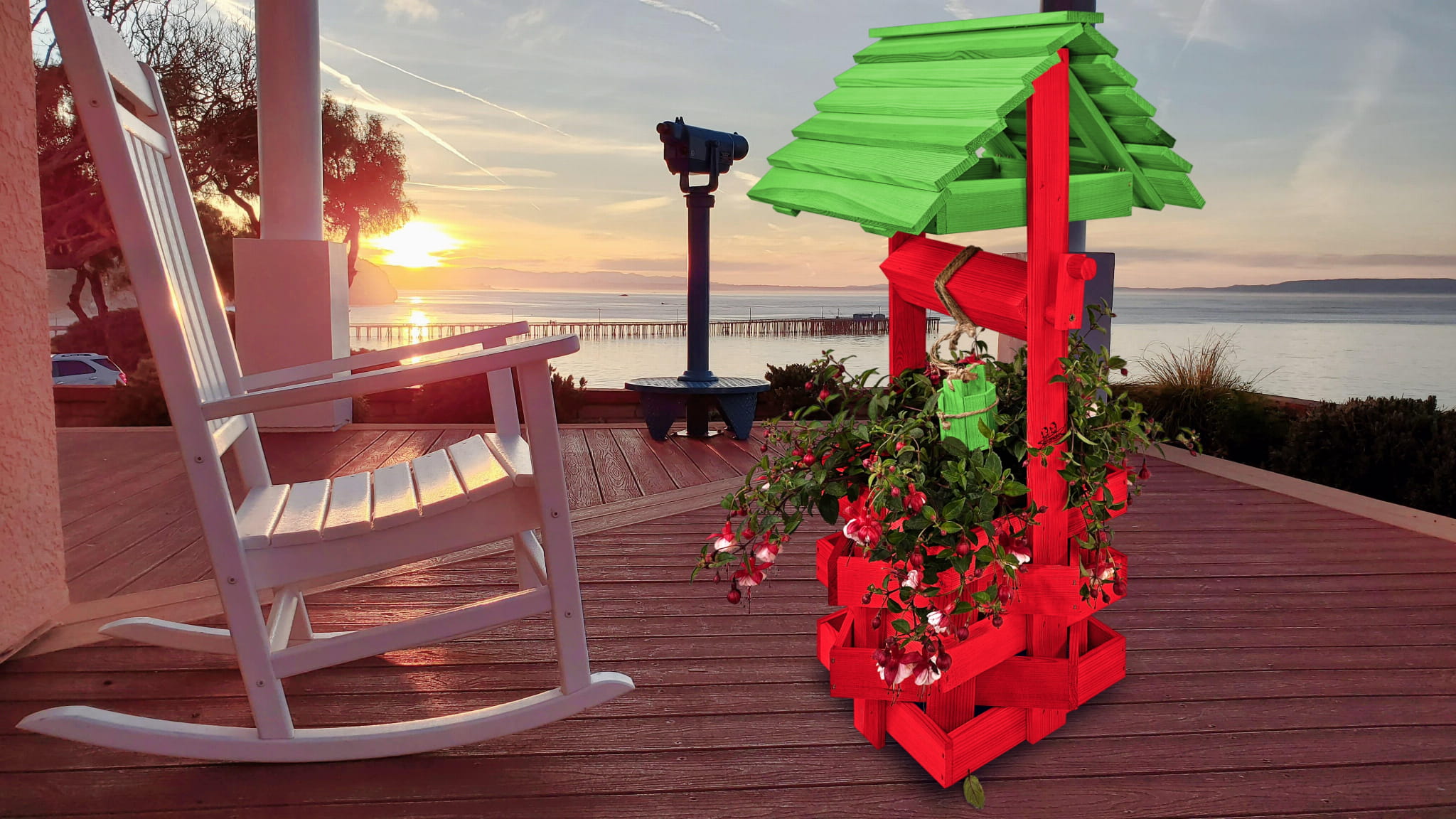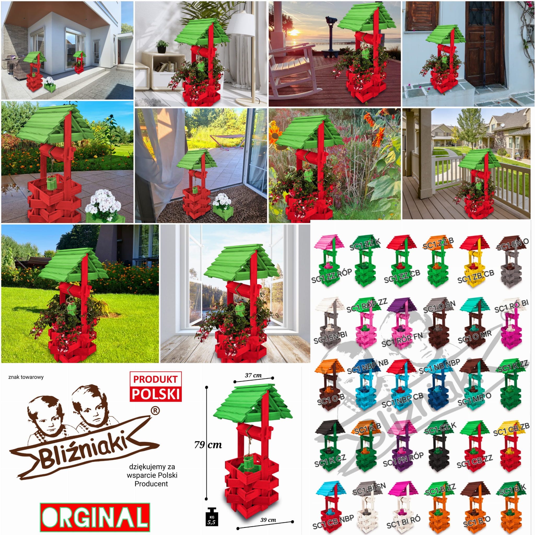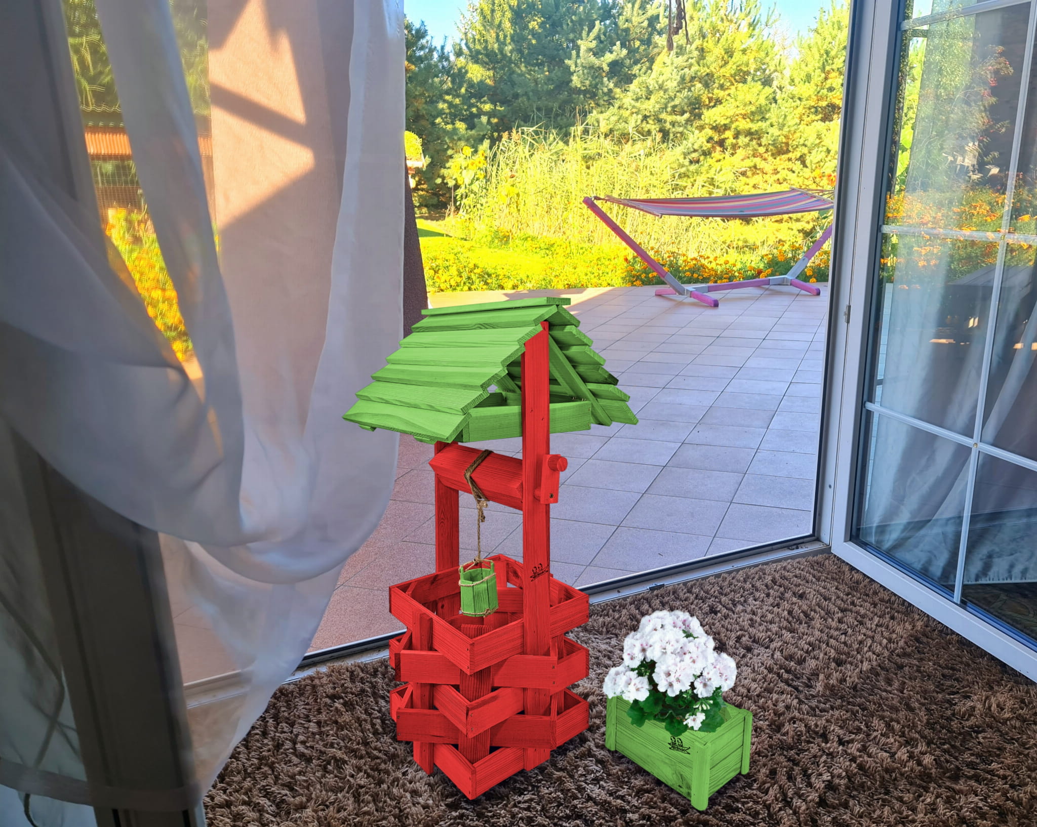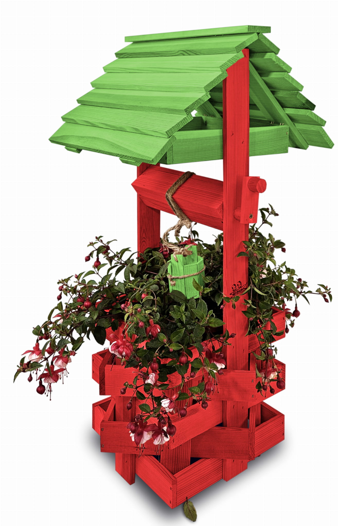 Studzienka na kwiaty do Domu i Ogrodu Donice Balkonowe Tarasowe Studzienka na peralgonie Studnia Drewniana Ozdobna ogrodowa Kolor Czerwony i zielony Ozdoba Wnętrz Figura Ogrodowa Studzienki ozdobne Kwietnik doniczki Prezent SC1 CB ZZ