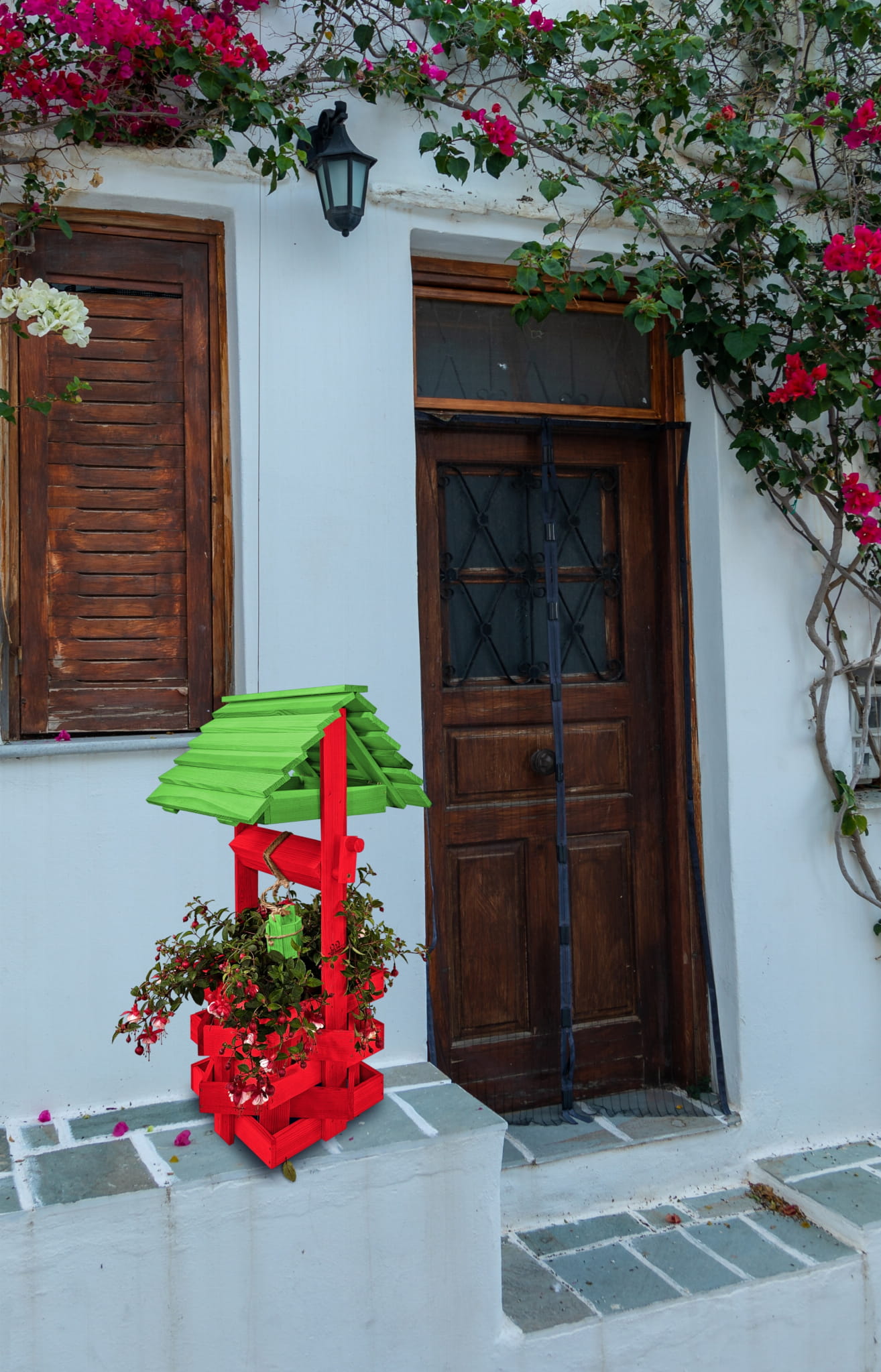 Nasza stylowa studnia wraz z donicą stanowi idealną bazę do stworzenia wyjątkowych kompozycji kwiatowych.
