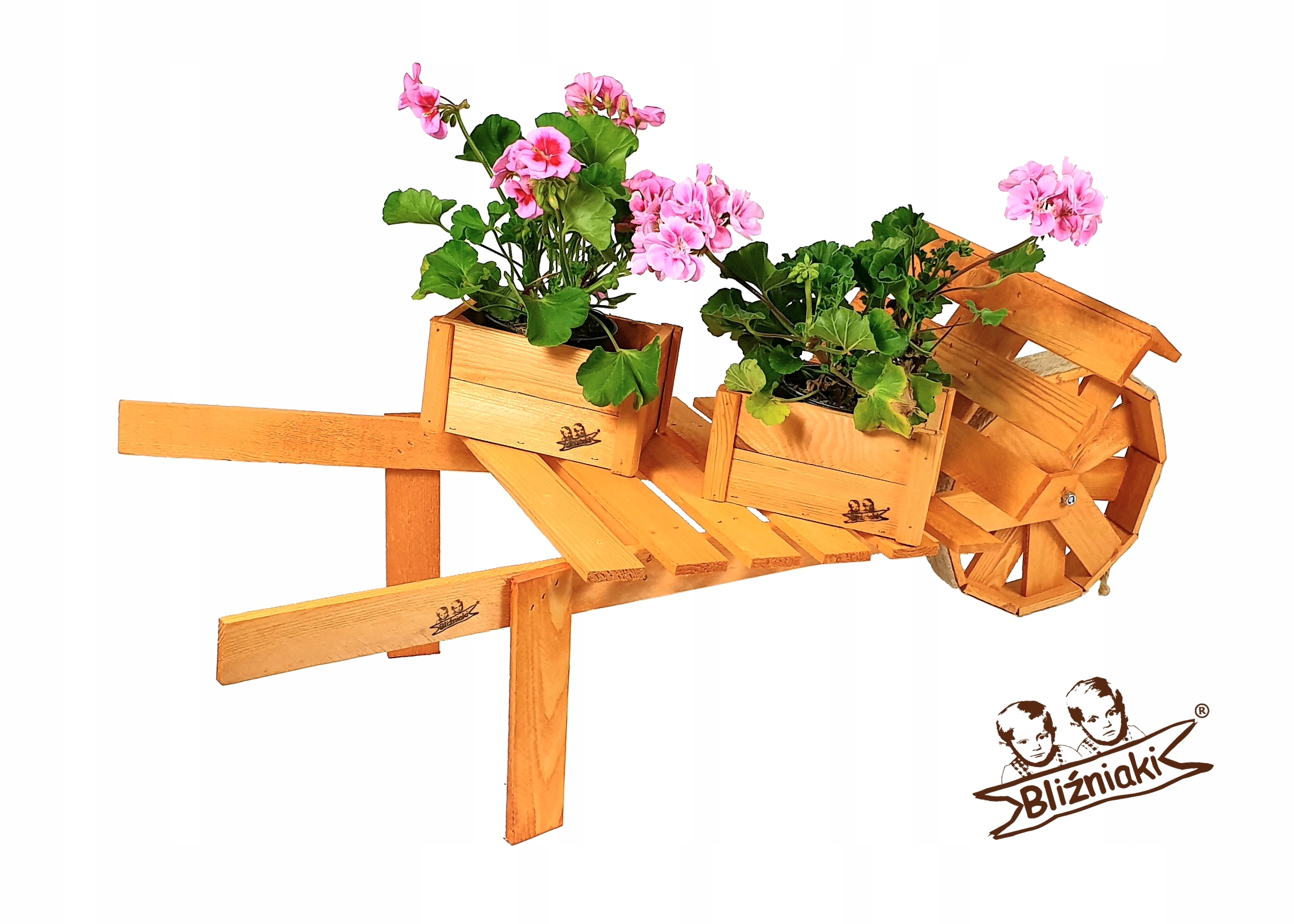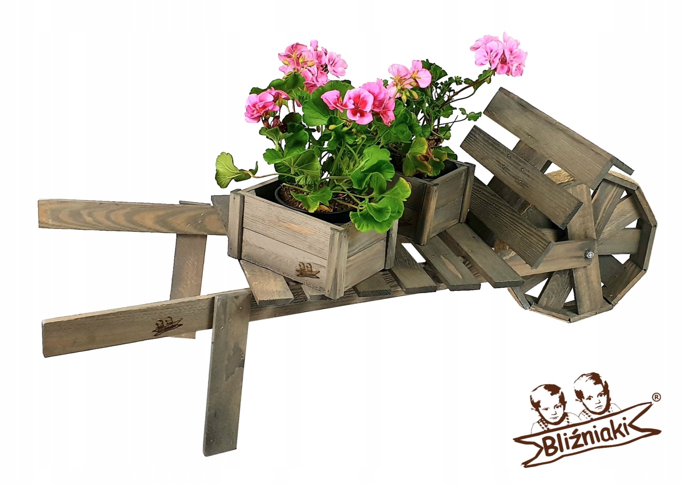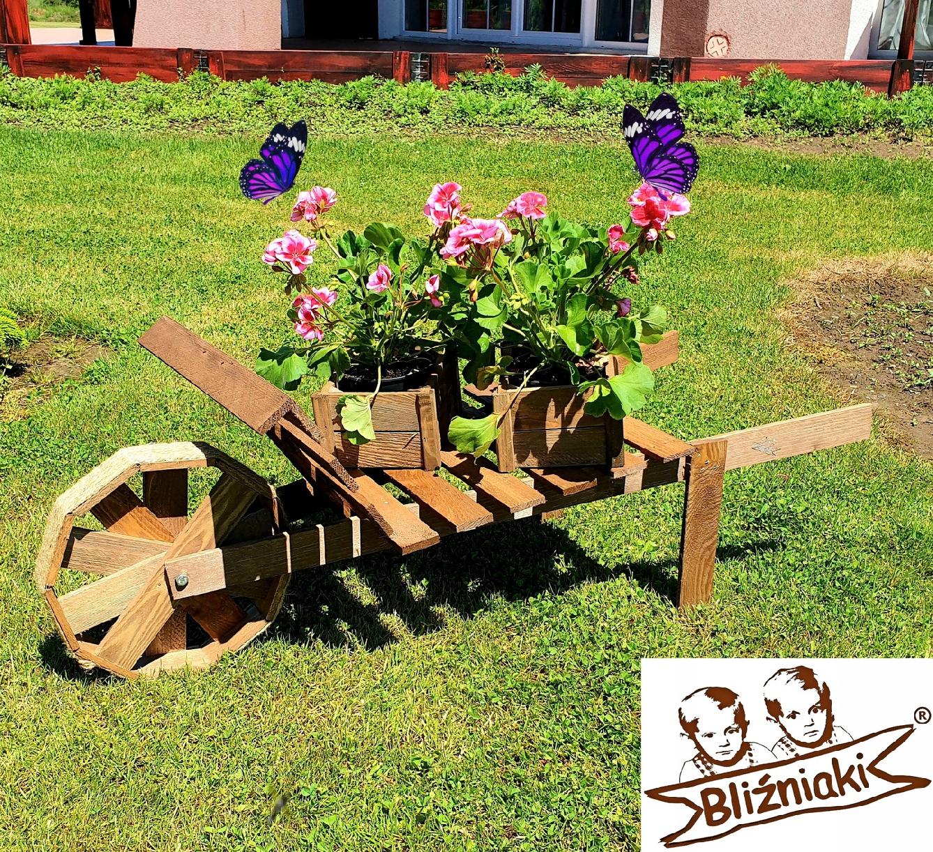 Taczka na kwiaty. Znakomita dekoracja do każdego ogrodu, działki. Oryginalny design, oraz wykorzystanie prawdziwego drewna gwarantuje najlepsze walory estetyczne.