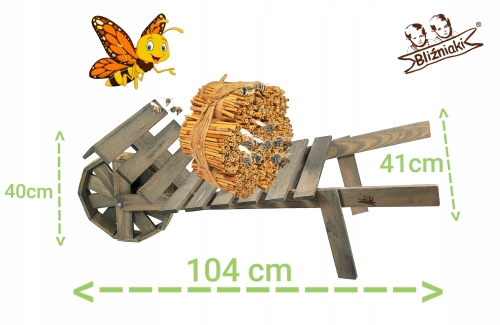 TACZKA DEKORACYJNA OZDOBNA NA KWIATY I ROŚLINY W ZESTAWIE Z DOMKIEM DLA PSZCZOŁY MURARKI OGRODOWEJ