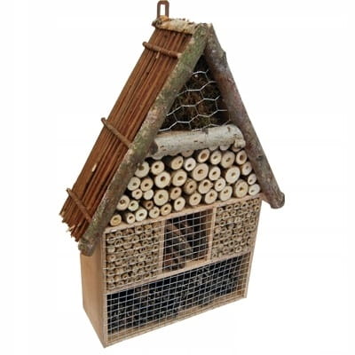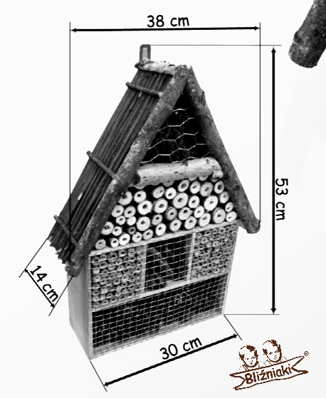 Wielki hotel dla owadów pożytecznych 53cm Wiklinowy dach ekologiczny styl INS 23