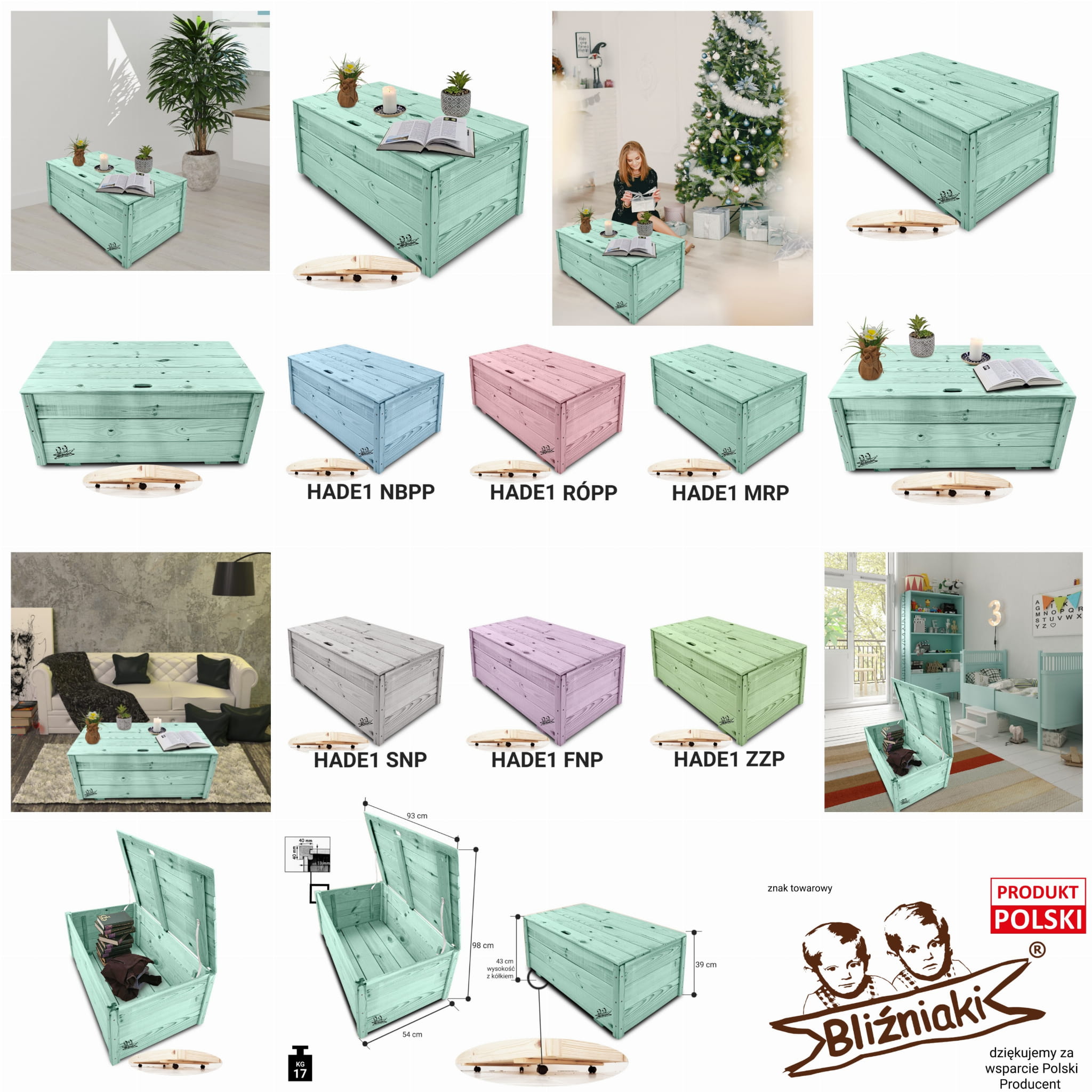 Przedmiotem sprzedaży jest sama SKRZYNIA na kółkach HADE1, bez ozdób i zawartości. Zdjęcia mają jedynie charakter poglądowy. Umieszczone dekoracje stanowią jedynie źródło inspiracji dla Państwa.
