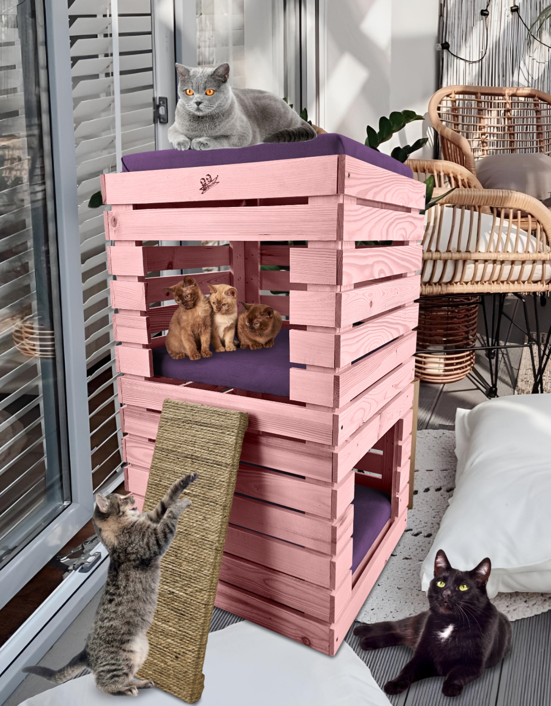 Wypoczynek dla kota kotów 3 poziomowy 3 wymienne poduszki drapak buda kota domek drewniany DOMKOT5 RÓPP OBICIE 10