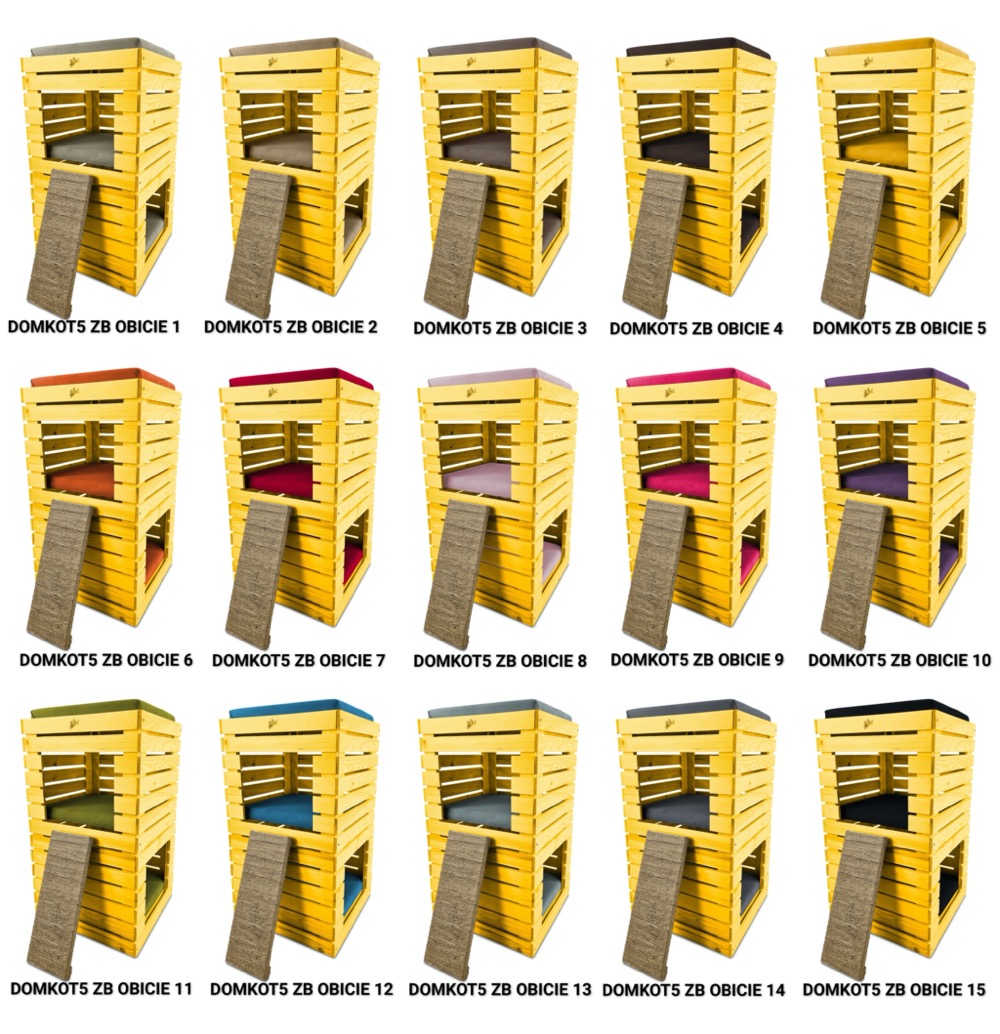 Wypoczynek dla kota kotów 3 poziomy 3 wymienne poduszki drapak buda kota domek drewniany DOMKOT5 ZB OBICIE 3