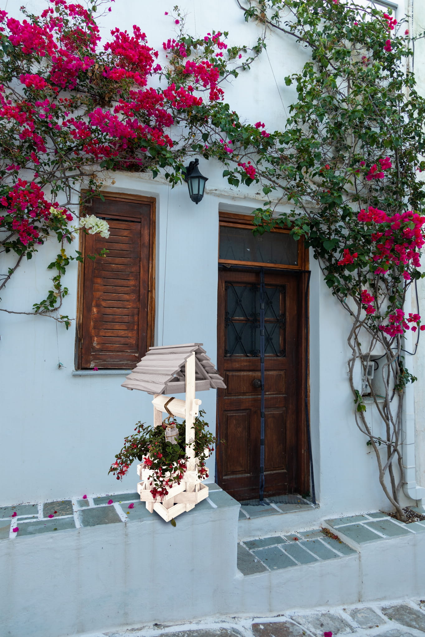 Nasza stylowa studnia wraz z donicą stanowi idealną bazę do stworzenia wyjątkowych kompozycji kwiatowych.