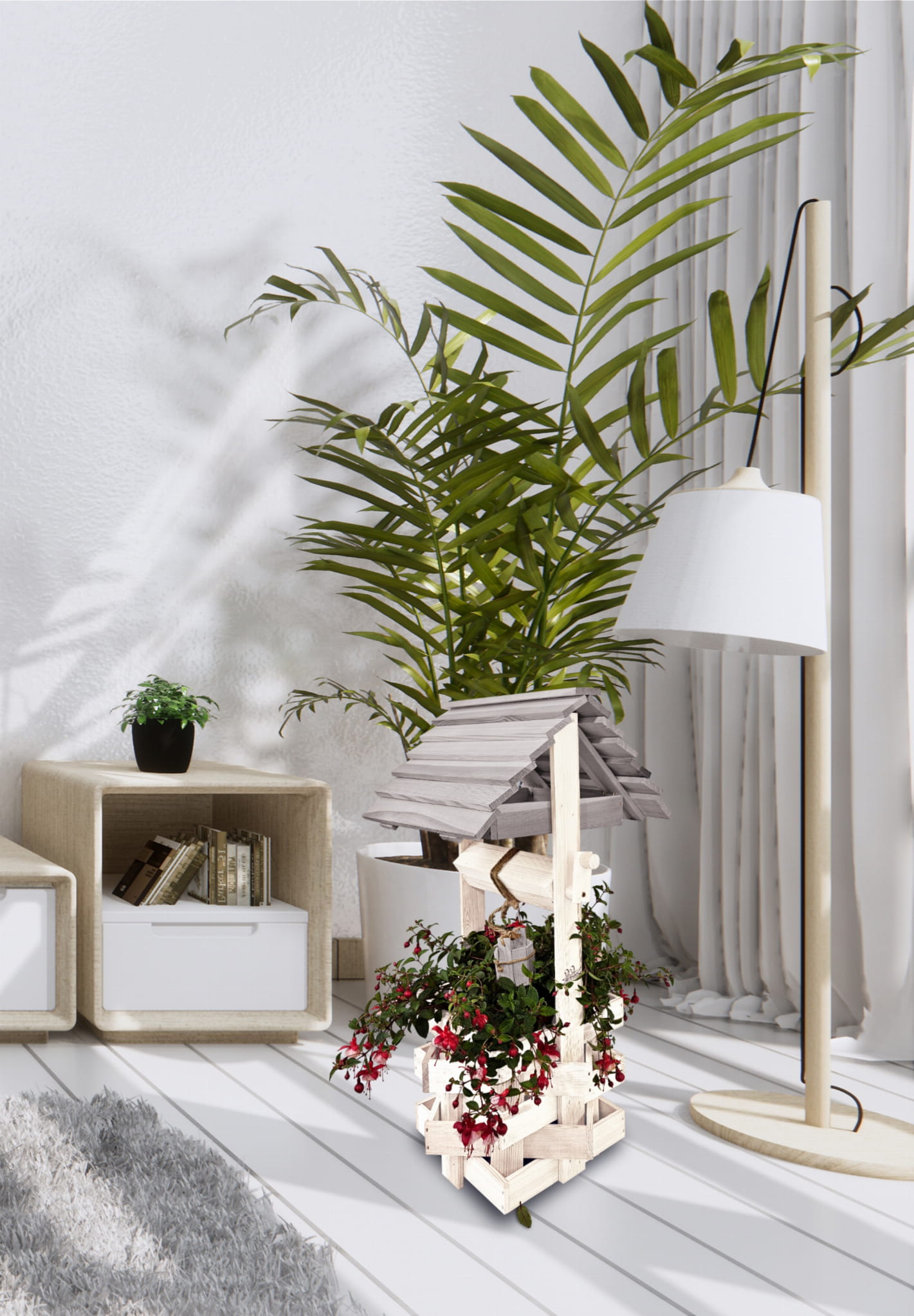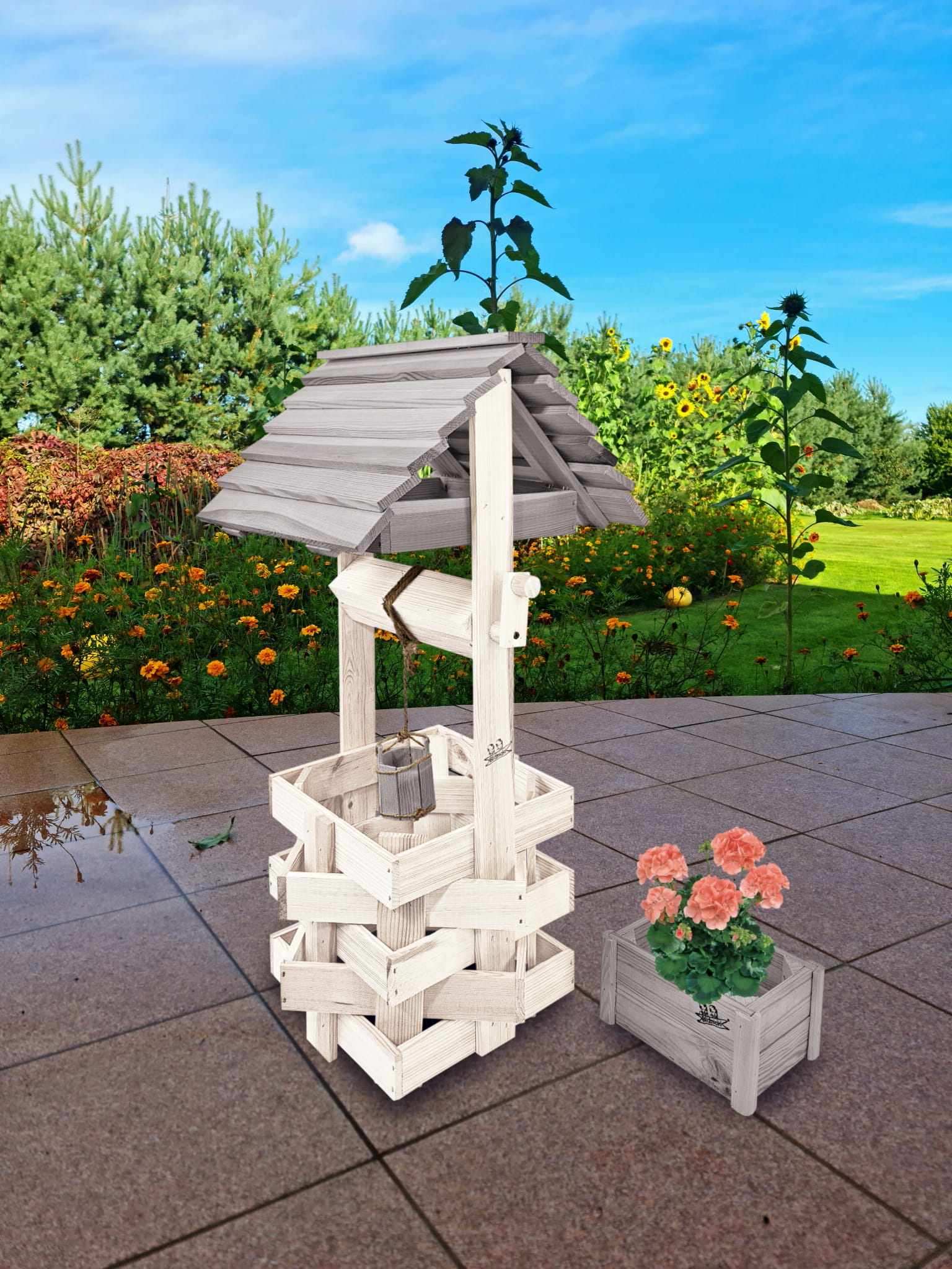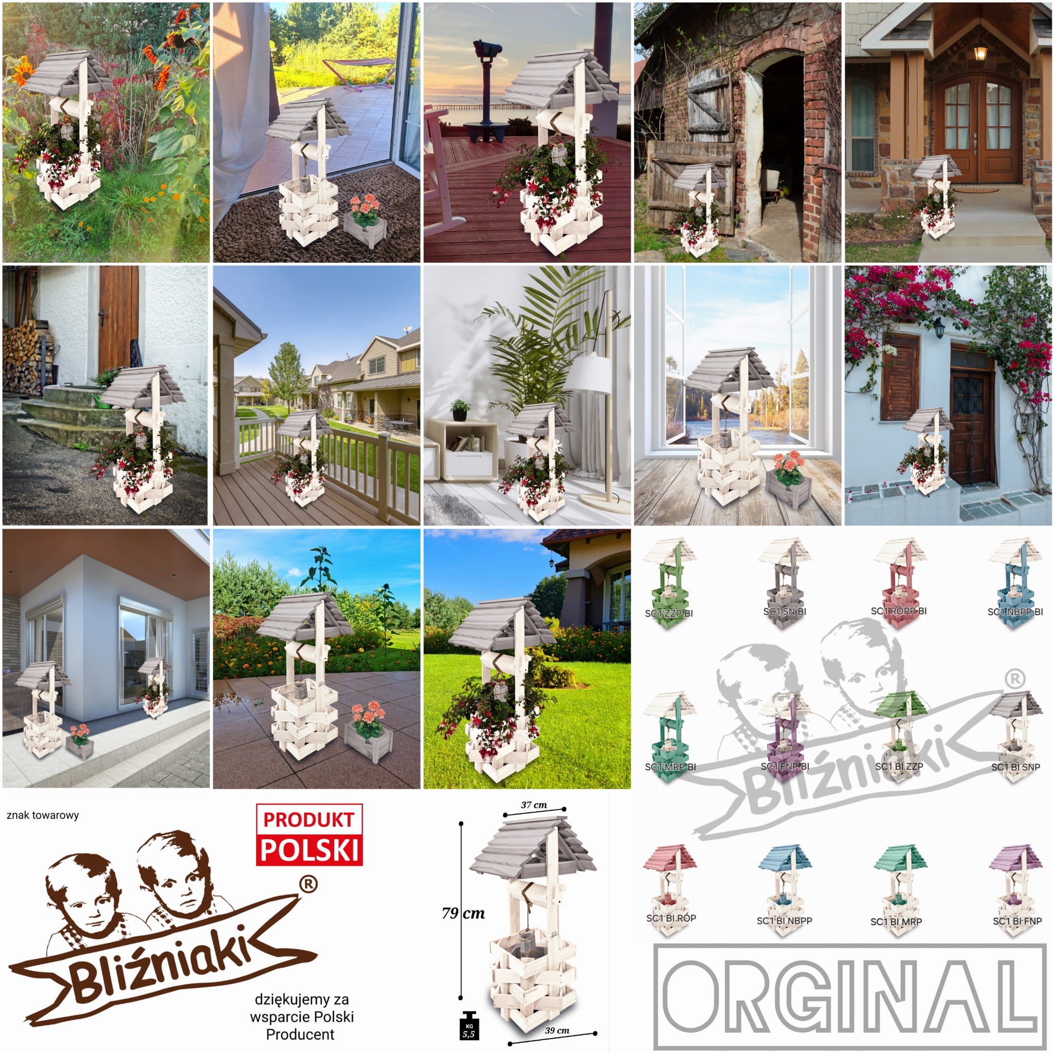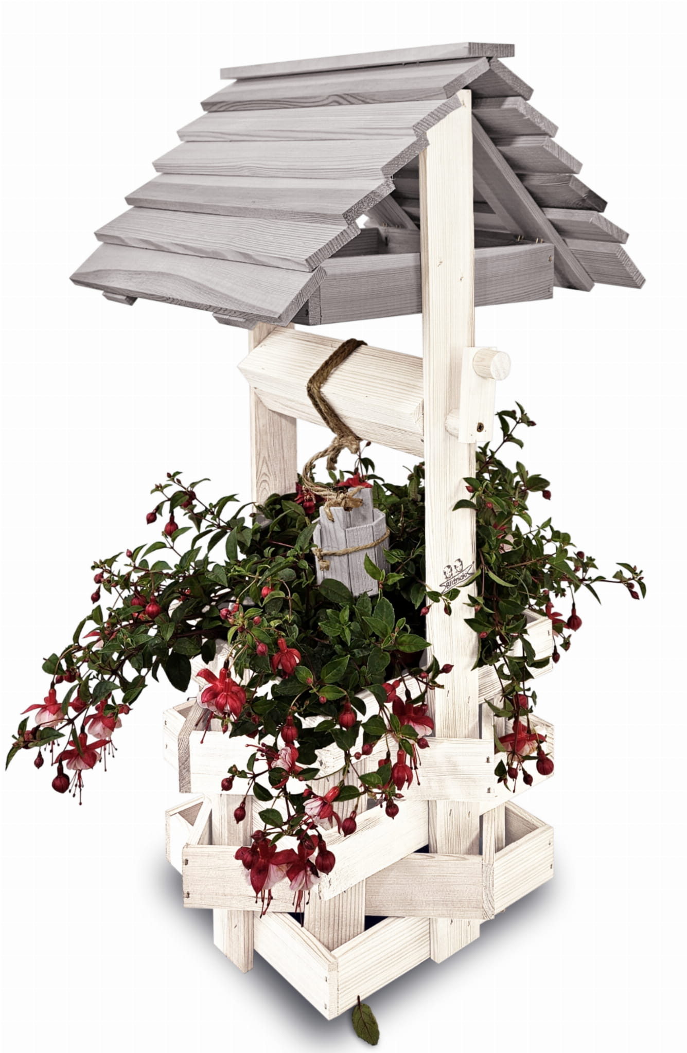 Wysoka studnia drewniana ozdobna Studzienka ogrodowa Prezent Ozdoba wnętrz i ogrodu Kwietnik kolor Jasny Szary Doniczka na kwiaty do domu i ogrodu Studzienka na pelargonie Studnie balkonowe tarasowe Studzienki ozdobne Doniczki SC1 BI SN