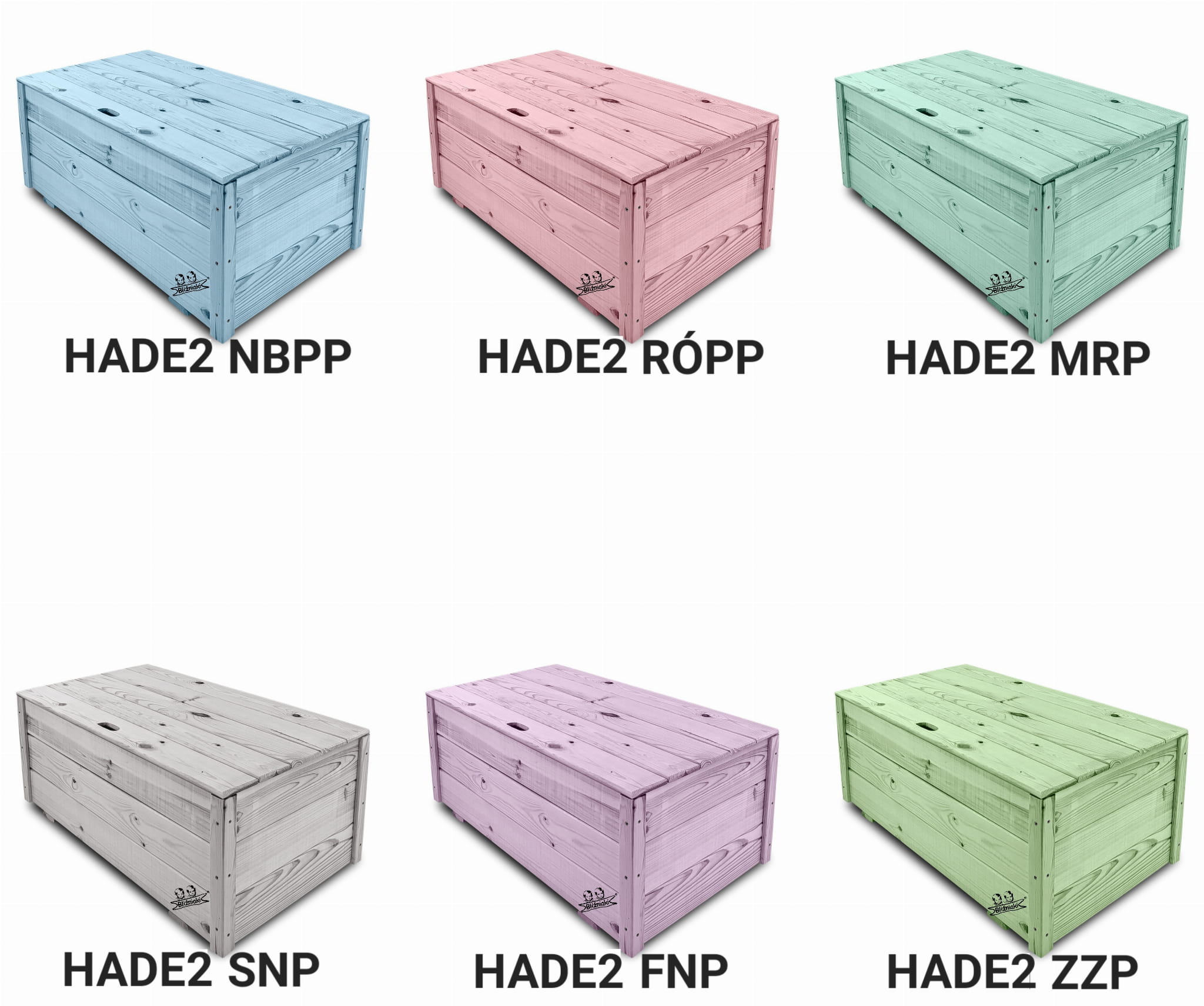 Skrzynia jest dostępna również w innej kolorystyce. Poniżej tabela z wzorami kolorów tego modelu.