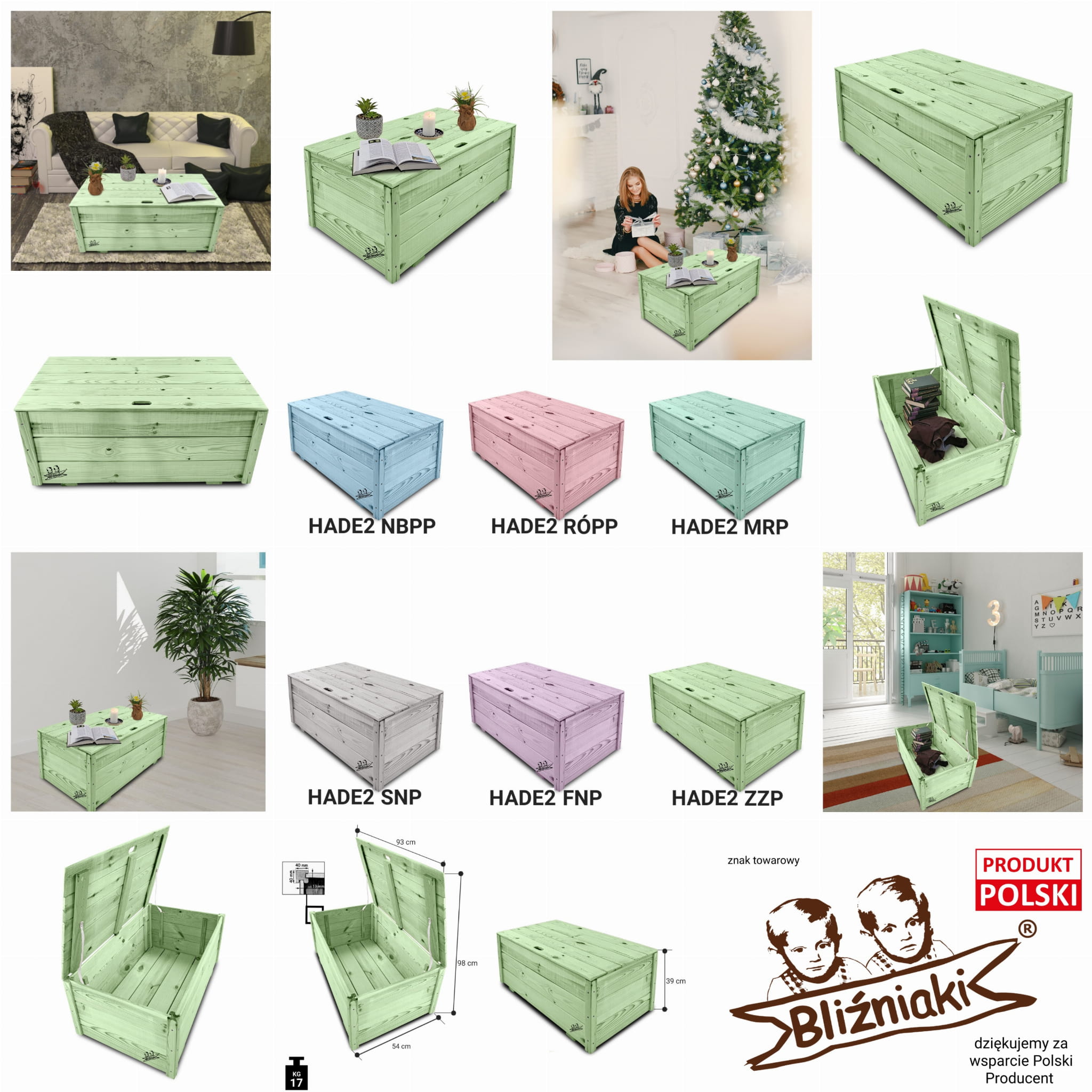 Zielona pastelowa skrzynia do przechowywania Pojemna komoda ze schowkiem Duży kufer z drewna litego do pokoju na taras Stolik kawowy stojący Mebel Szafka Pojemnik HADE2 ZZP